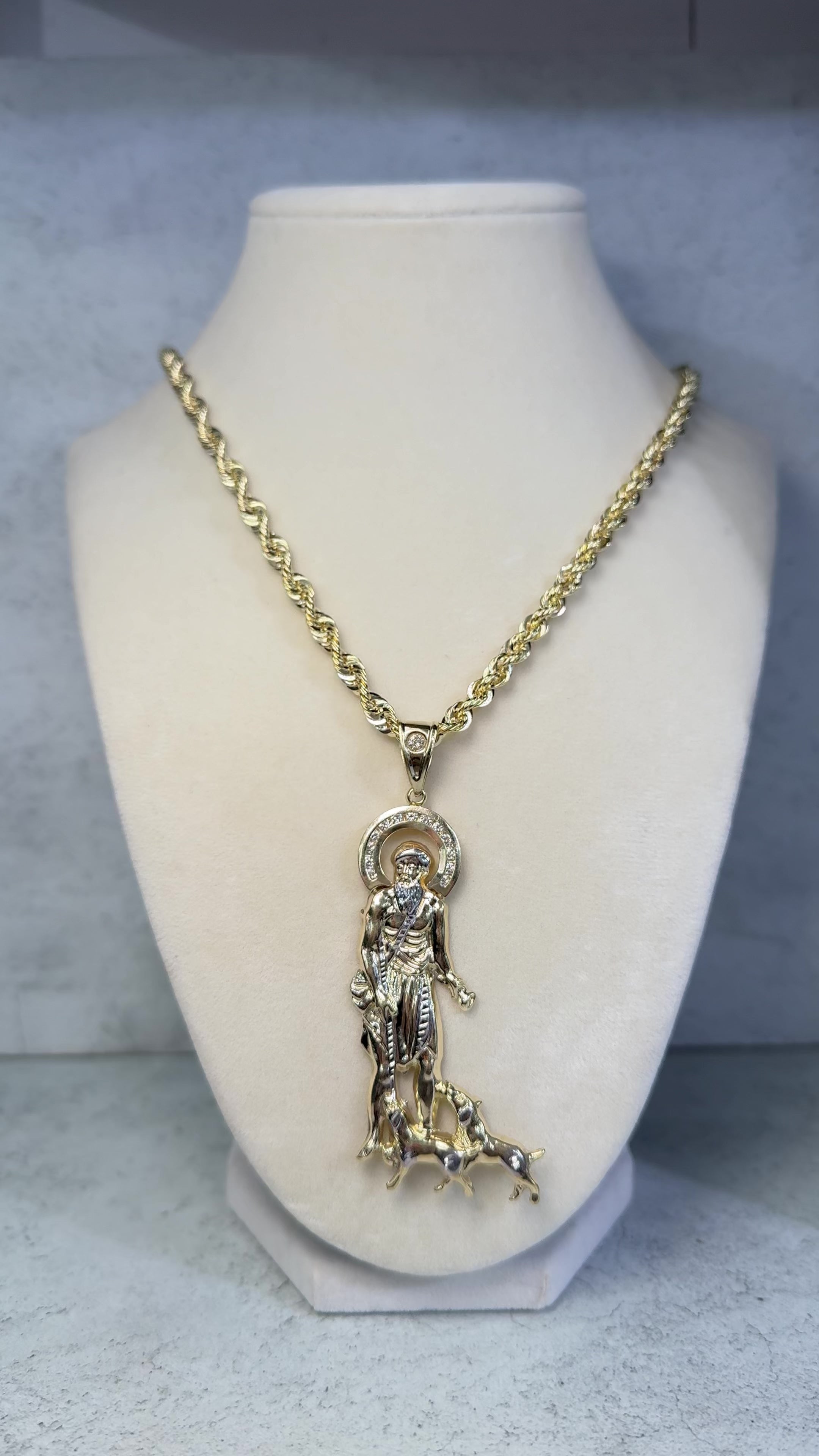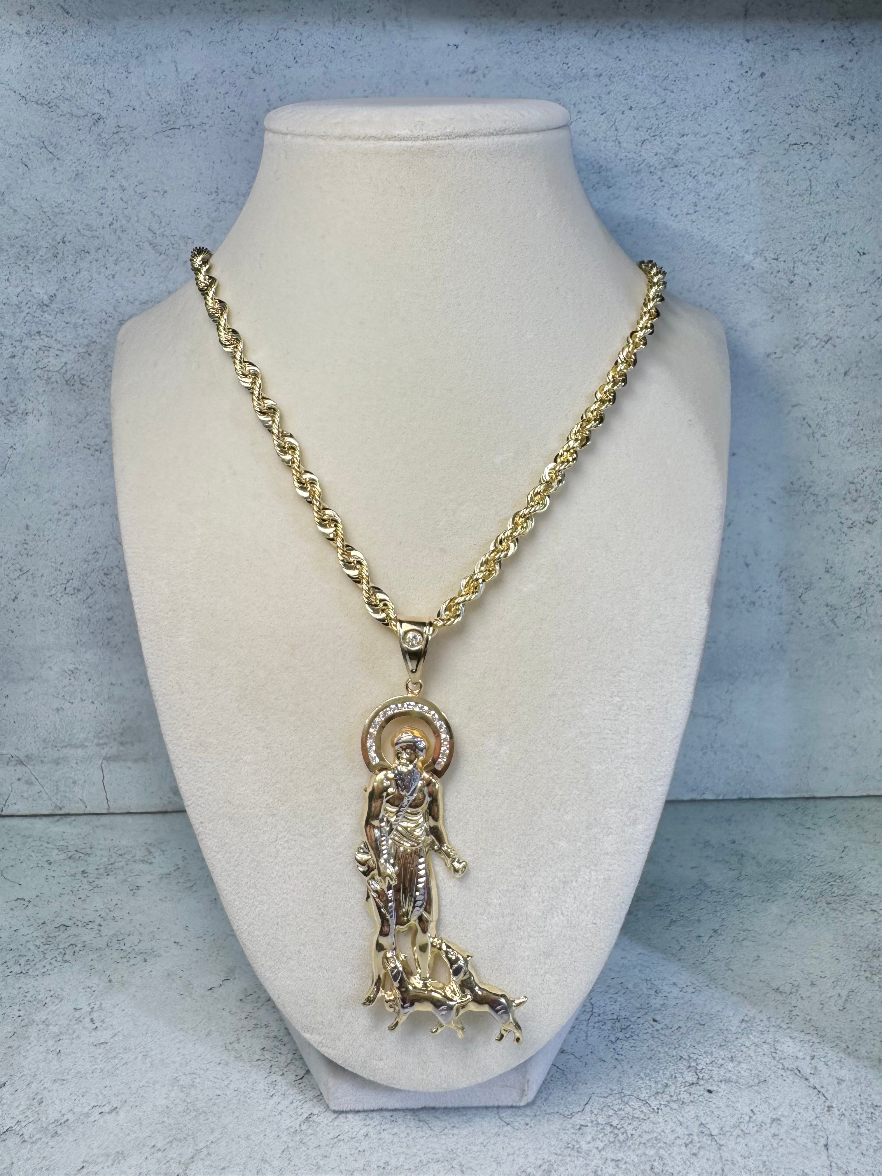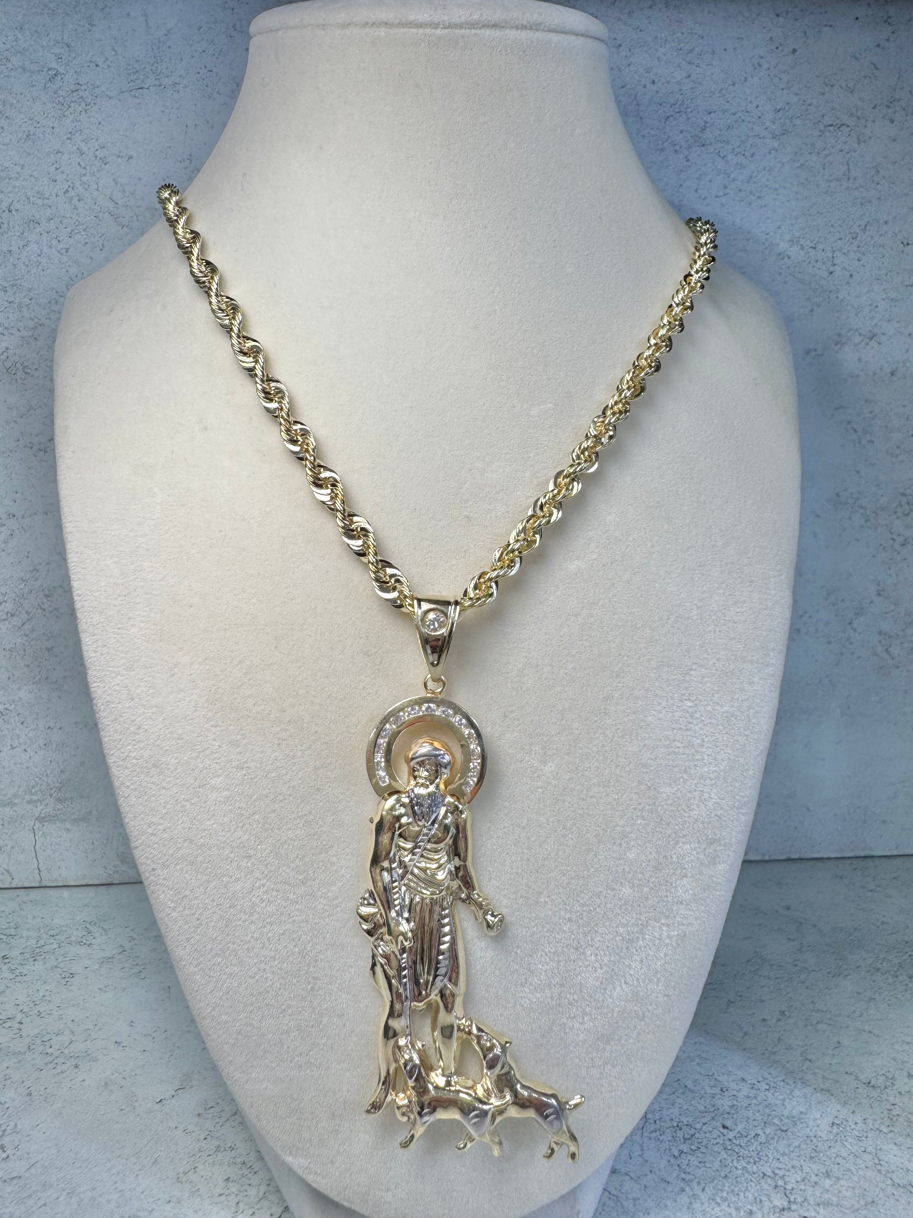 ON SALE! 14kt Rope chain W/ St Lazaro Pendant