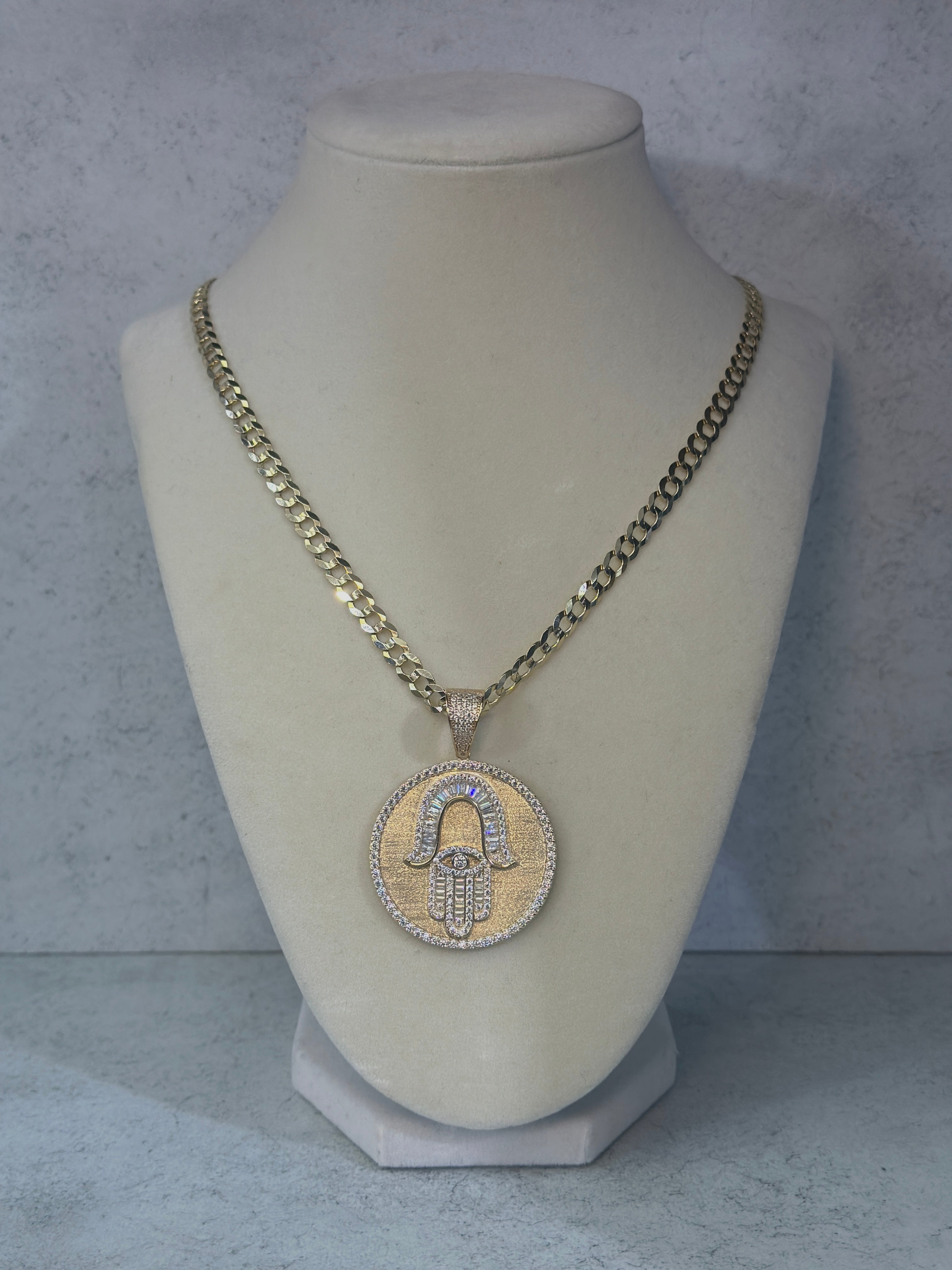 14K Solid Cuban Flat Chain W/ Hamsa Pendant