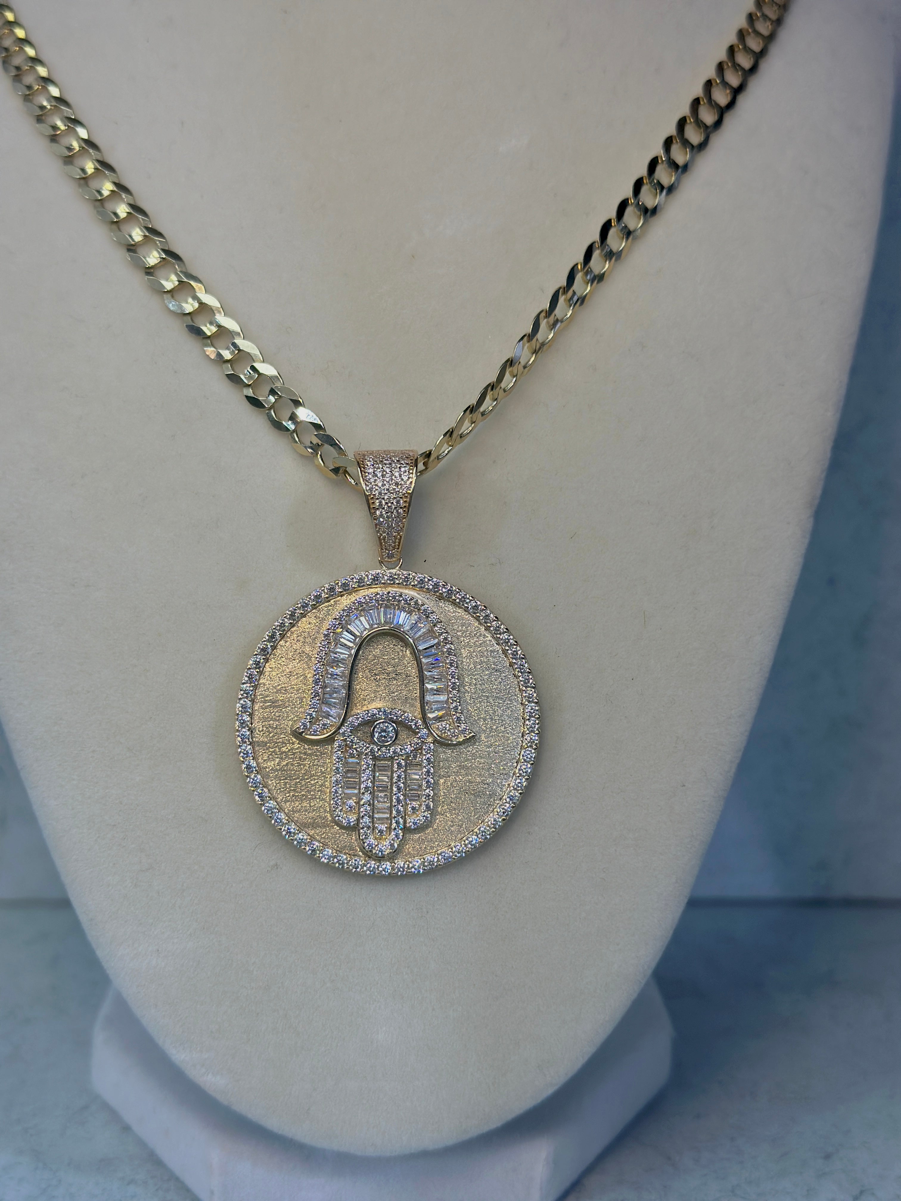 14kt Twisted Ice Chain W/ Hamsa Pendant