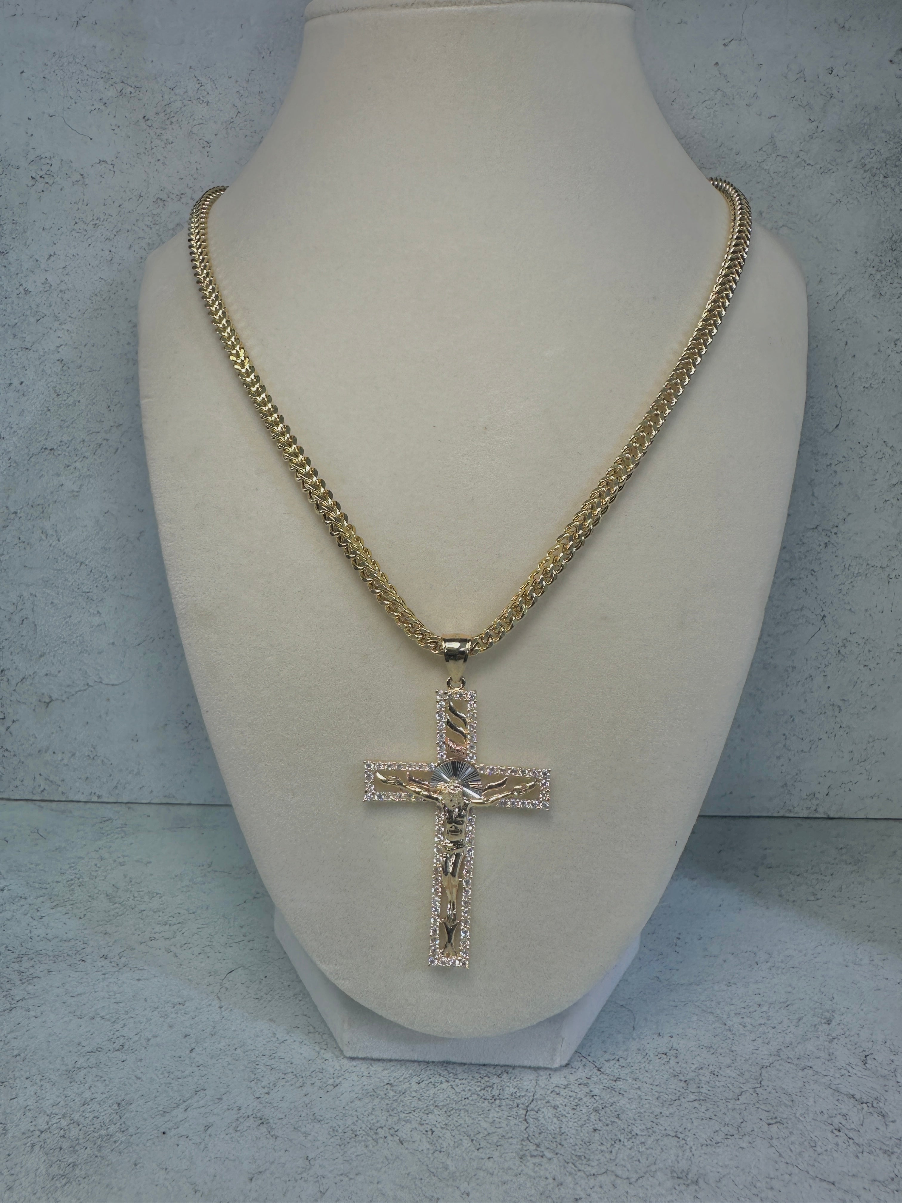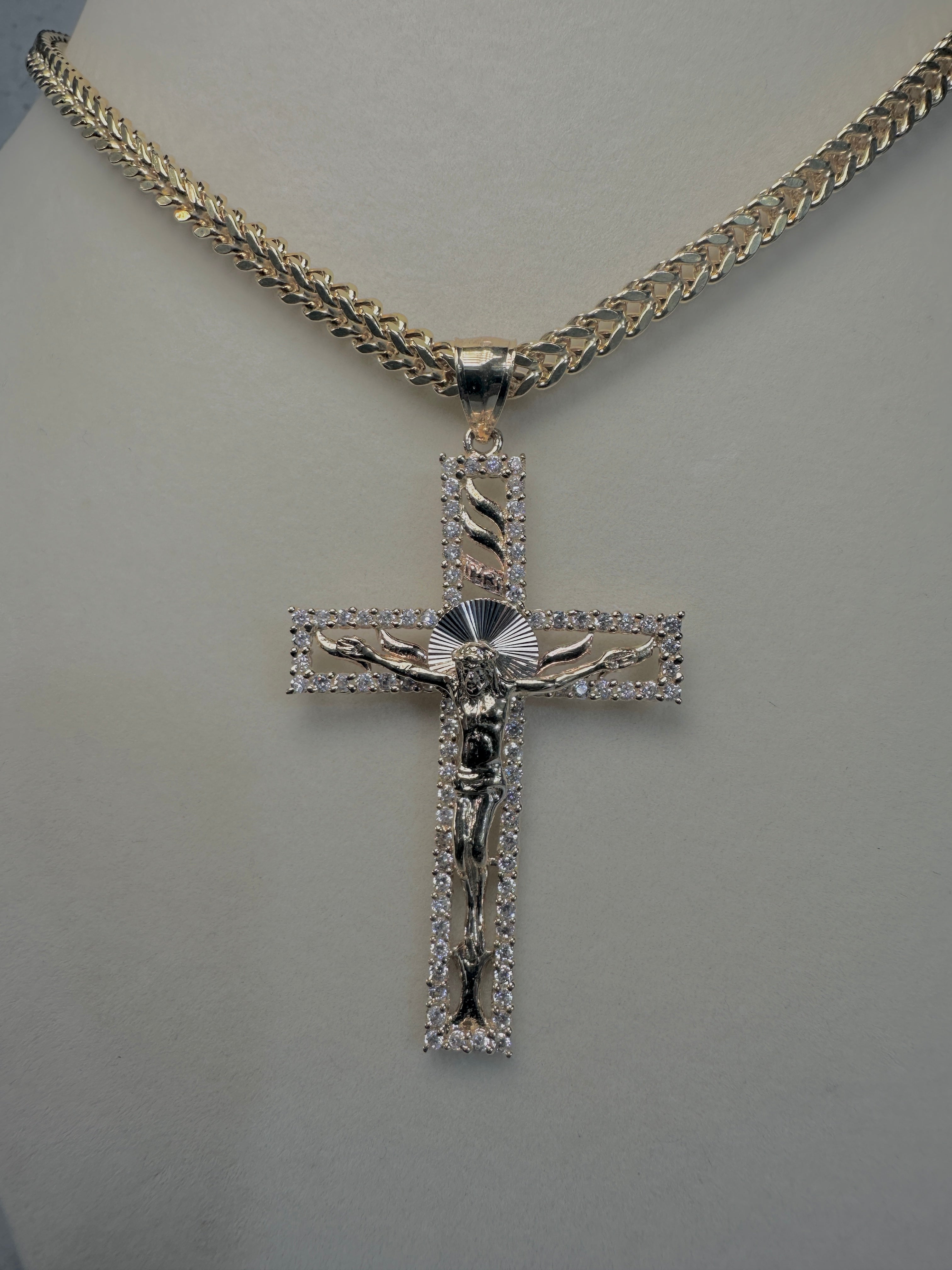 14kt Square Franco Chain W/ Crucifix