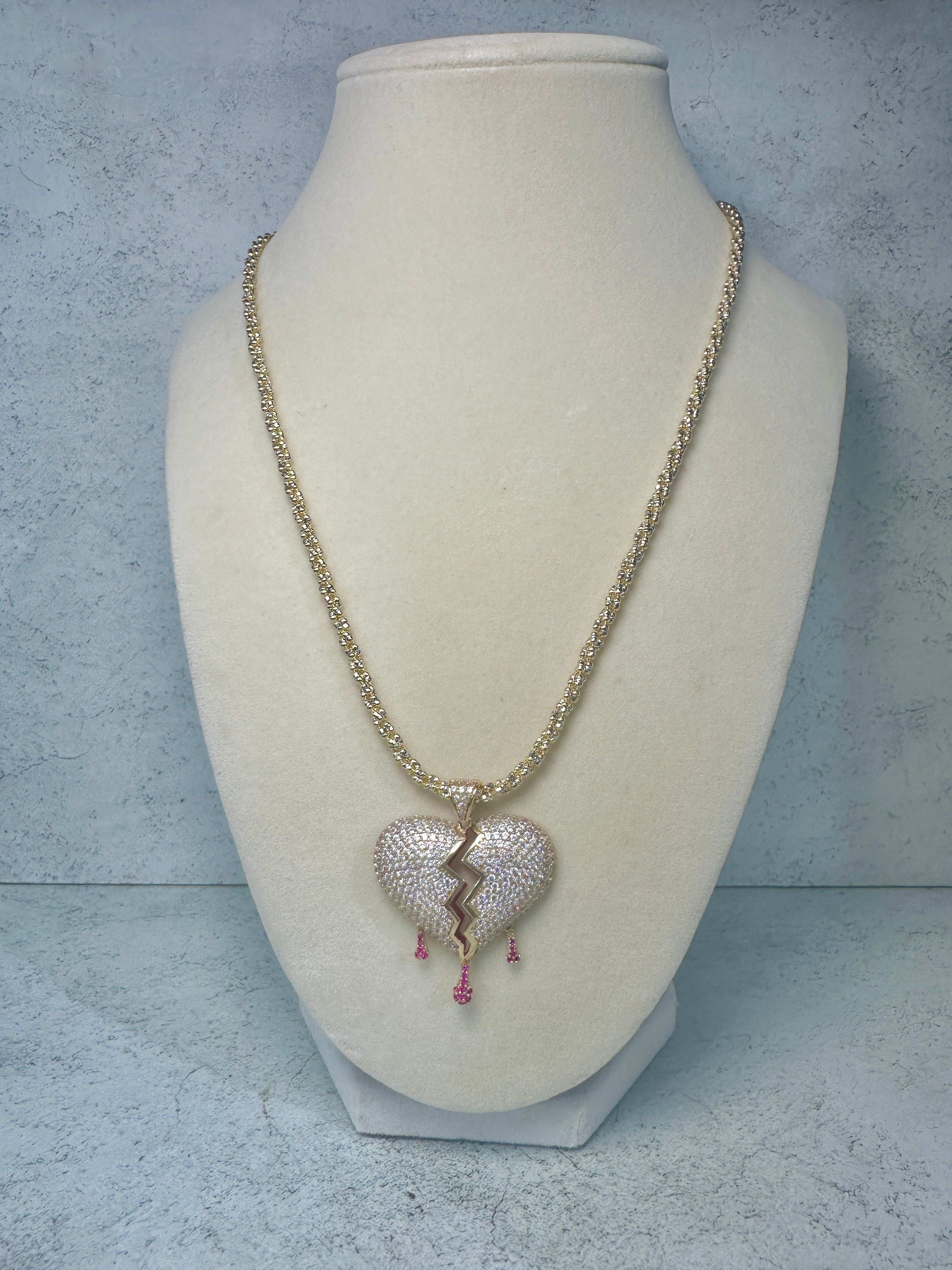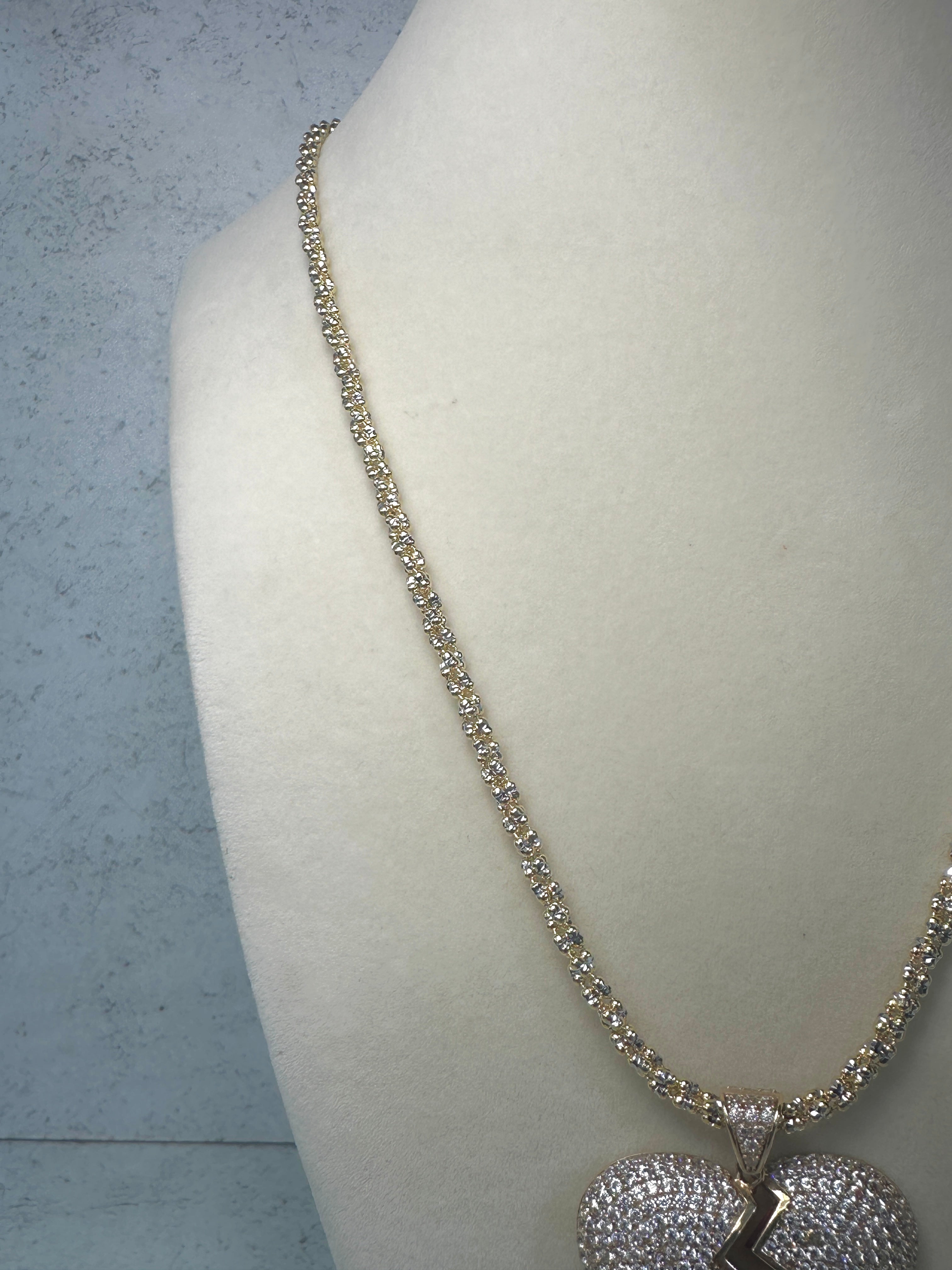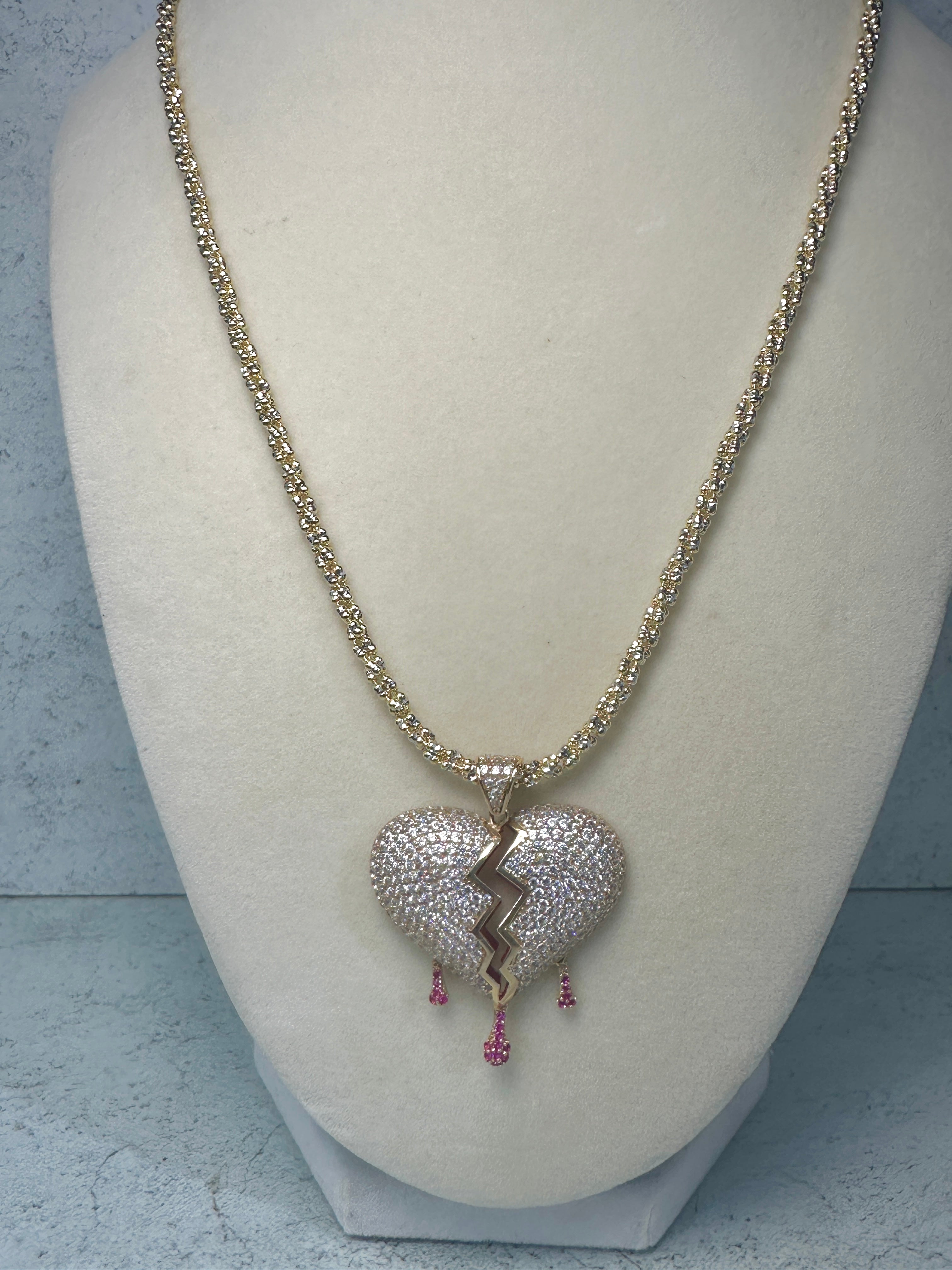 14kt Moon Ice Chain W/ iced Broken Heart Pendant