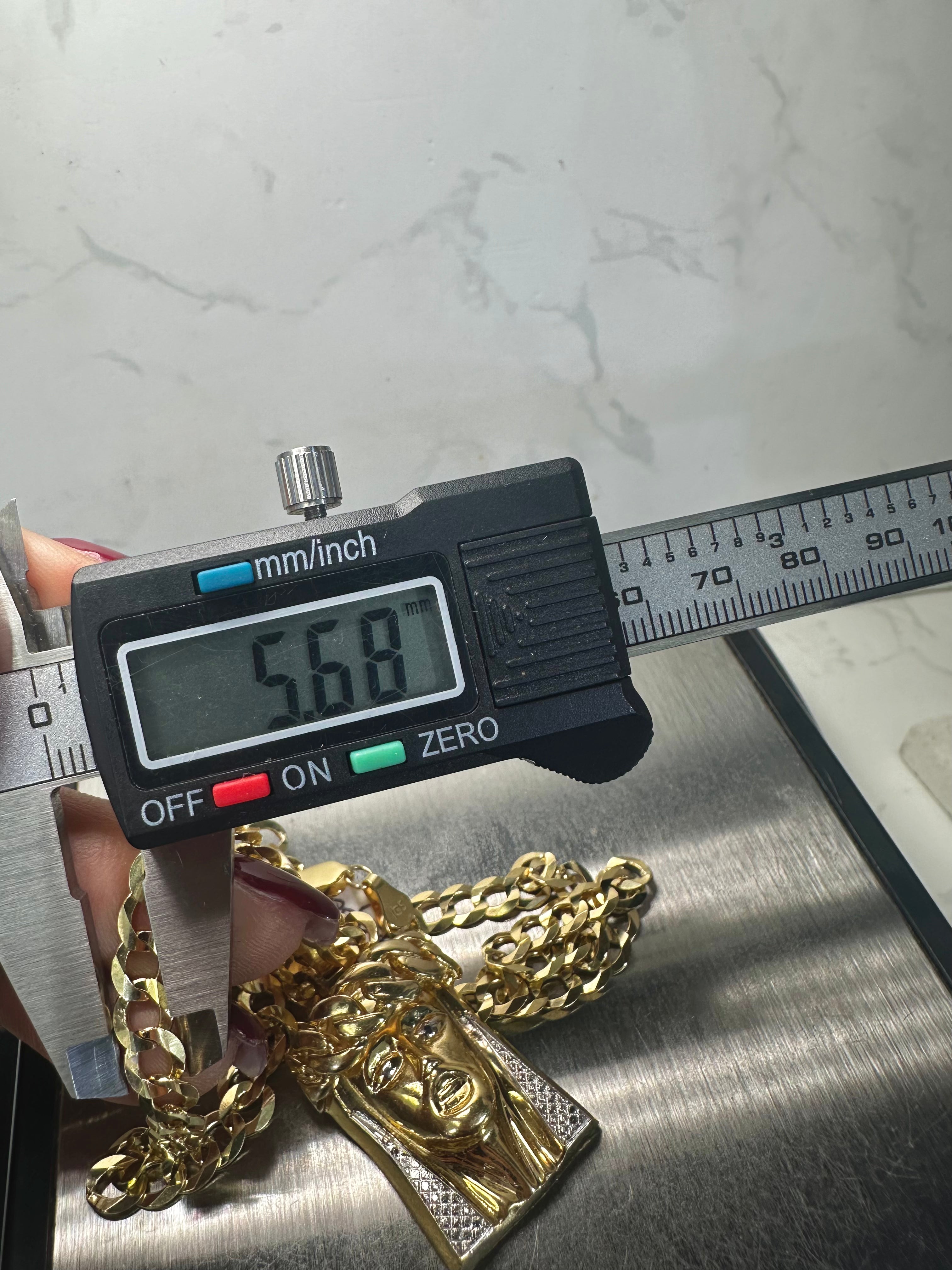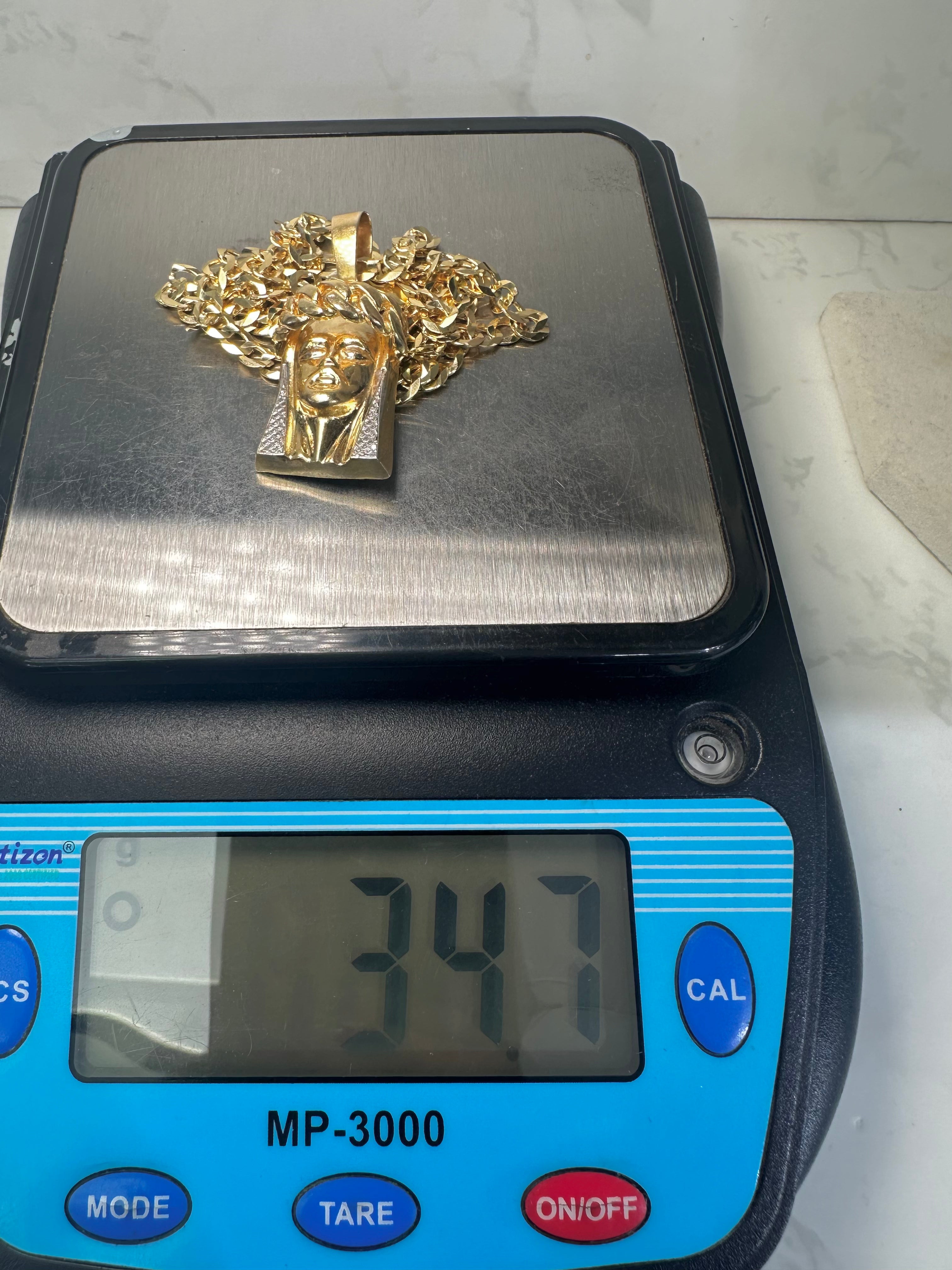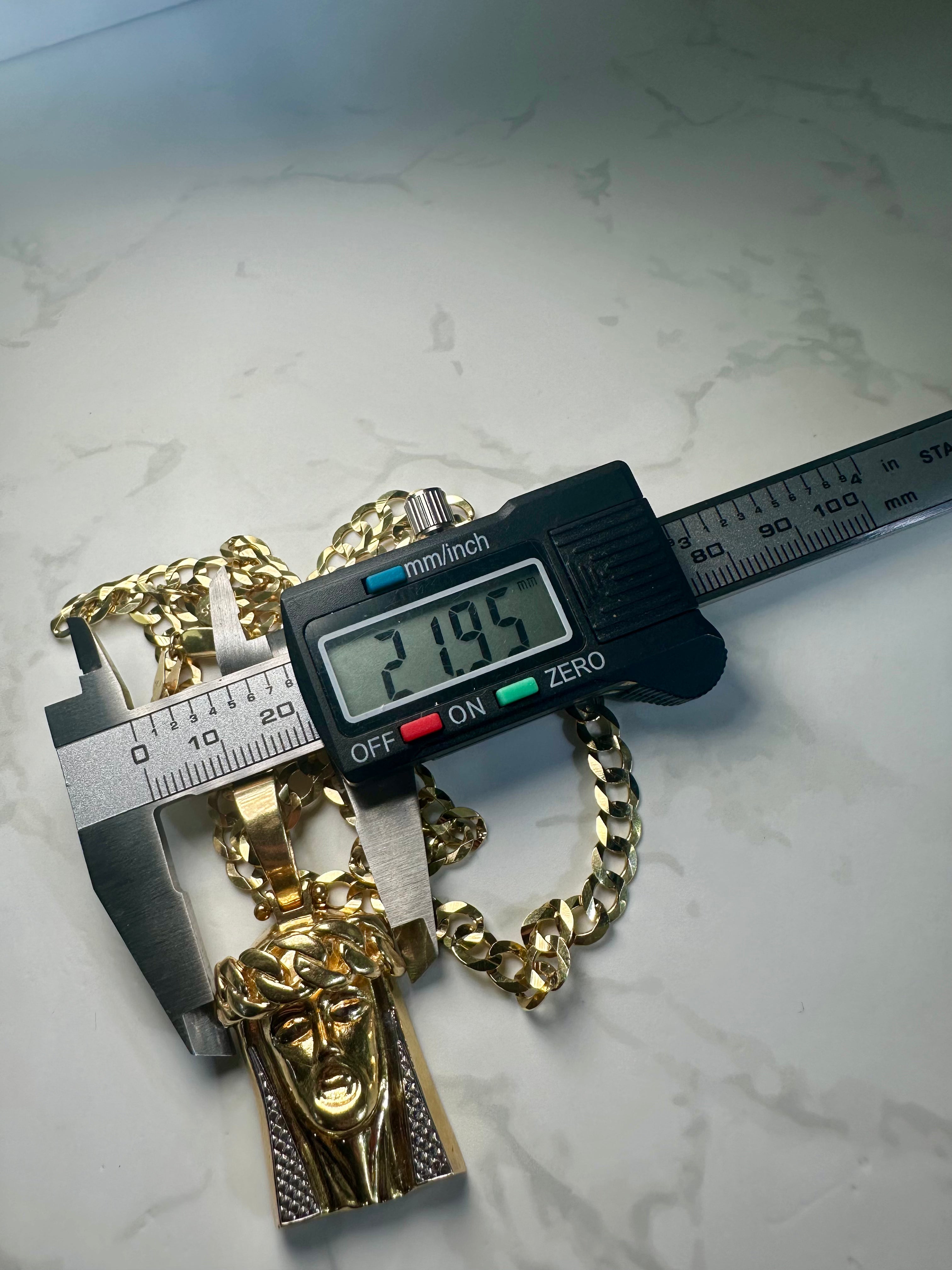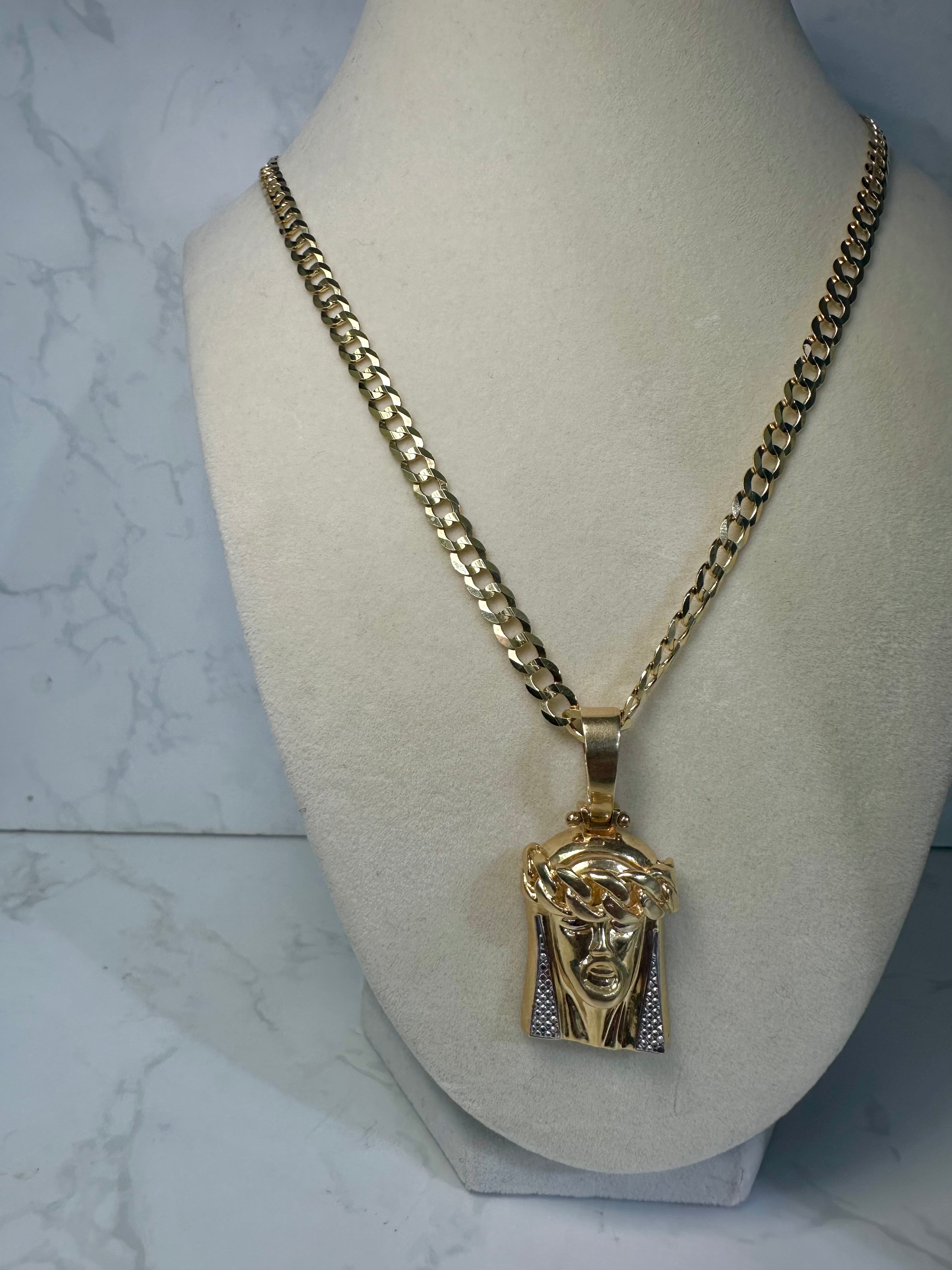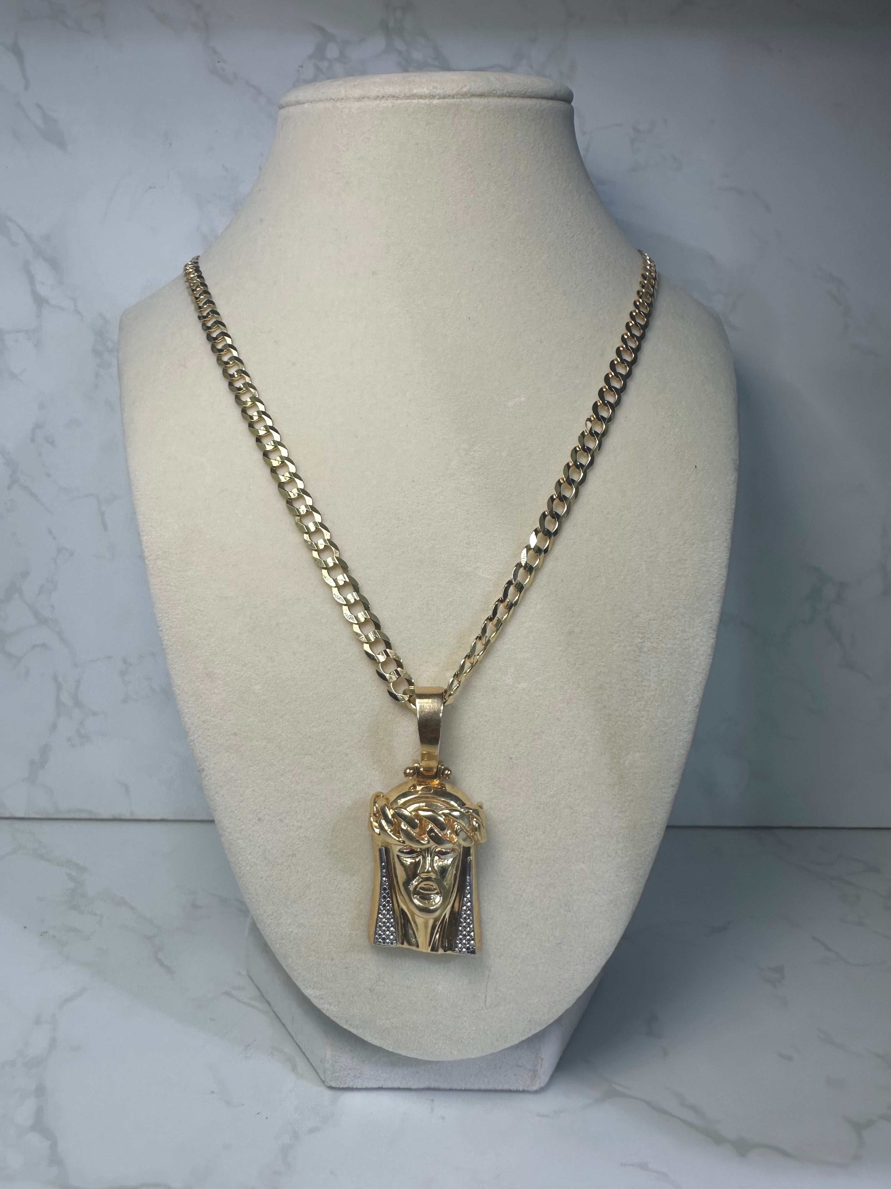 14KT Solid Cuban Chain W/ Jesus Head Pendant
