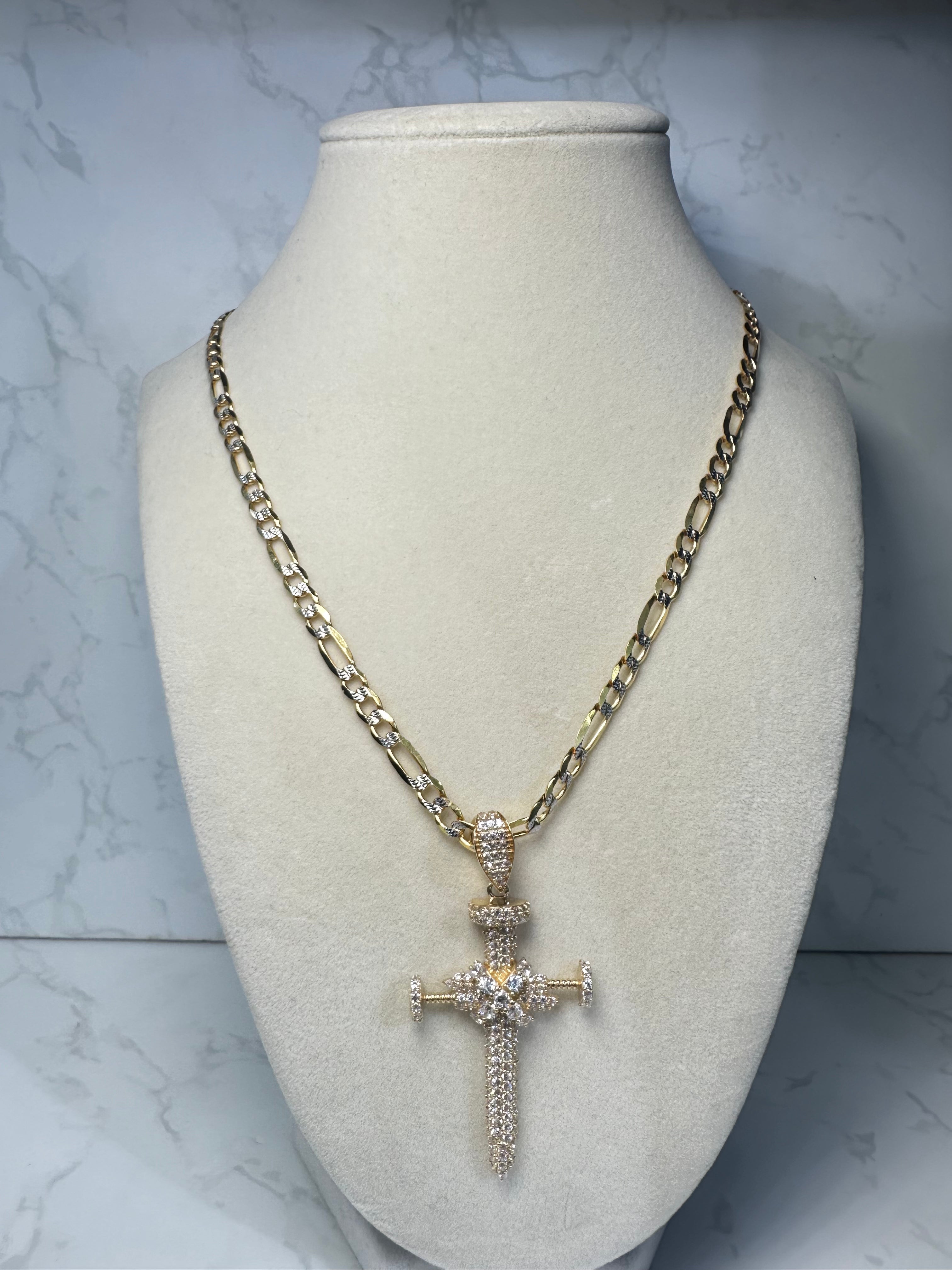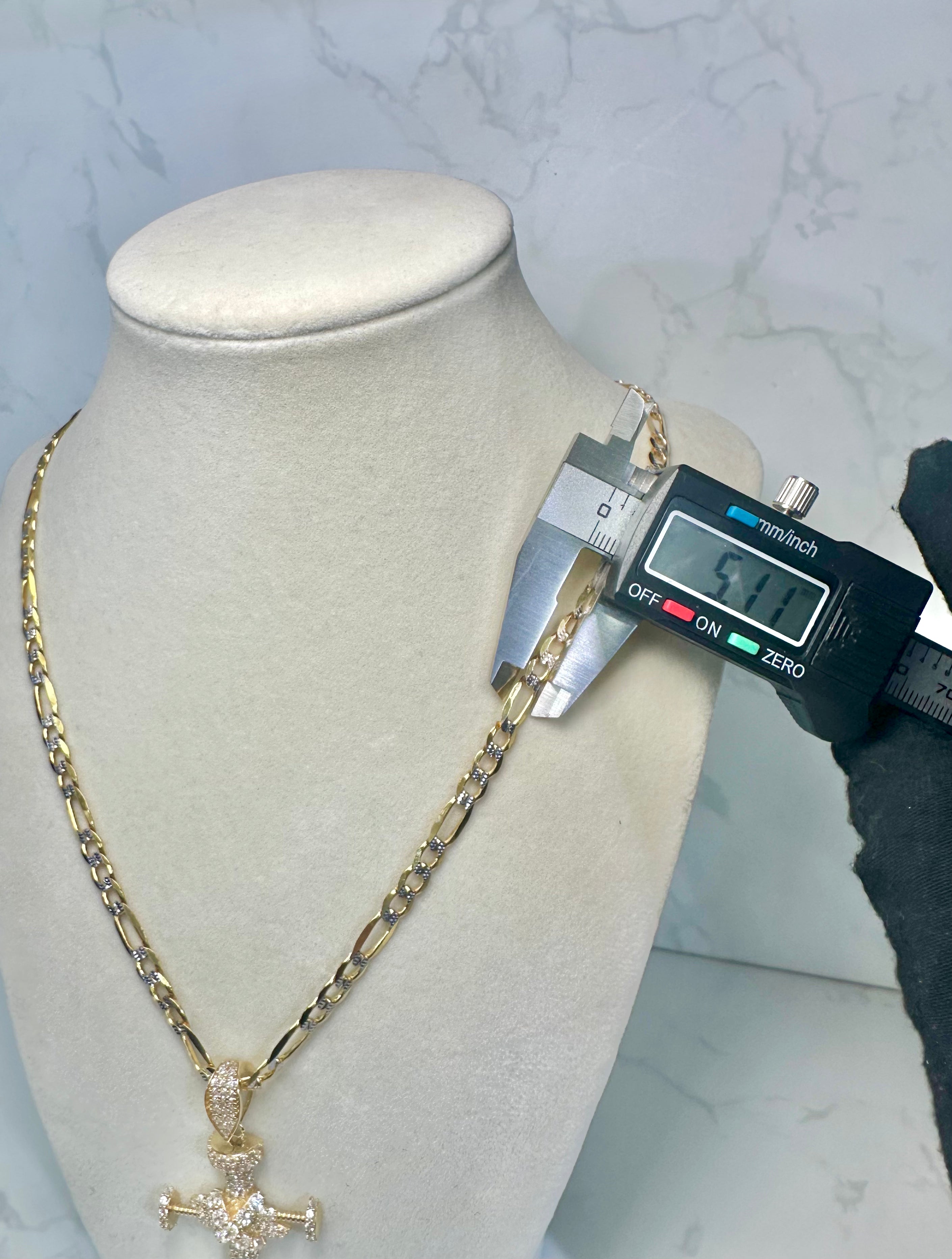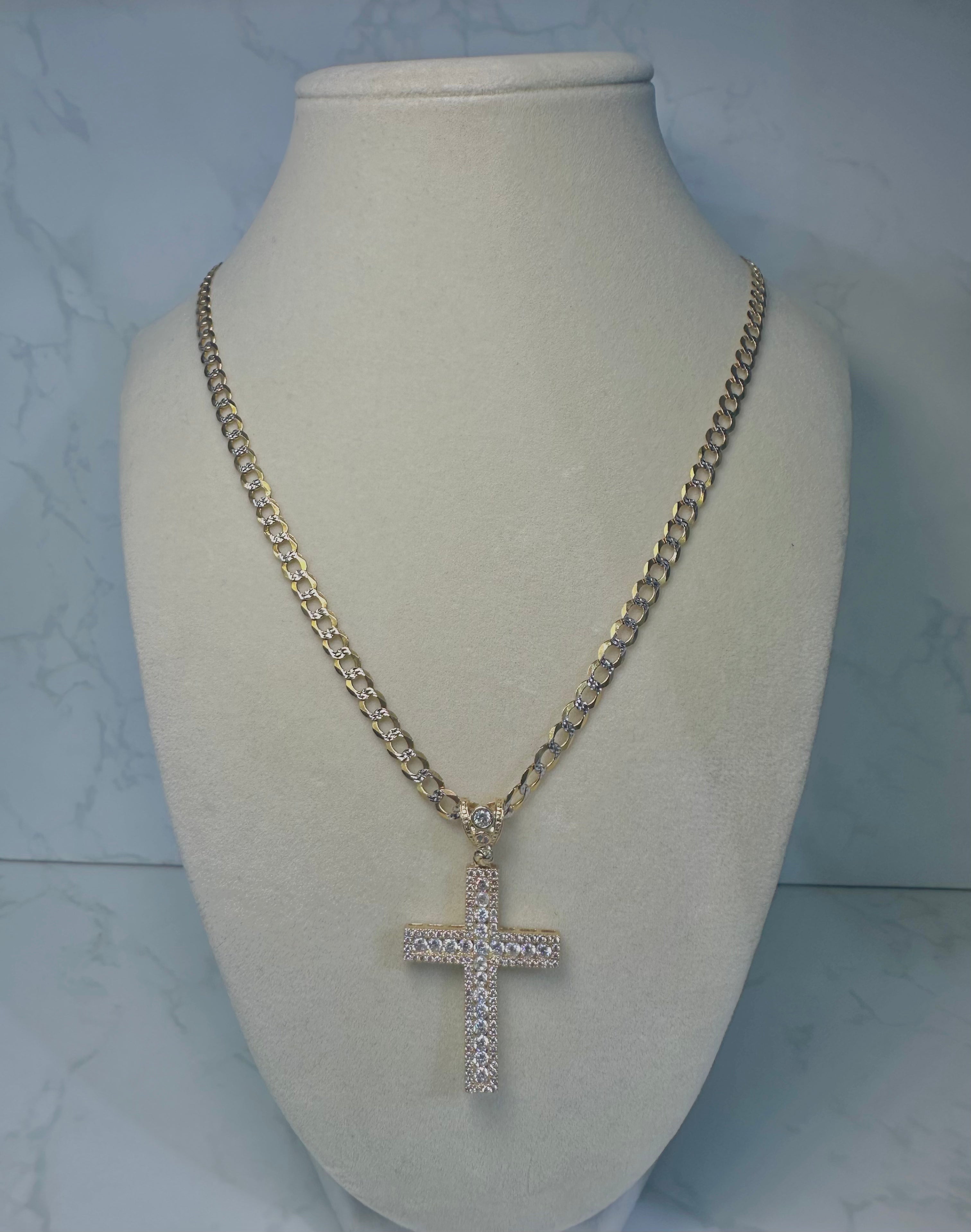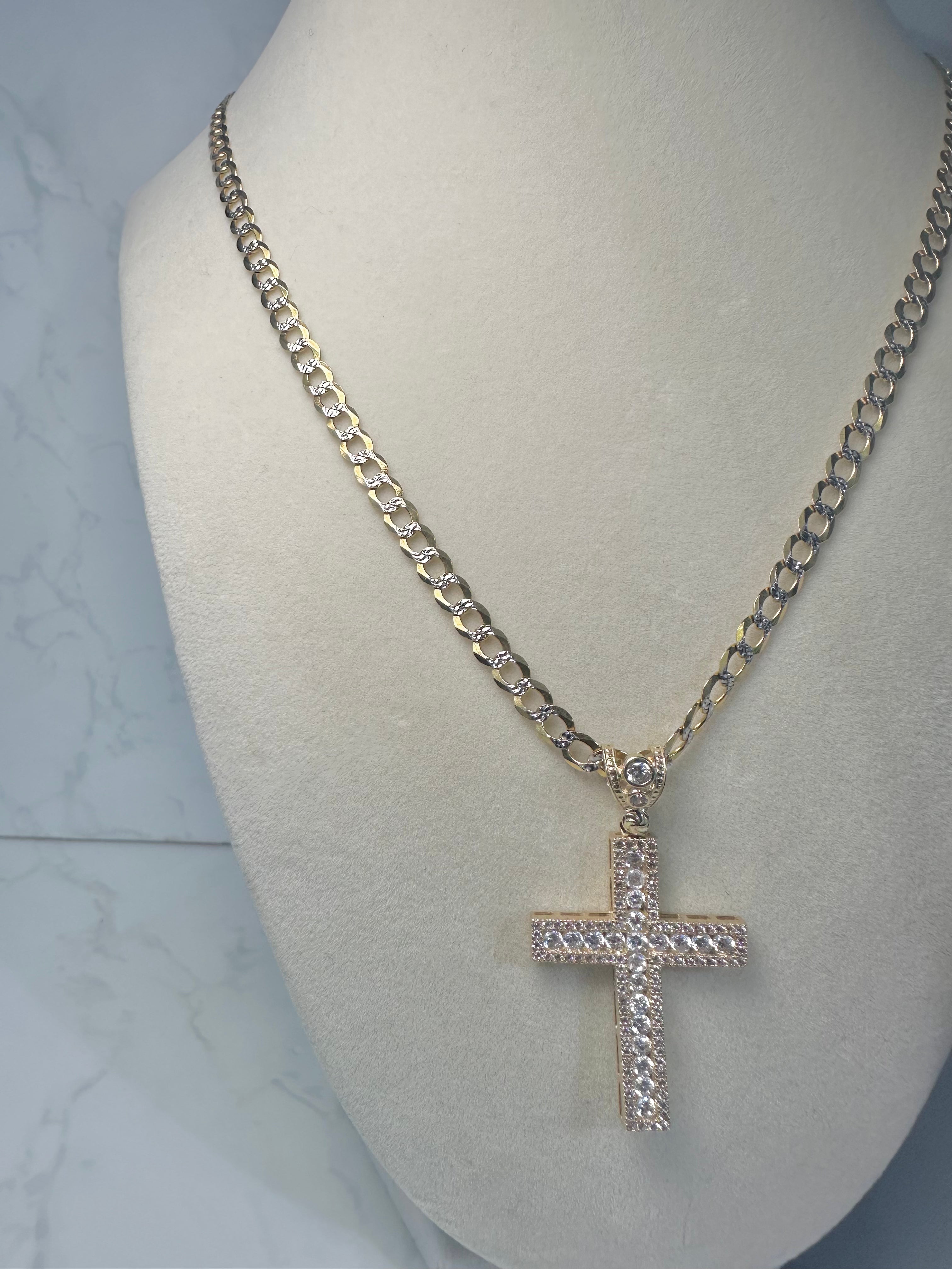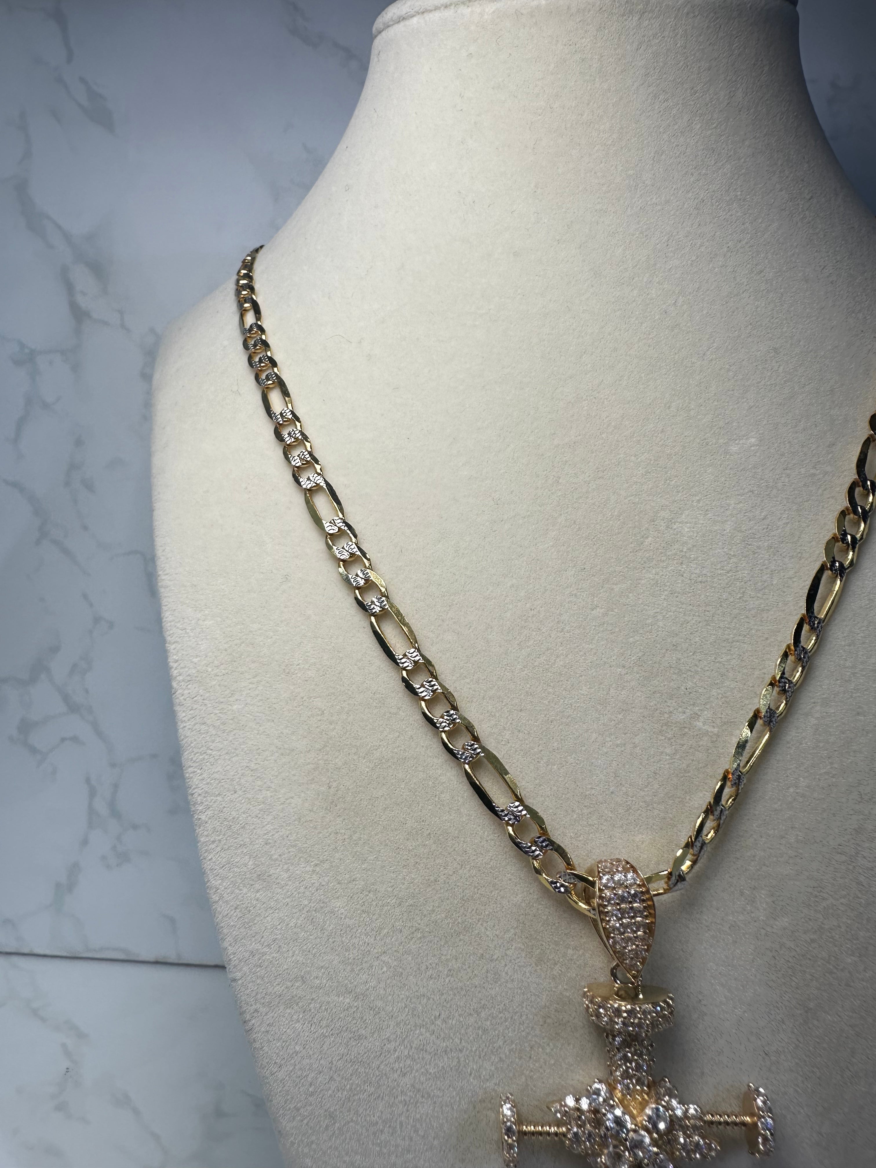 14KT Solid Cuban Chain W/ Jesus Head Pendant
