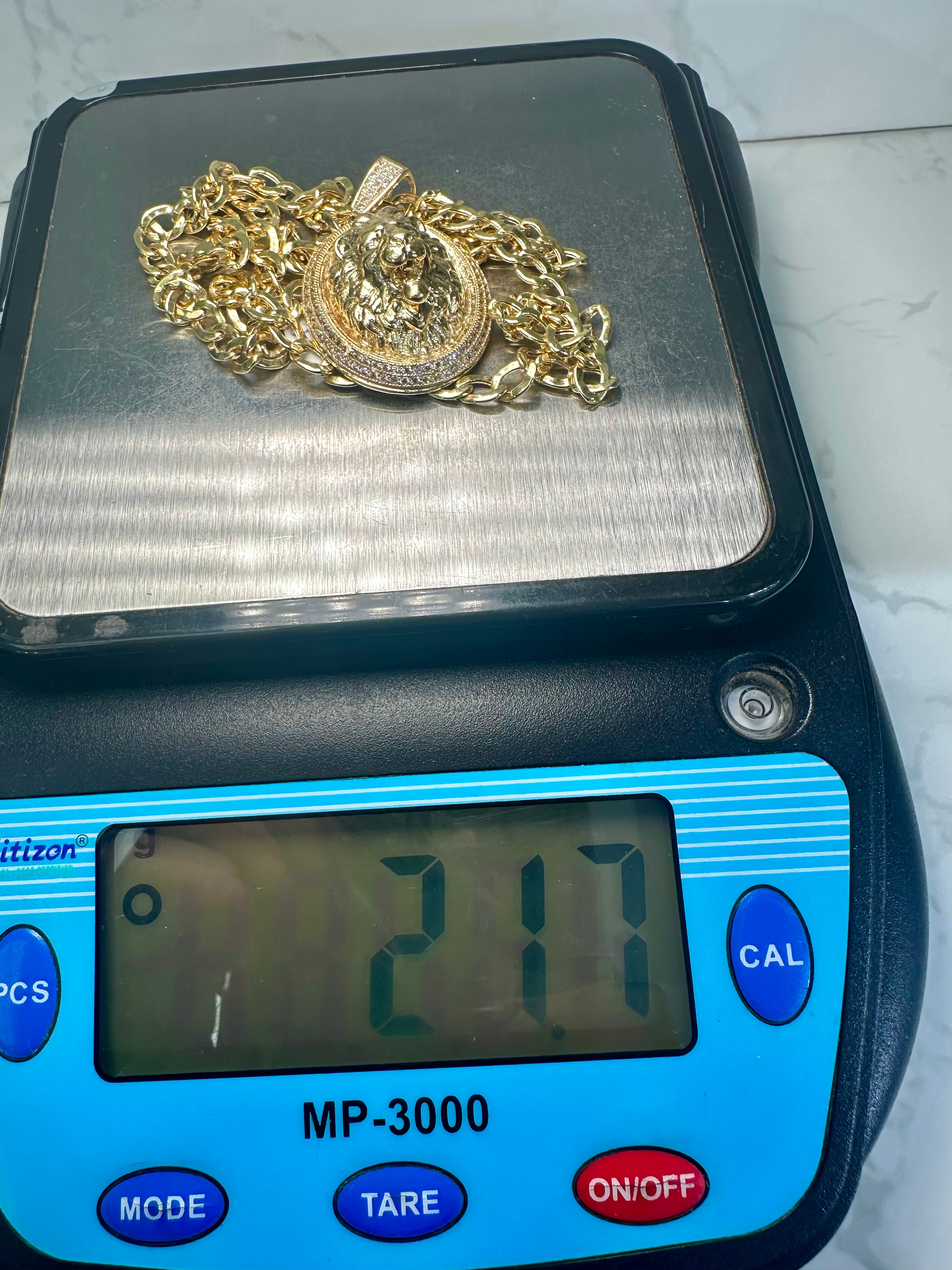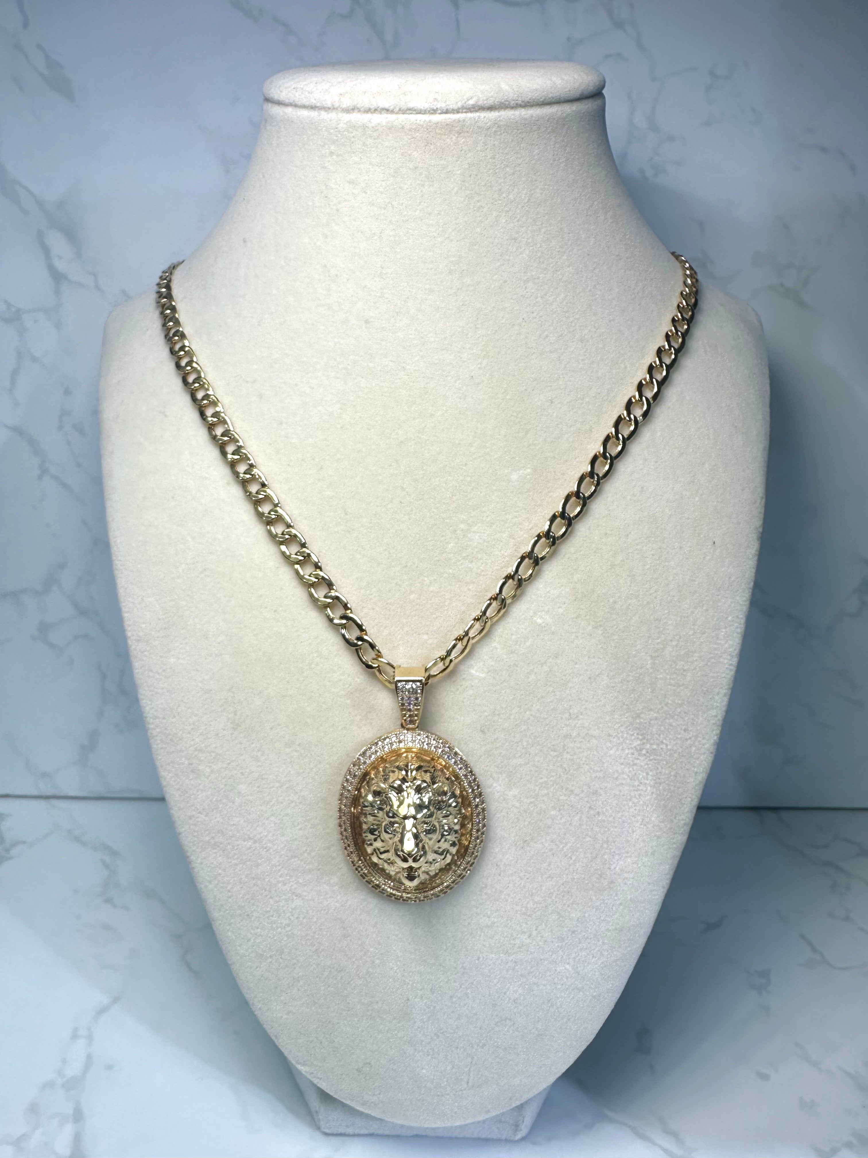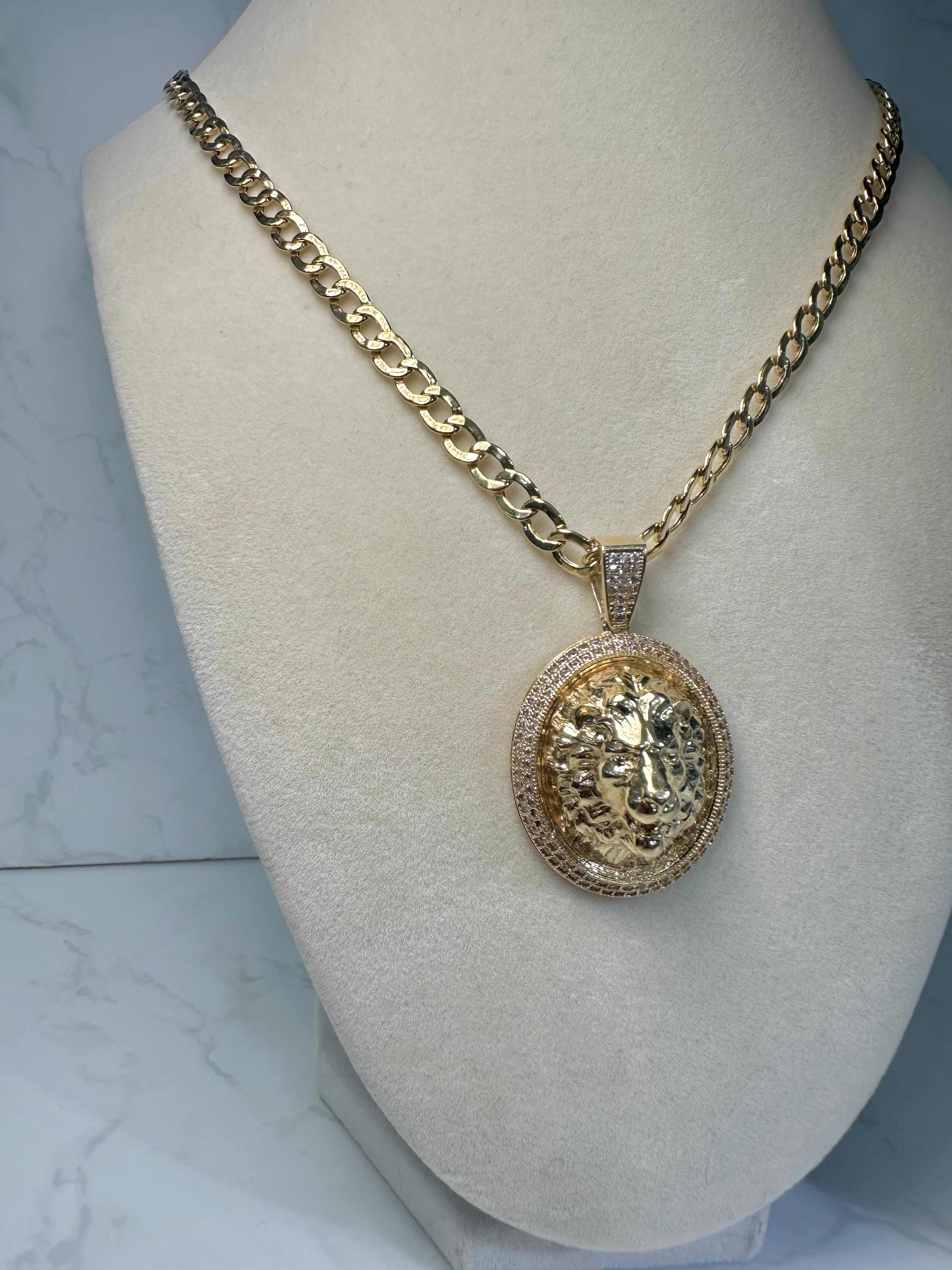14kt Cuban Chain W/ Lion Pendant