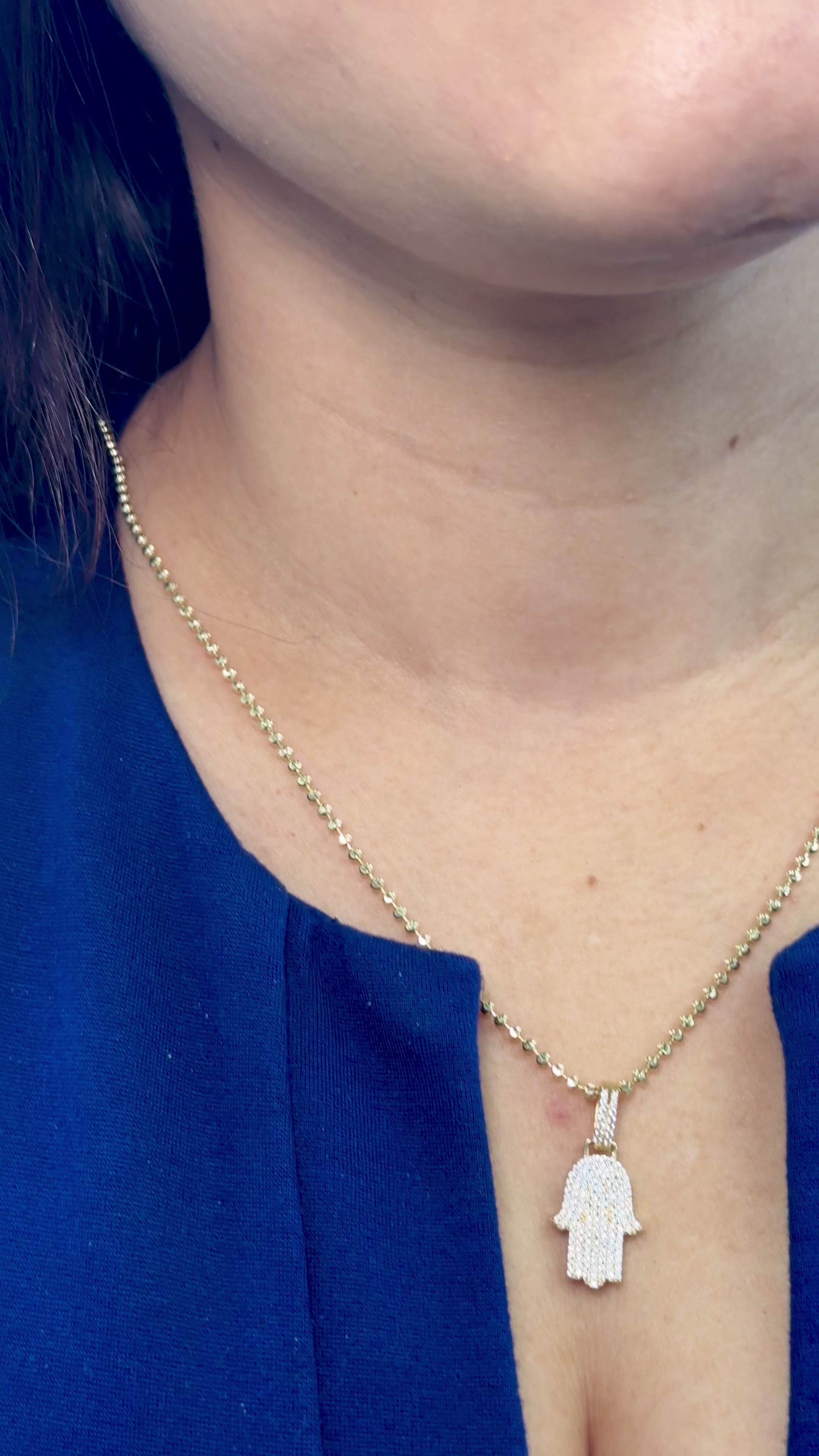 14kt Gold Hamsa Pendant & Moon Cut Ball Solid Chain SET