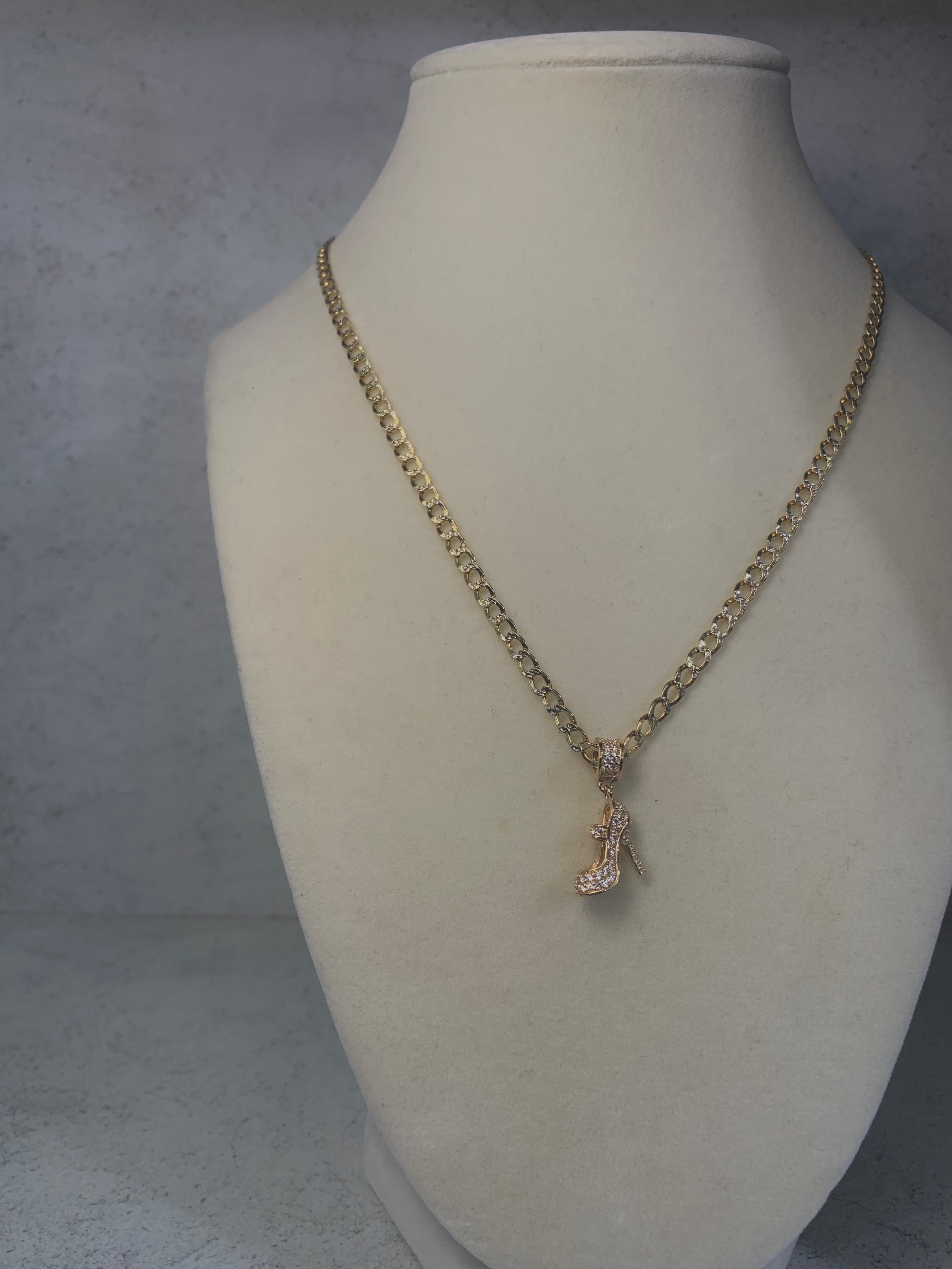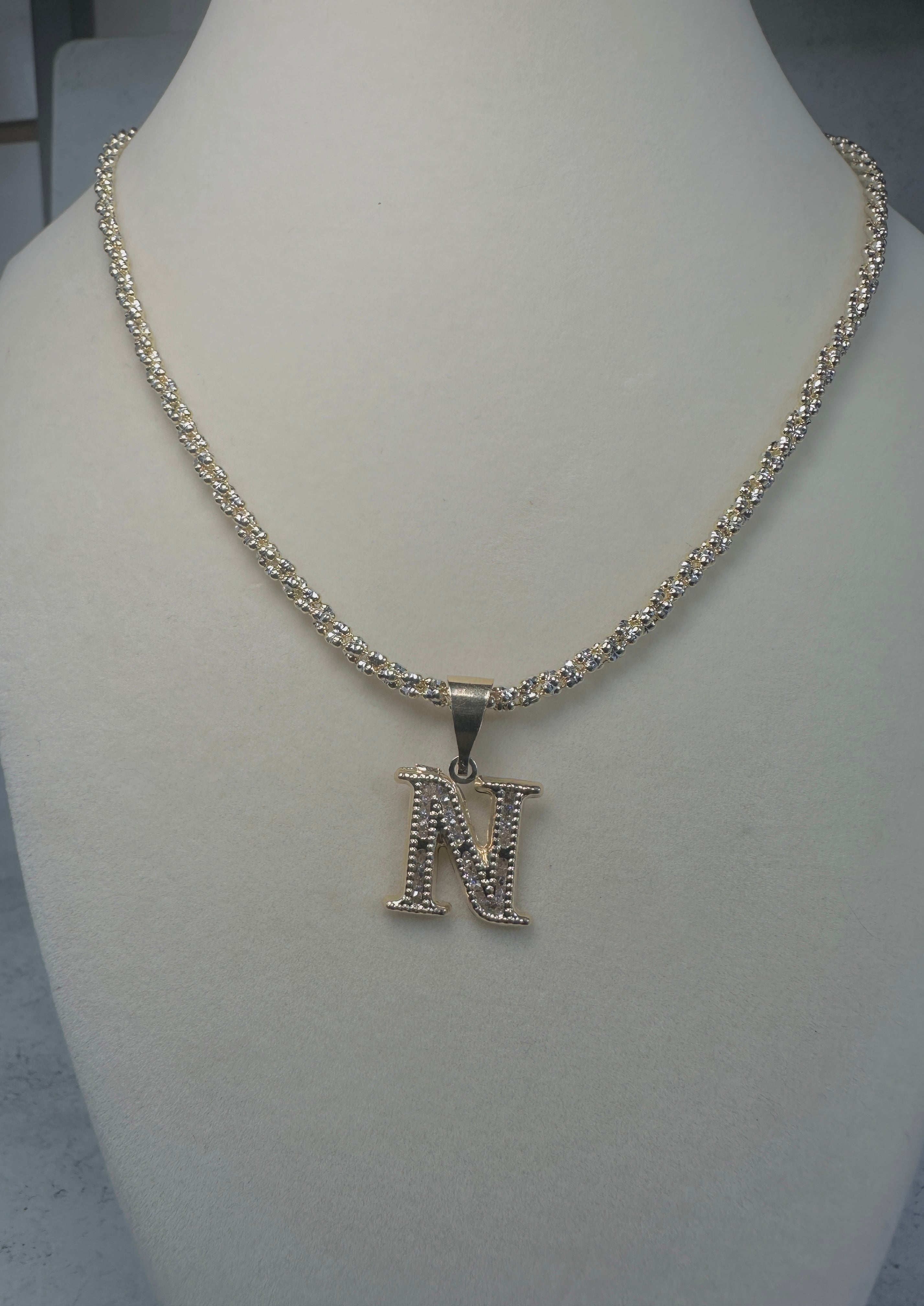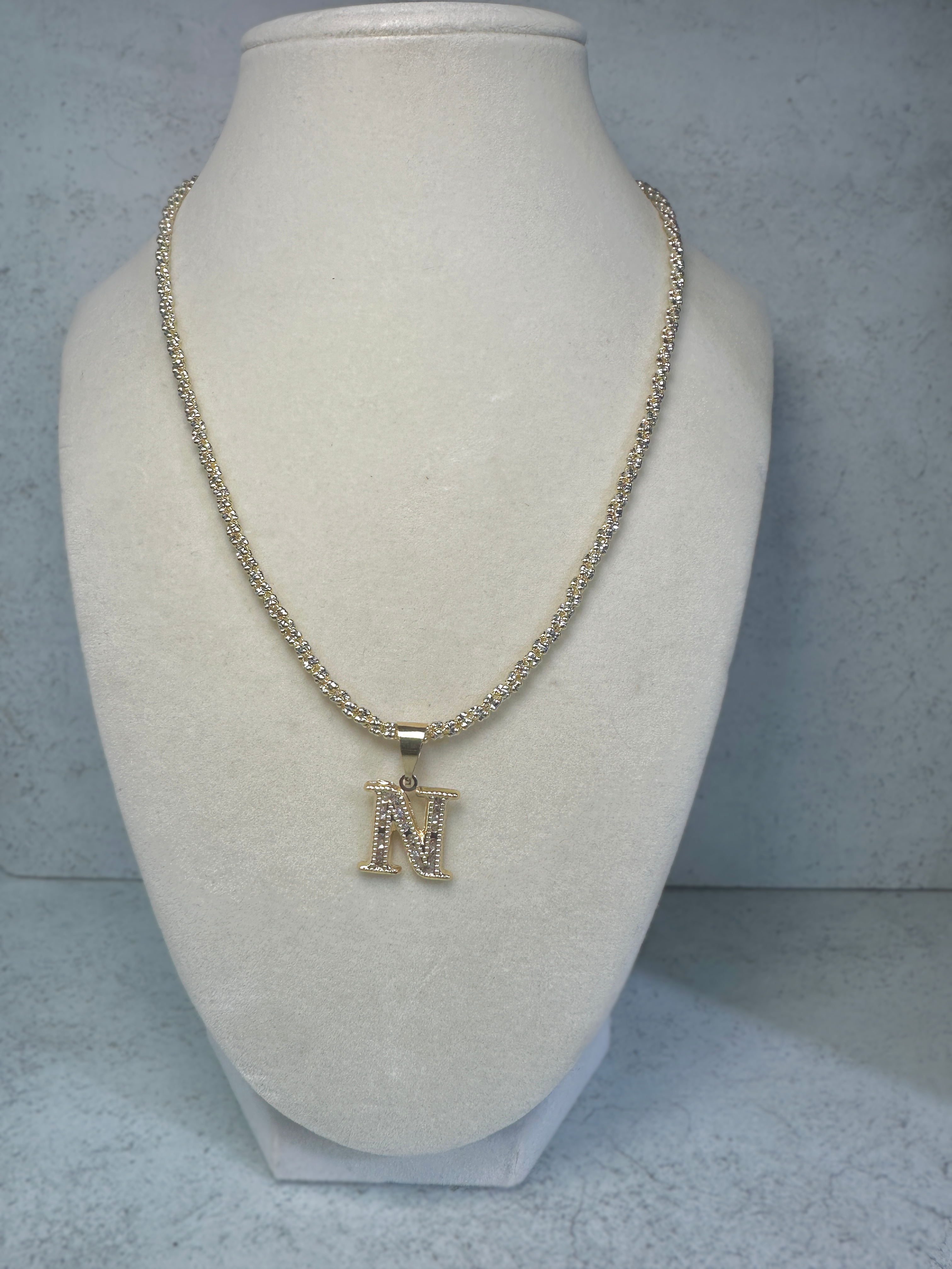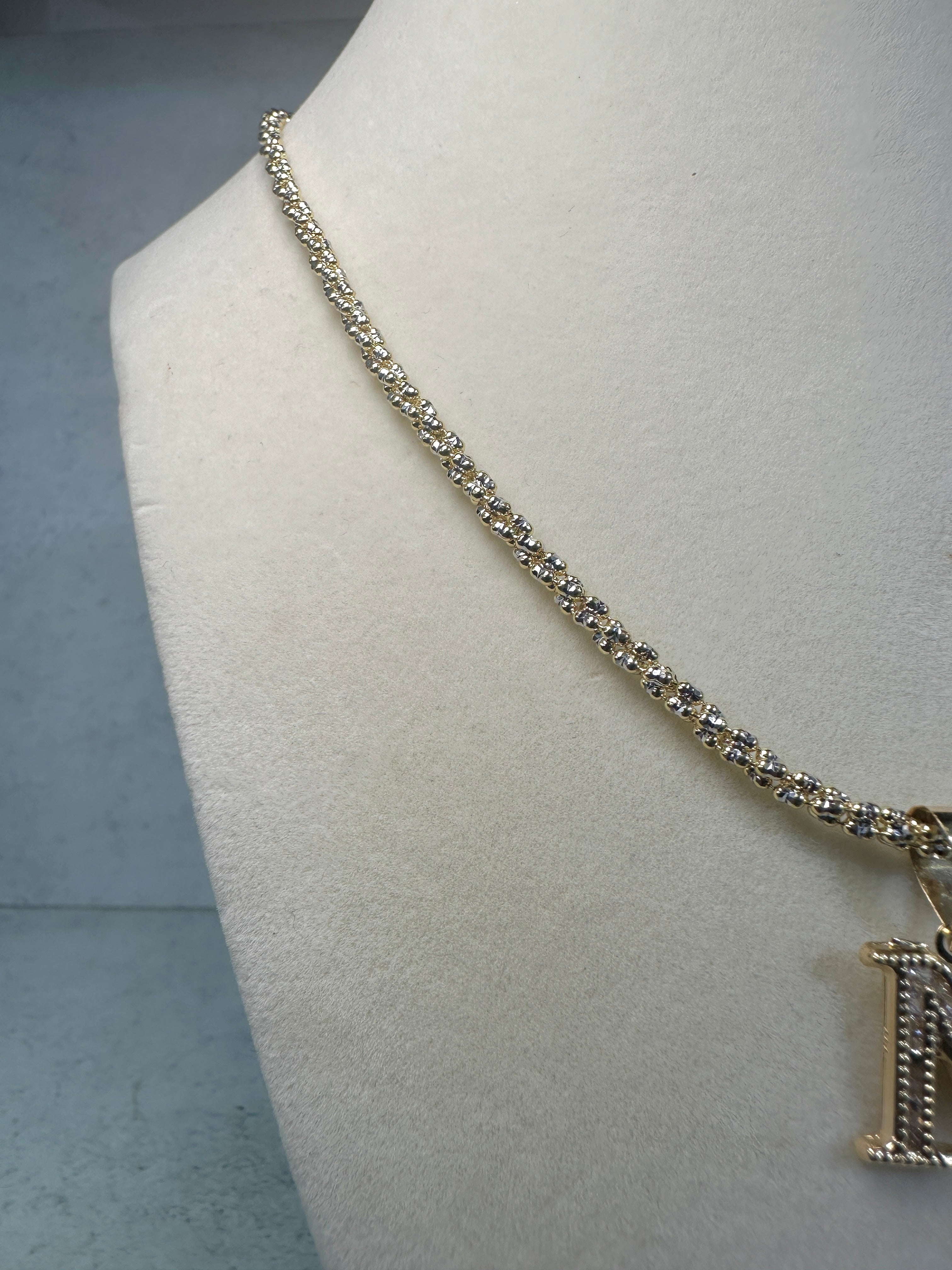 14kt Twisted Moon Ice Chain W/ Name Initial