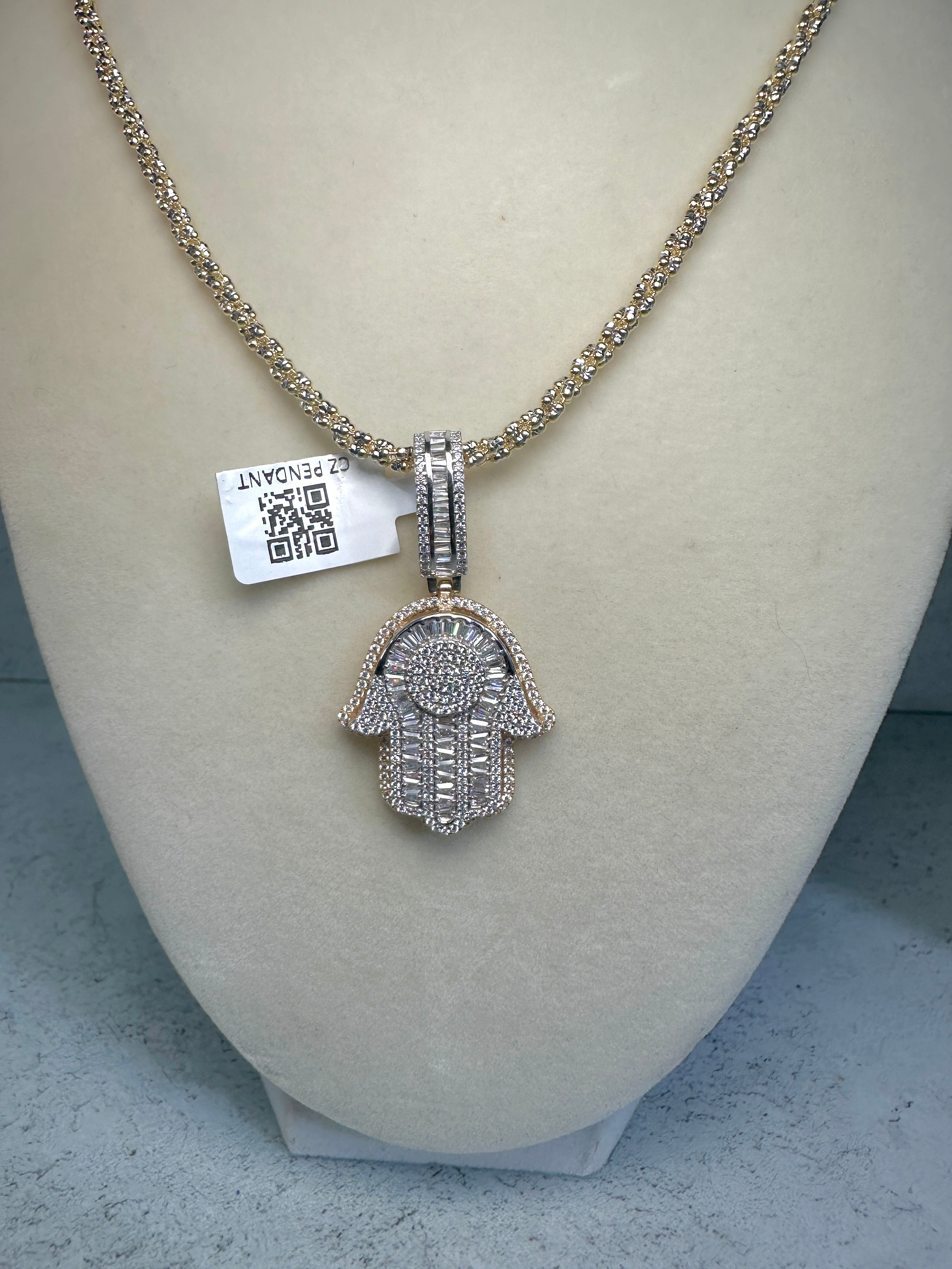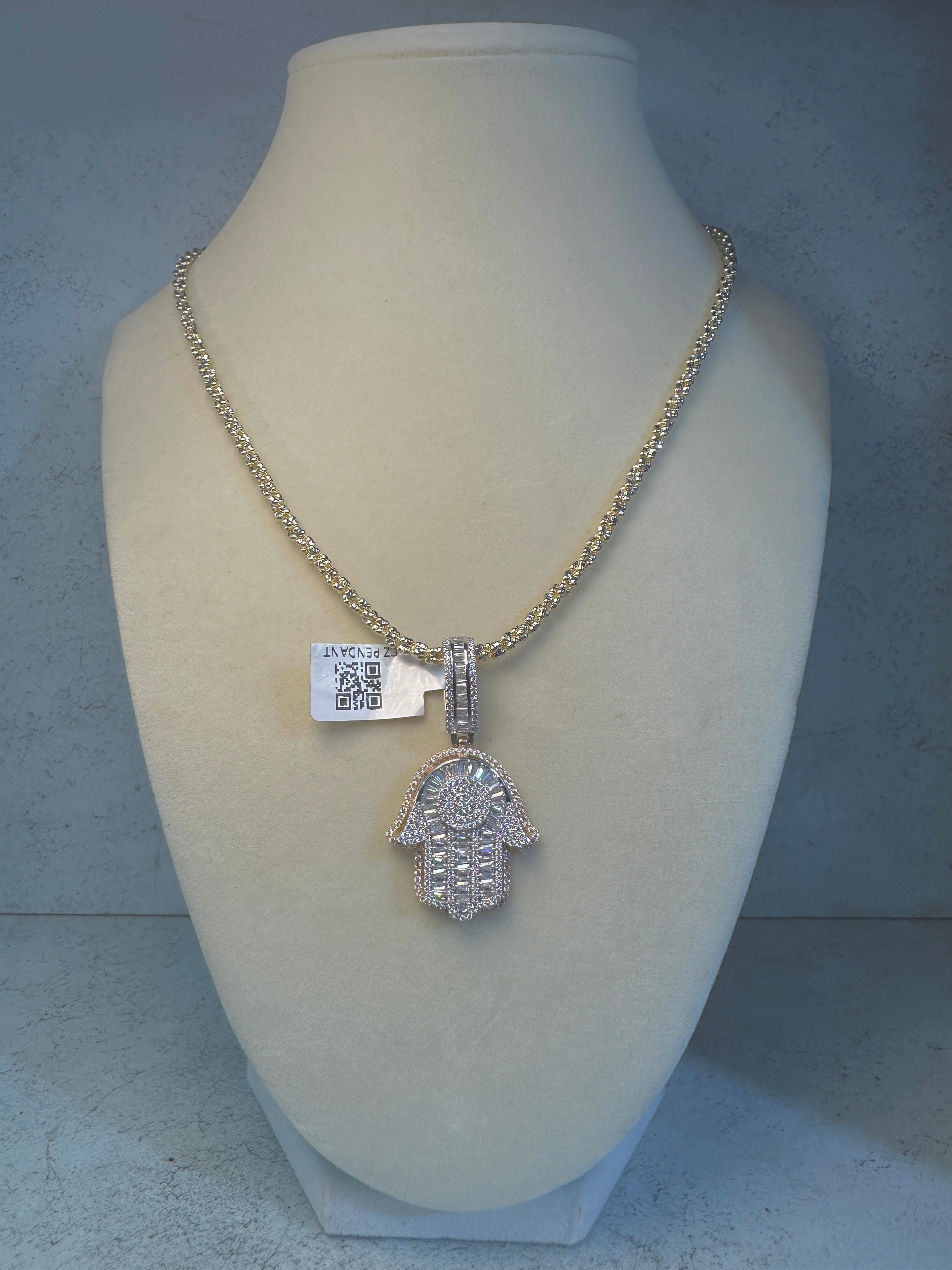 14kt Twisted Ice Chain W/ Hamsa Pendant