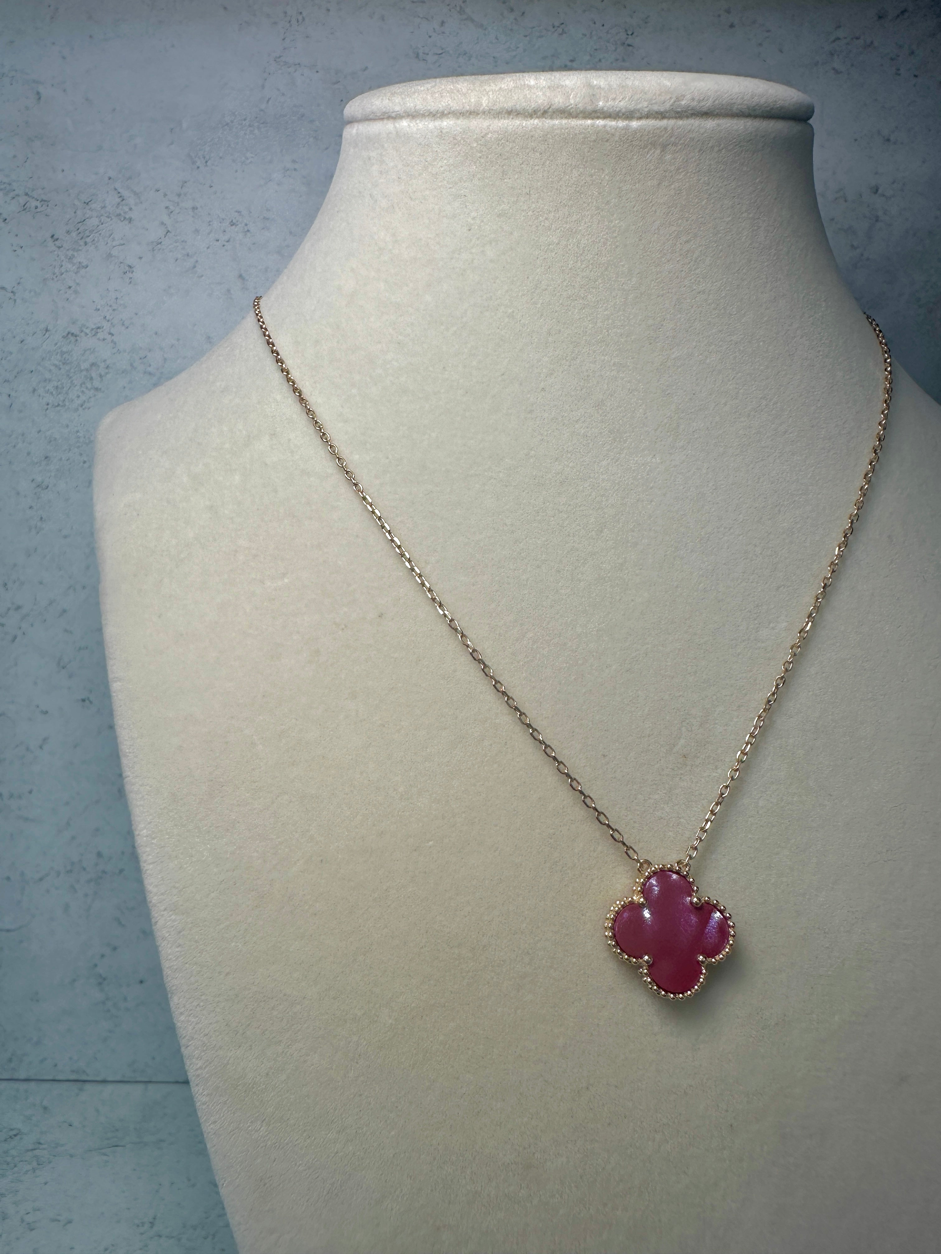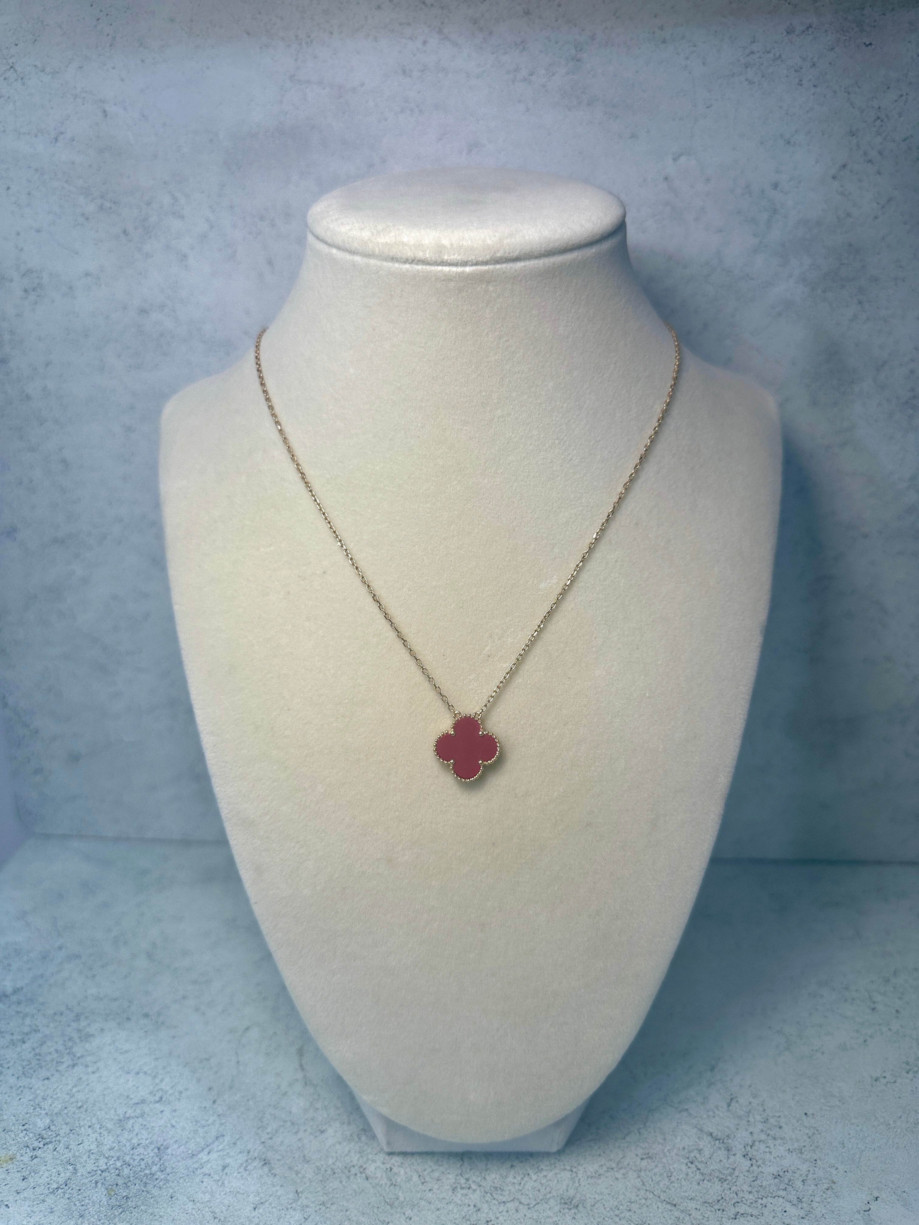 14kt Clover Necklace and Bracelet Set- Dark Green