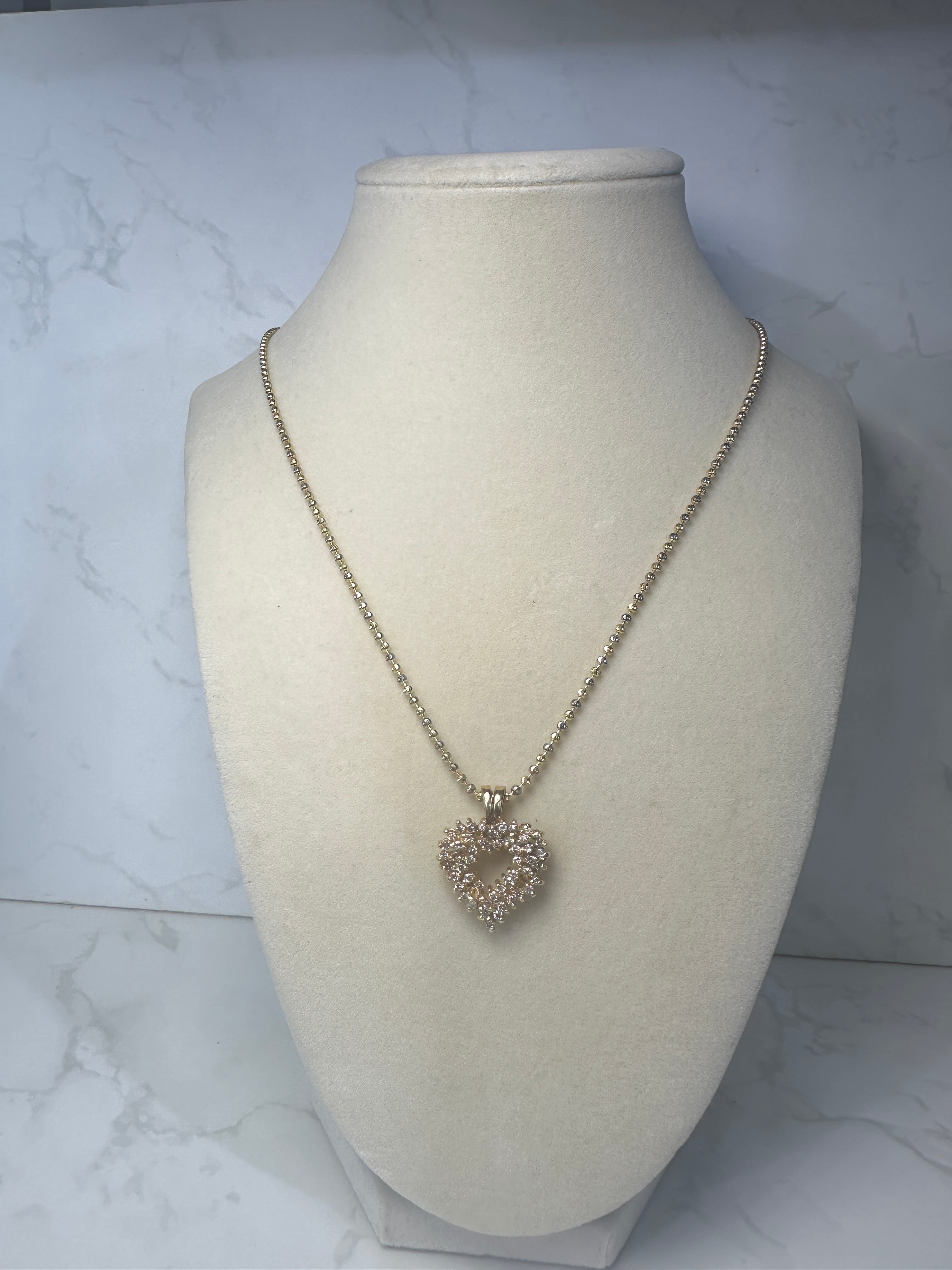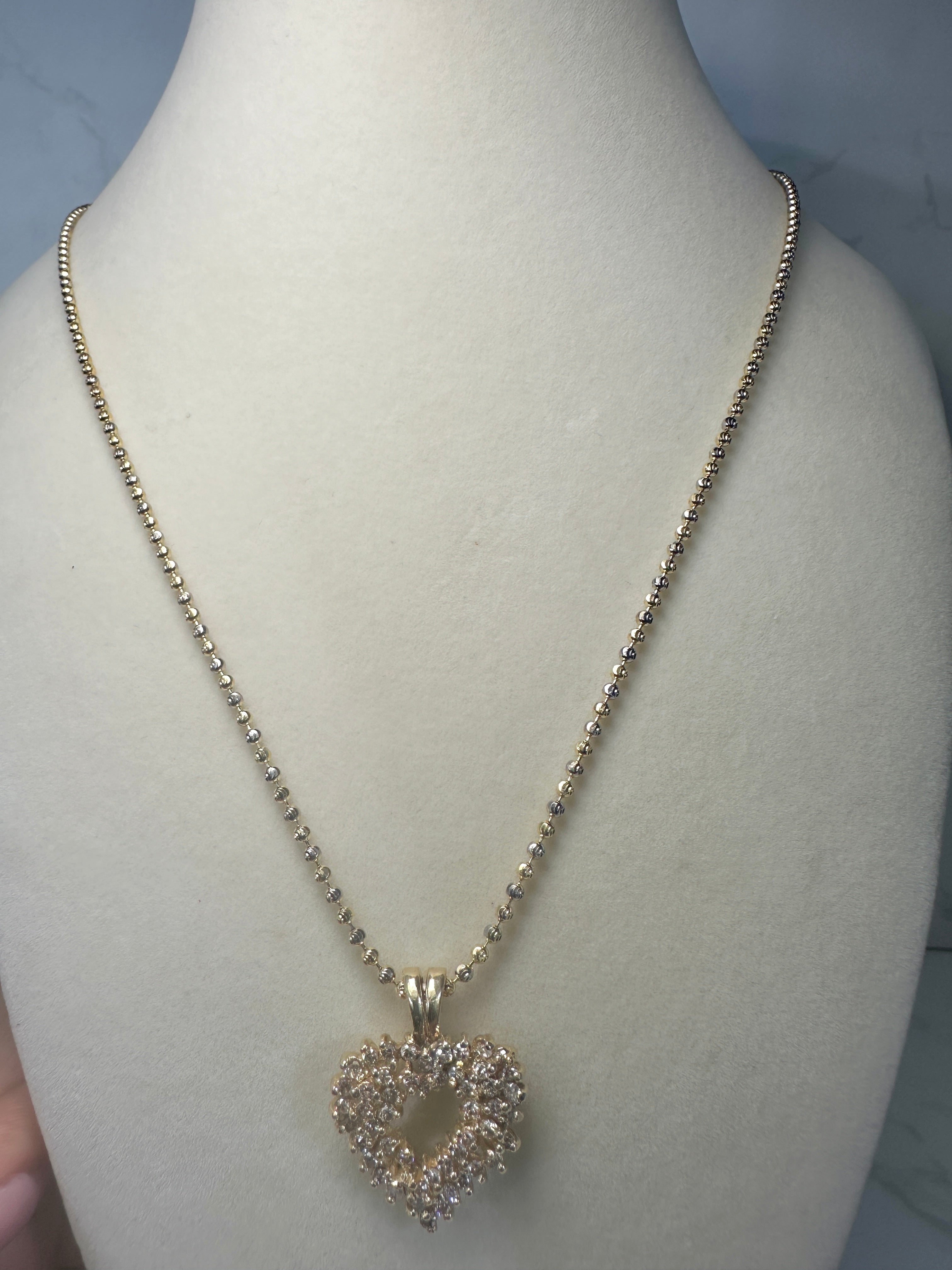 Real Champagne Diamonds Heart Pendant W/ 14kt Moon Cut Ball Bead Chain