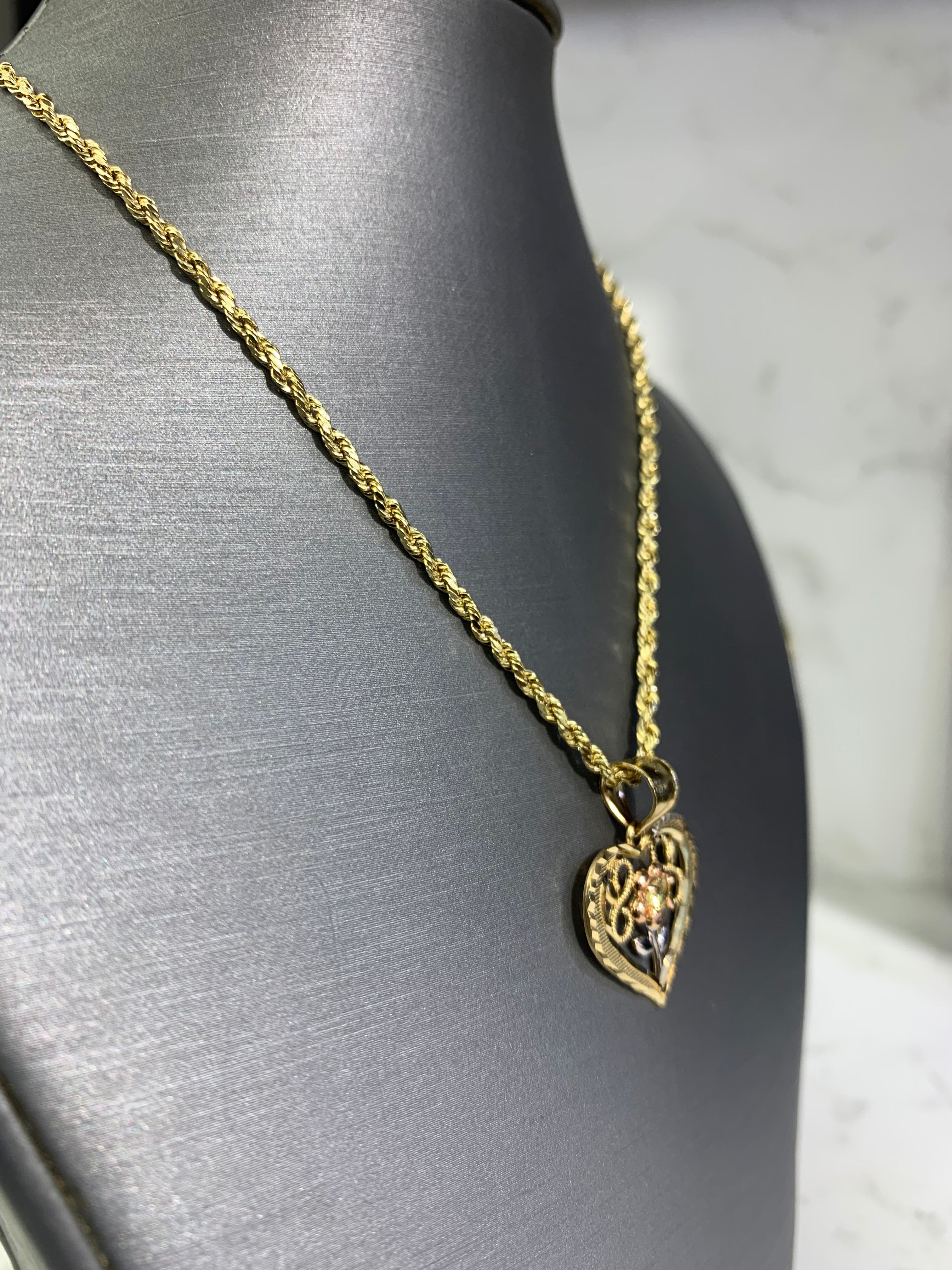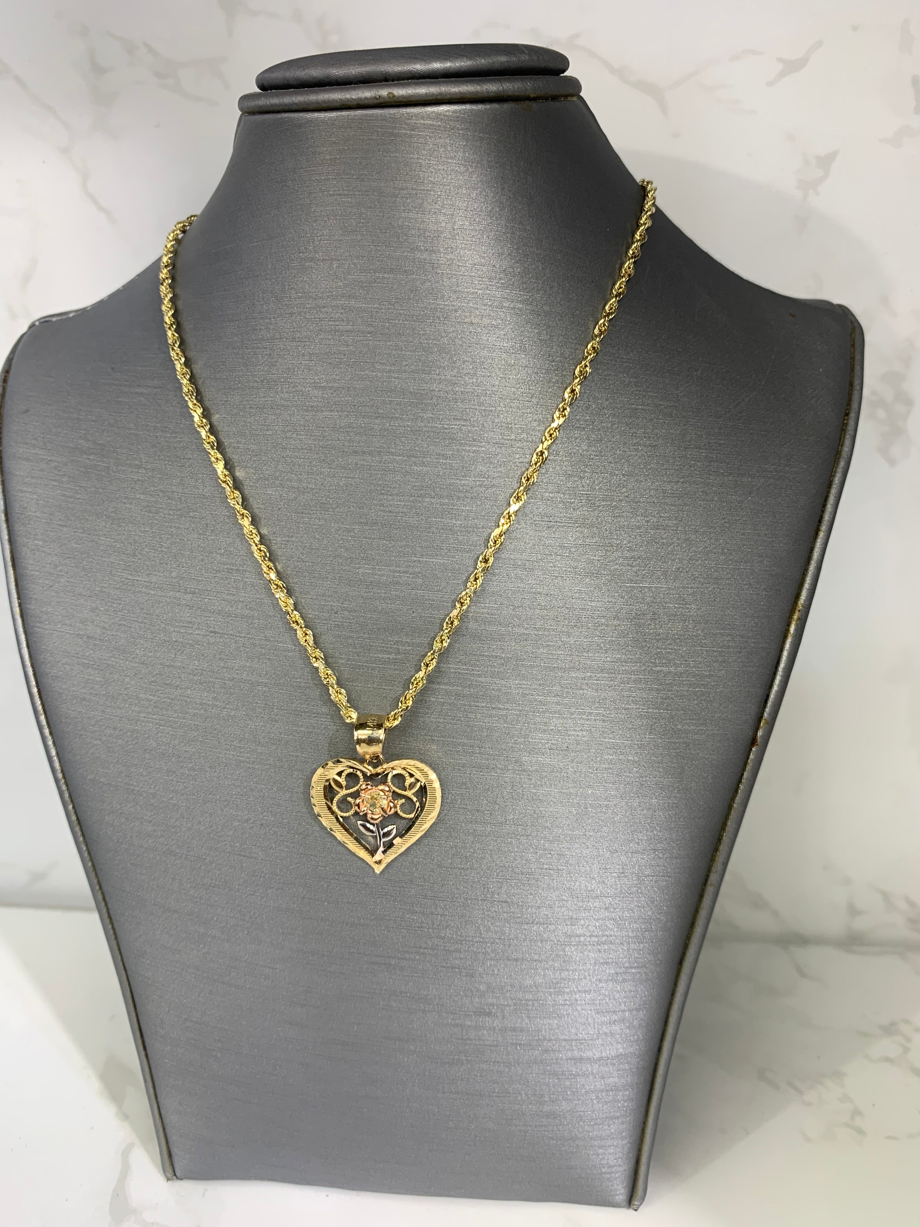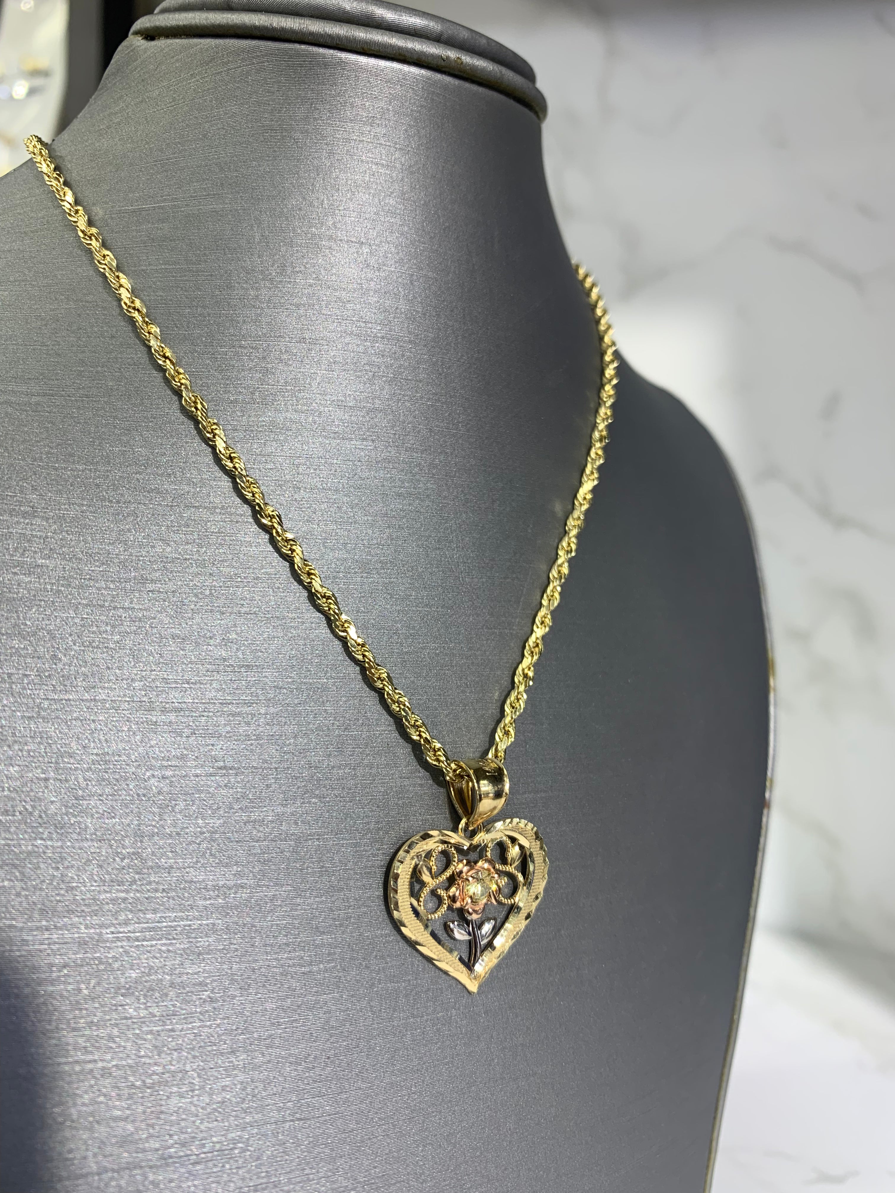 14kt Gold Tricolor "XO" Necklace & "I love you Pendant"