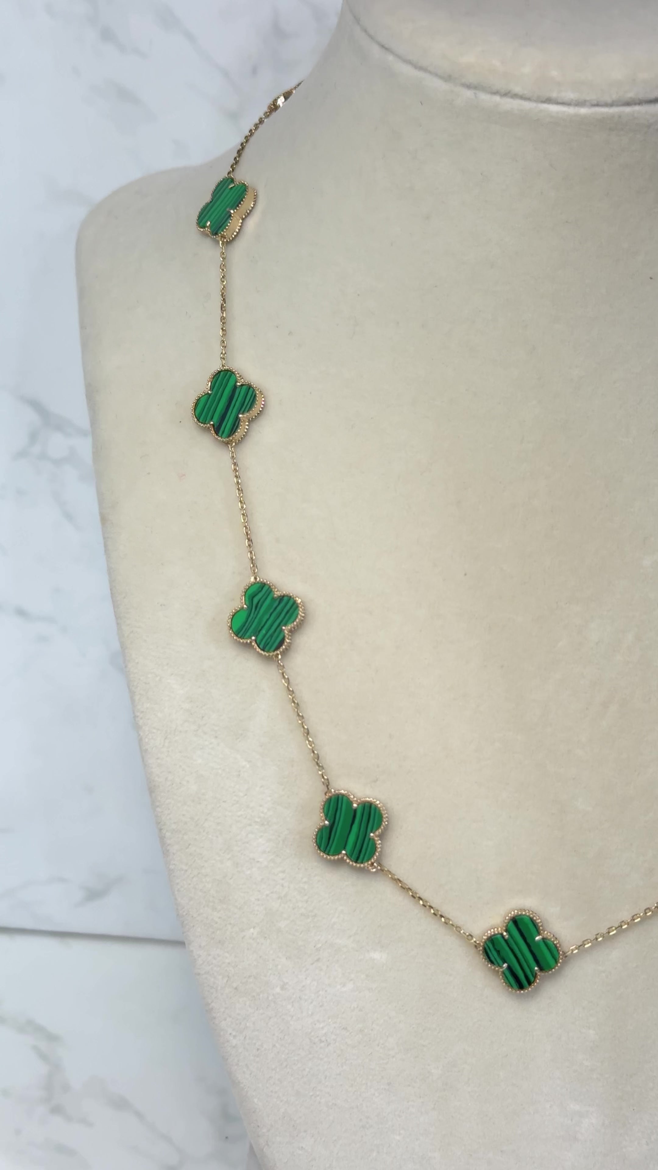 14kt Gold Sunburst 13- Flowers Charm Necklace- Dark Green