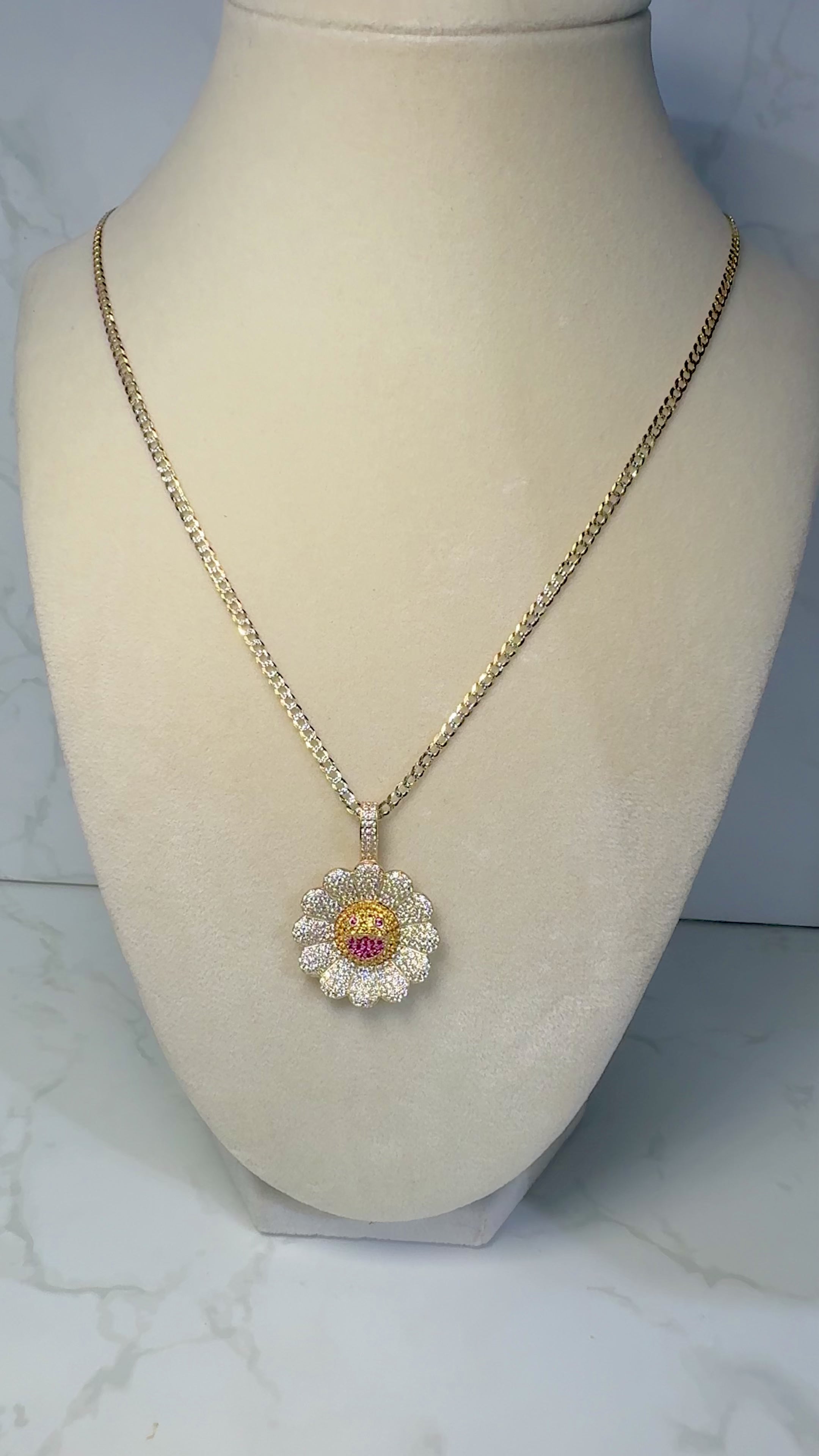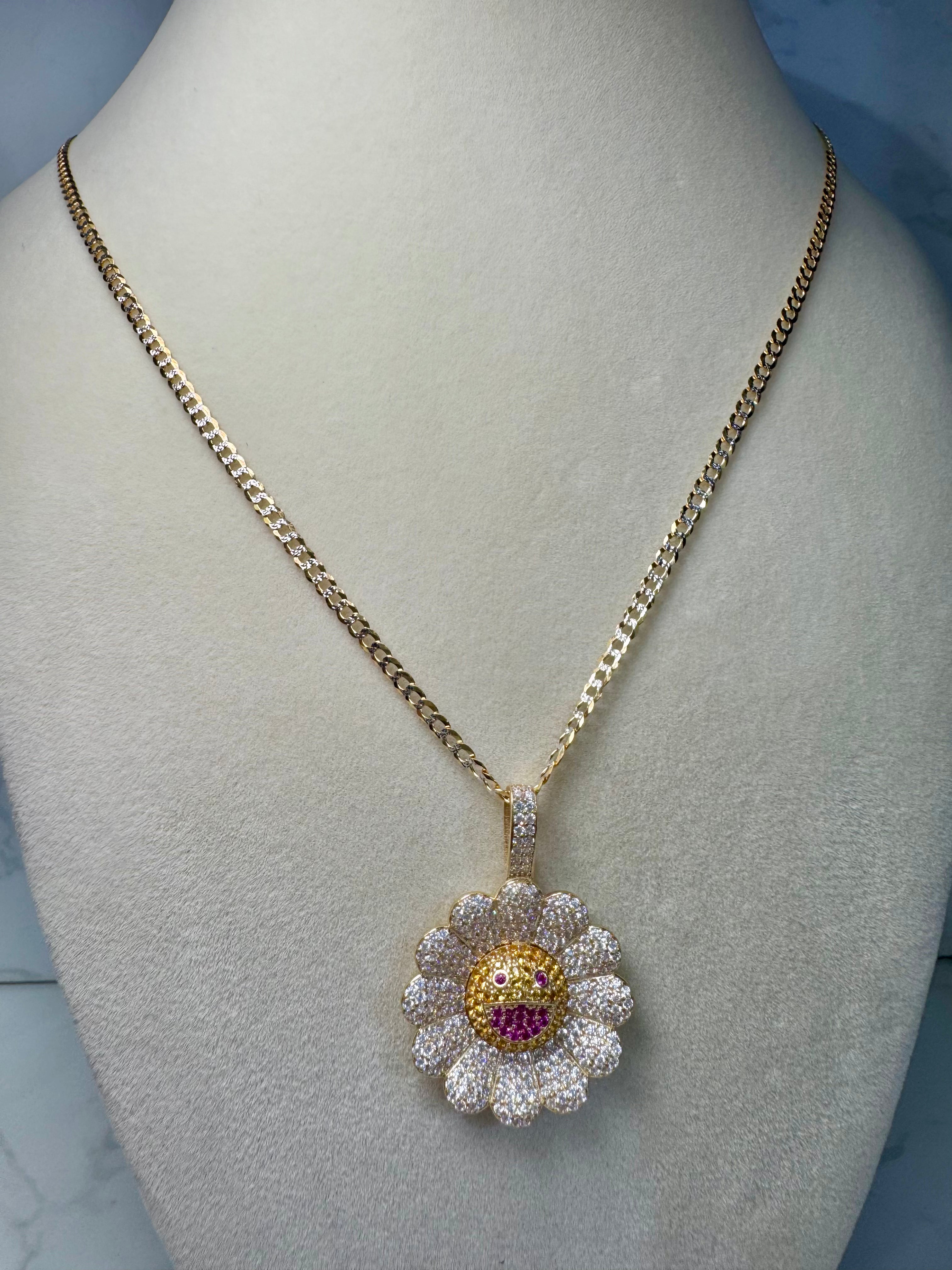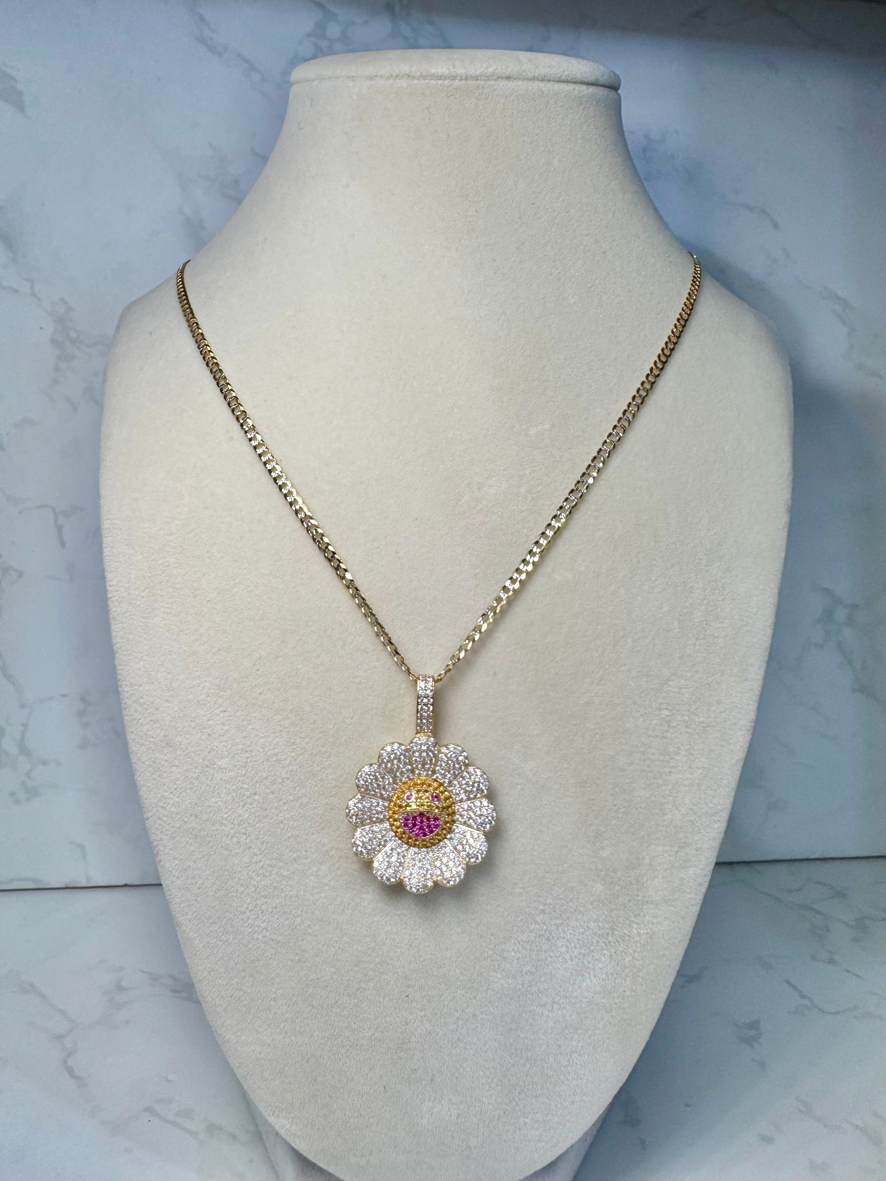 14KT Murakami Flower Pendant W/ Solid Two-Toned Chain