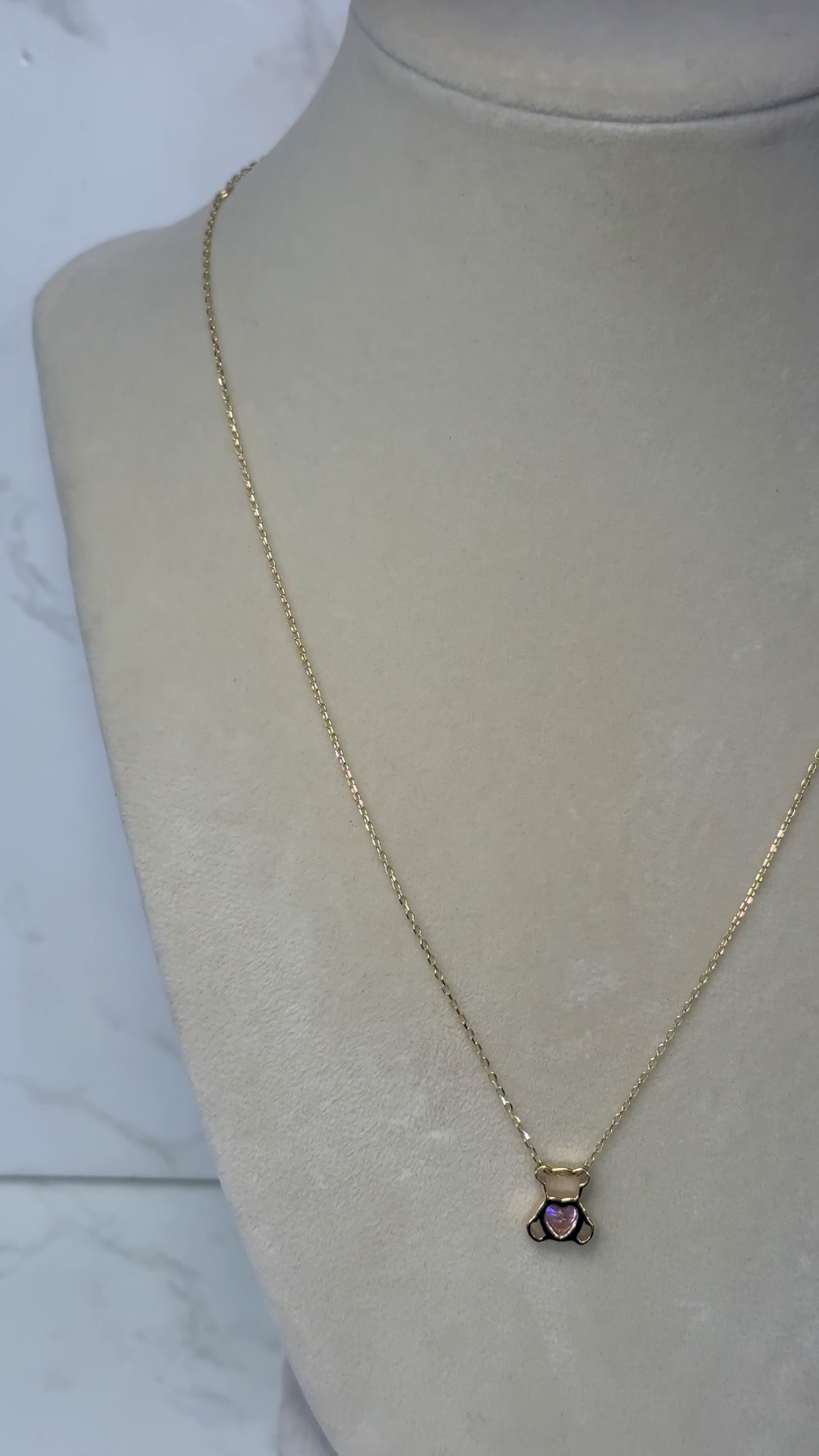 14kt Light Pink Teddy Bear Necklace