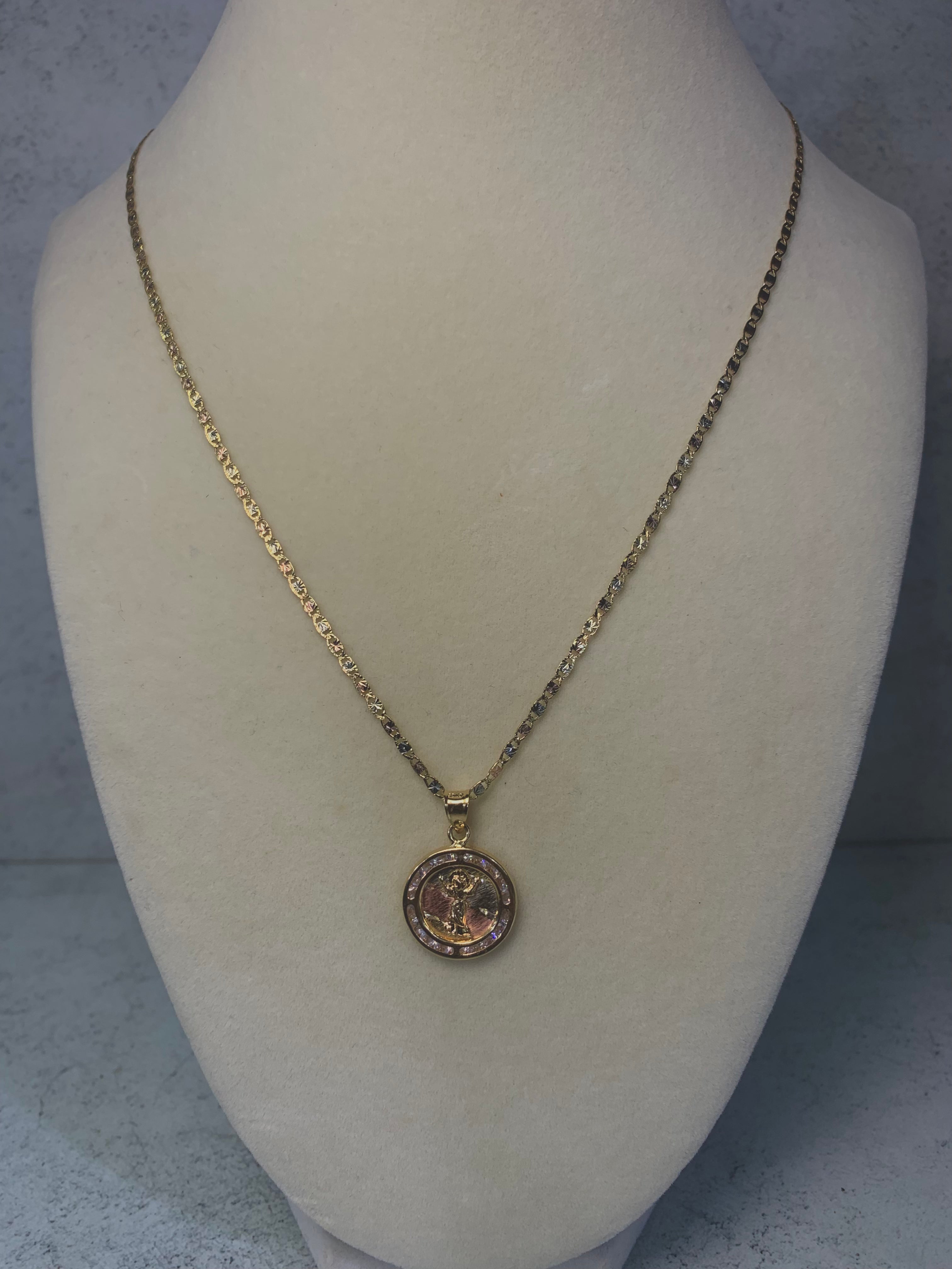 14kt Two-Toned Chain W/ Evil Eye Pendant
