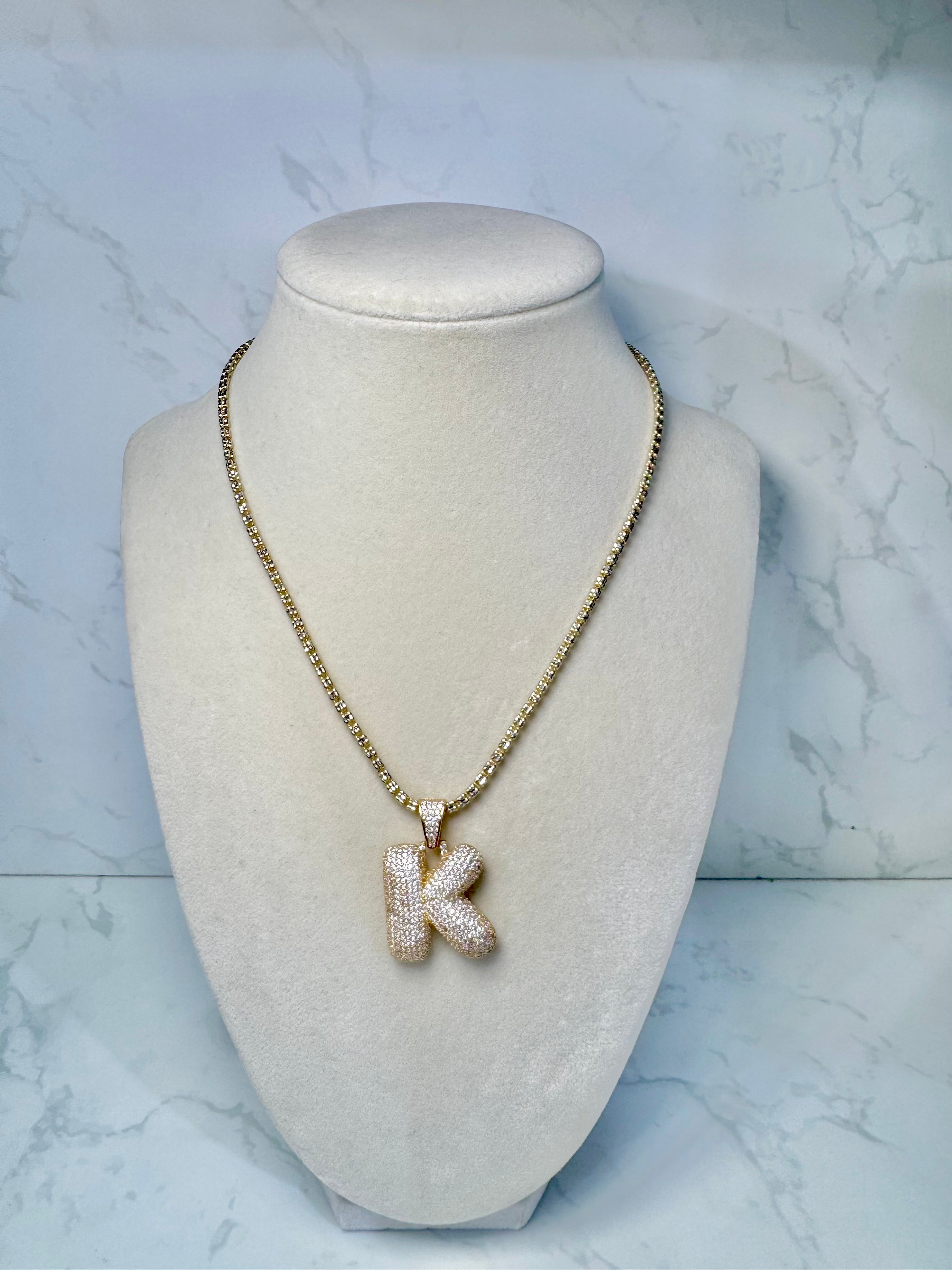 14K Paper Clip Bracelet W/ Channel Pendant