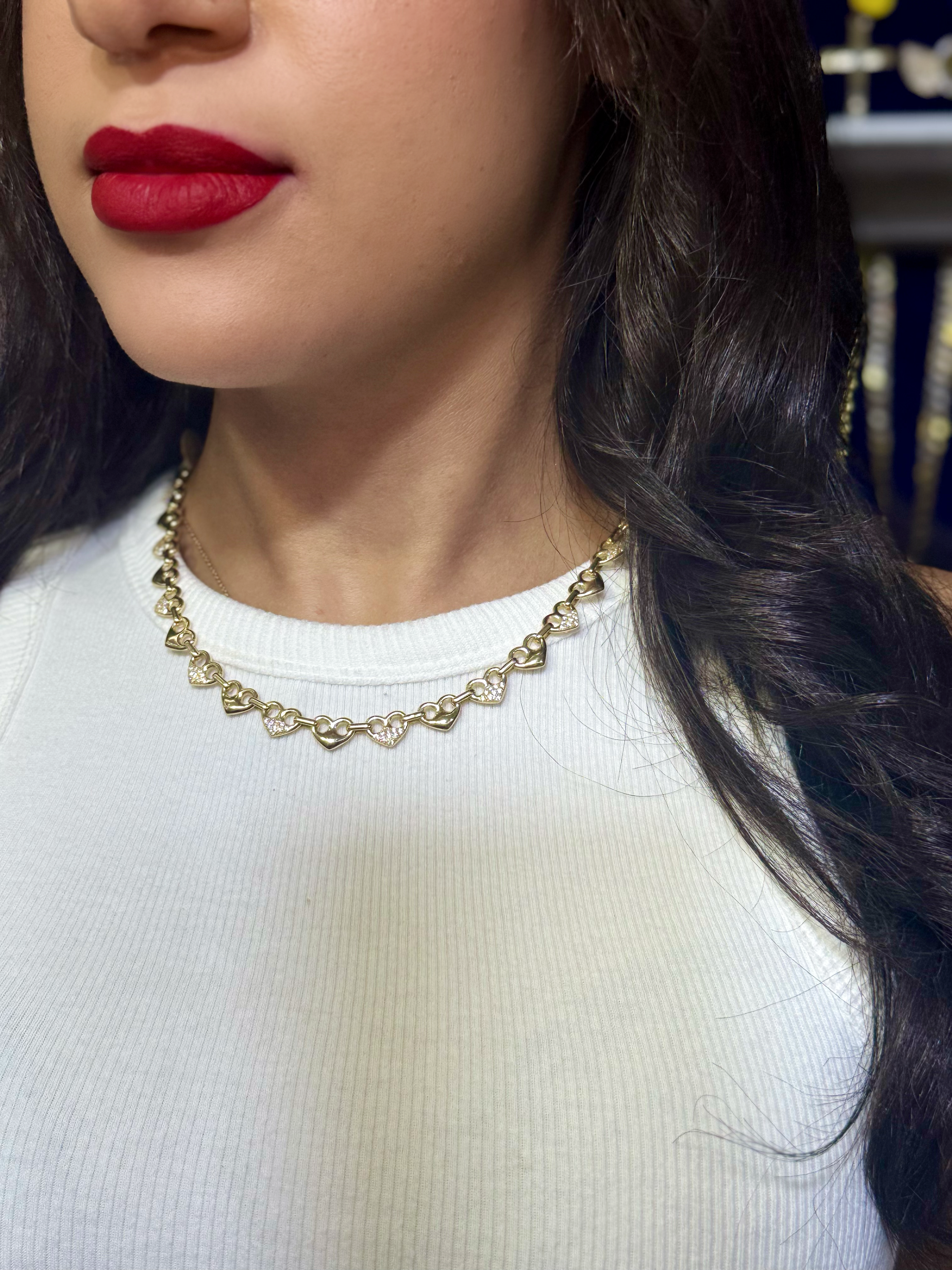 14K Gold Puff Heart Gucci Link Necklace