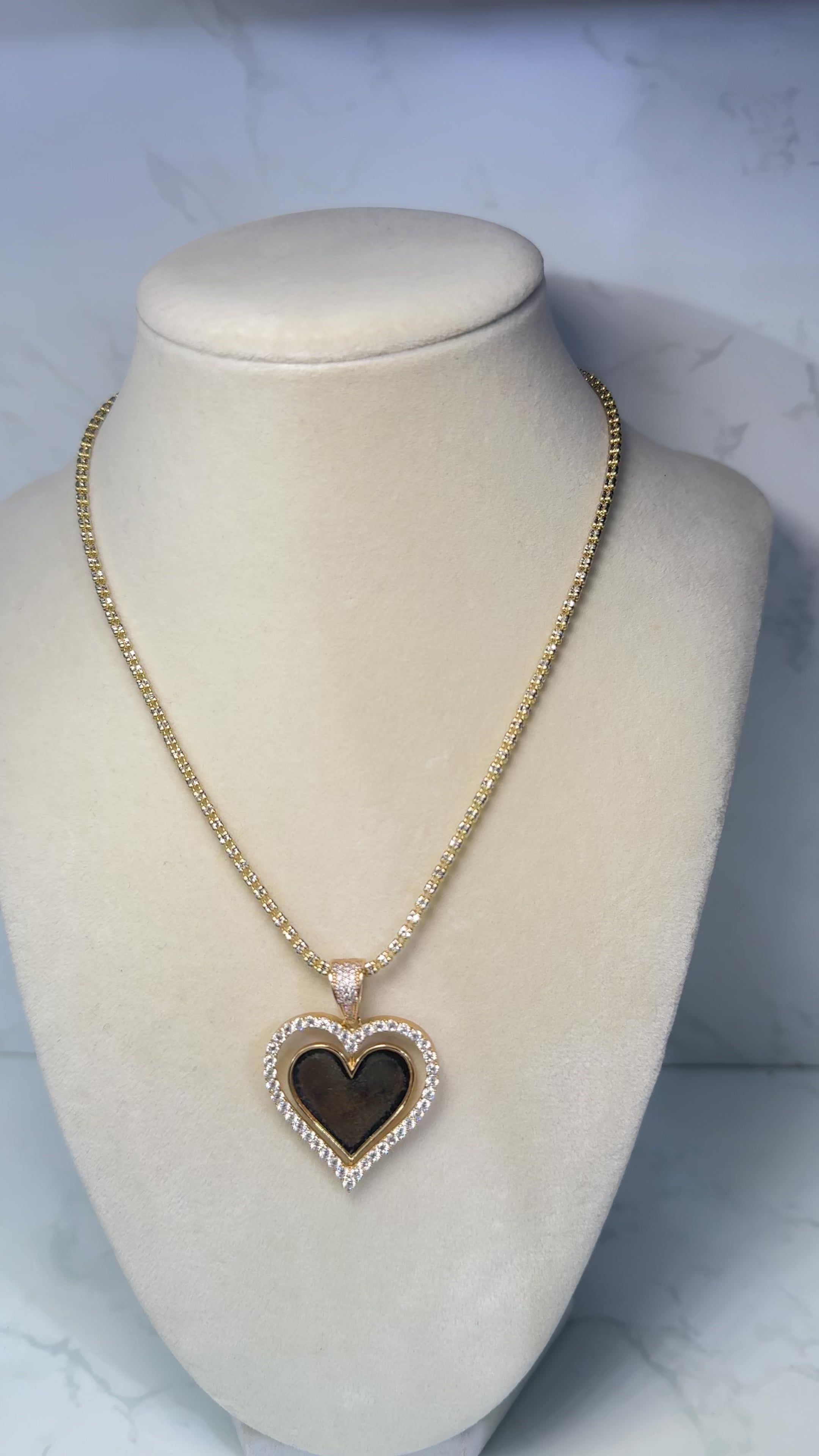 14K Moon Ice Chain W/ Picture Heart Pendant