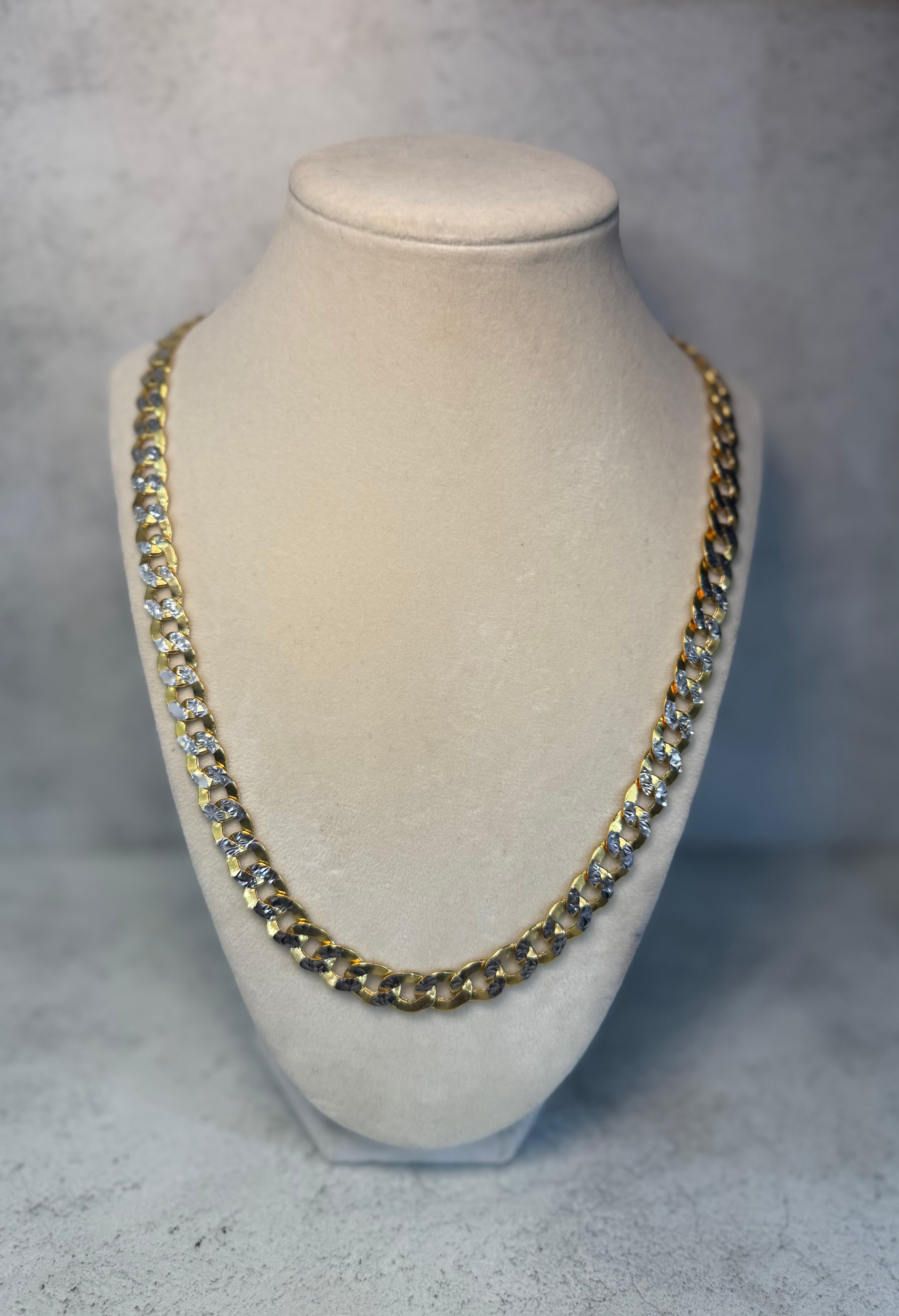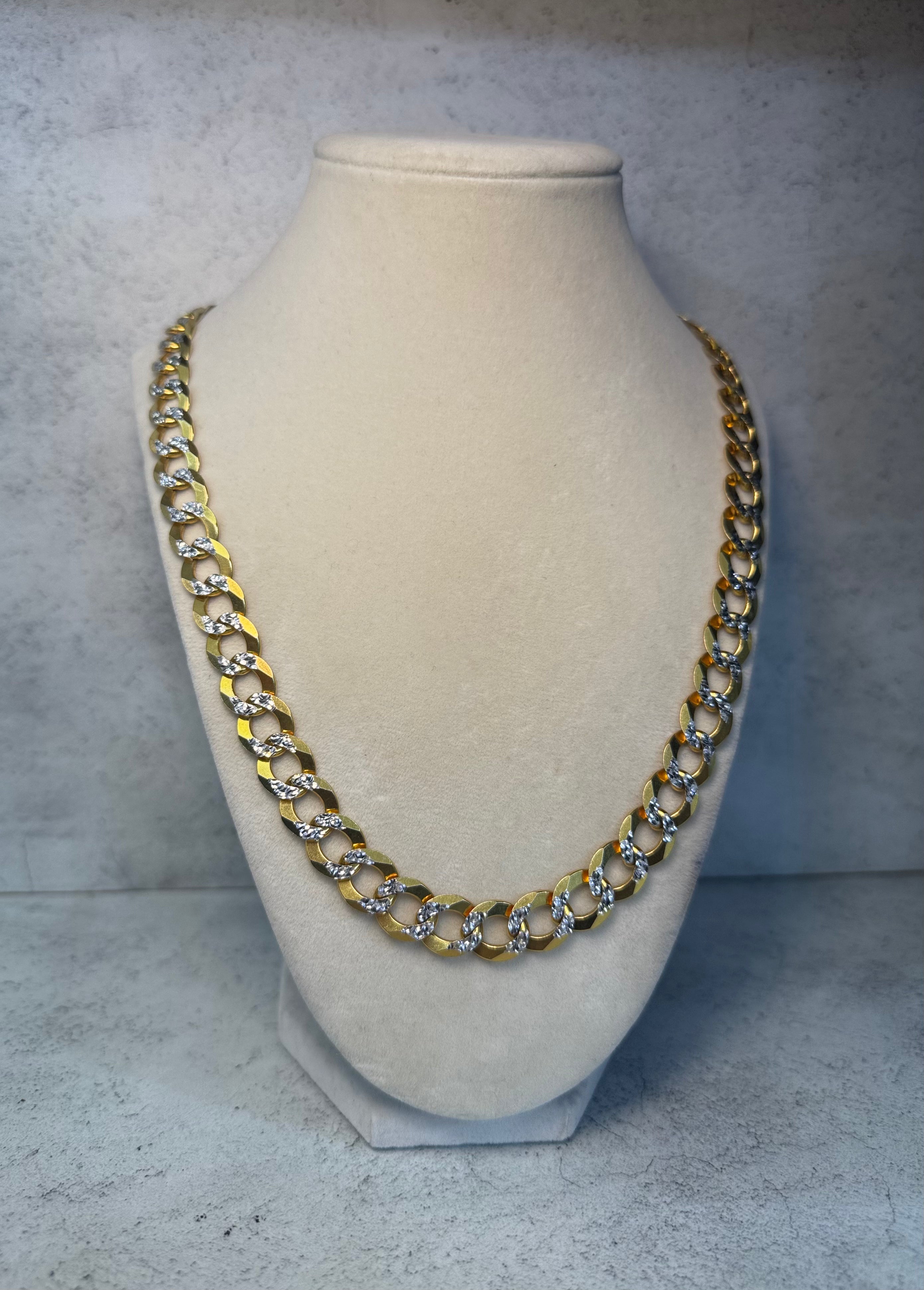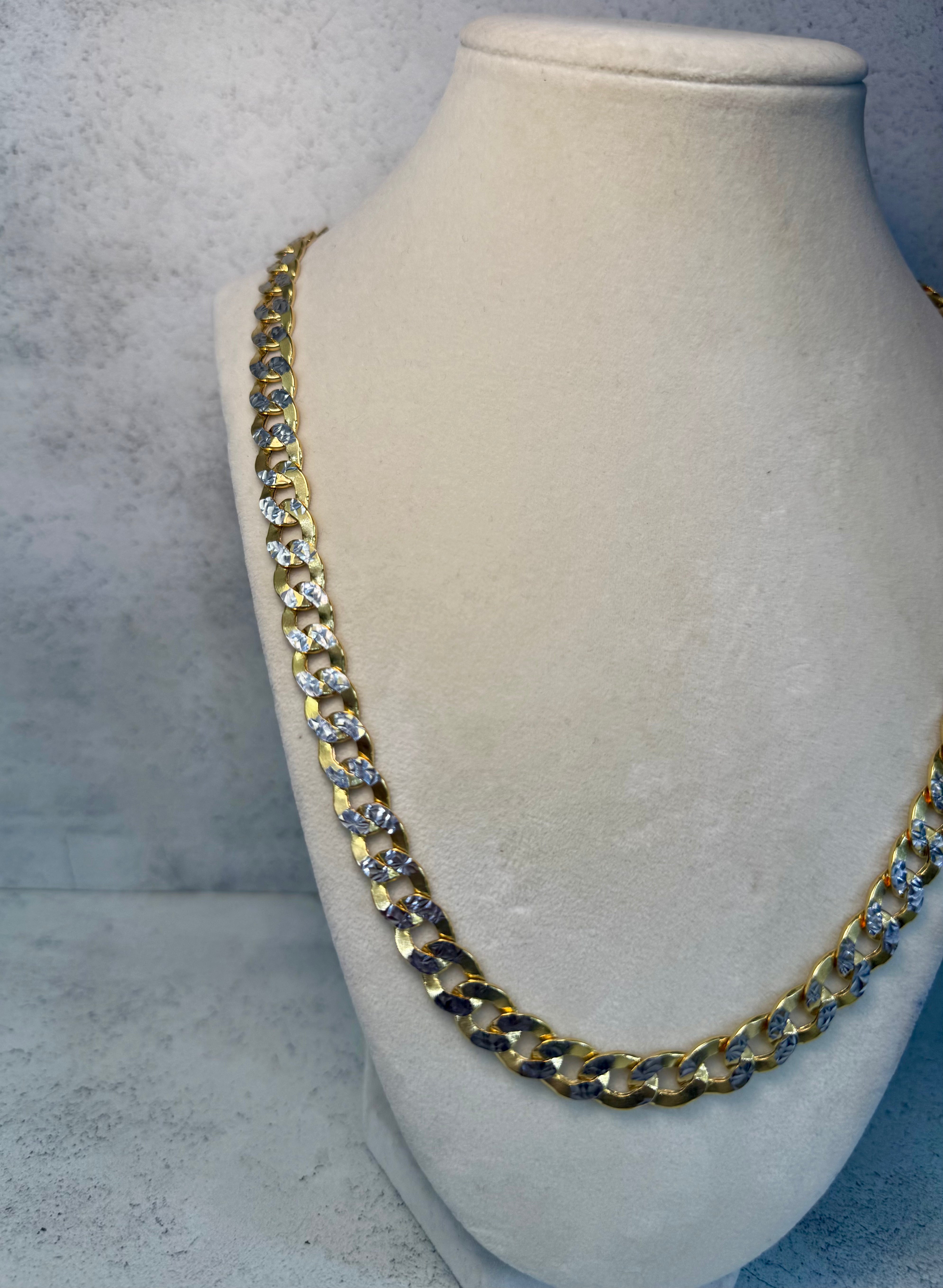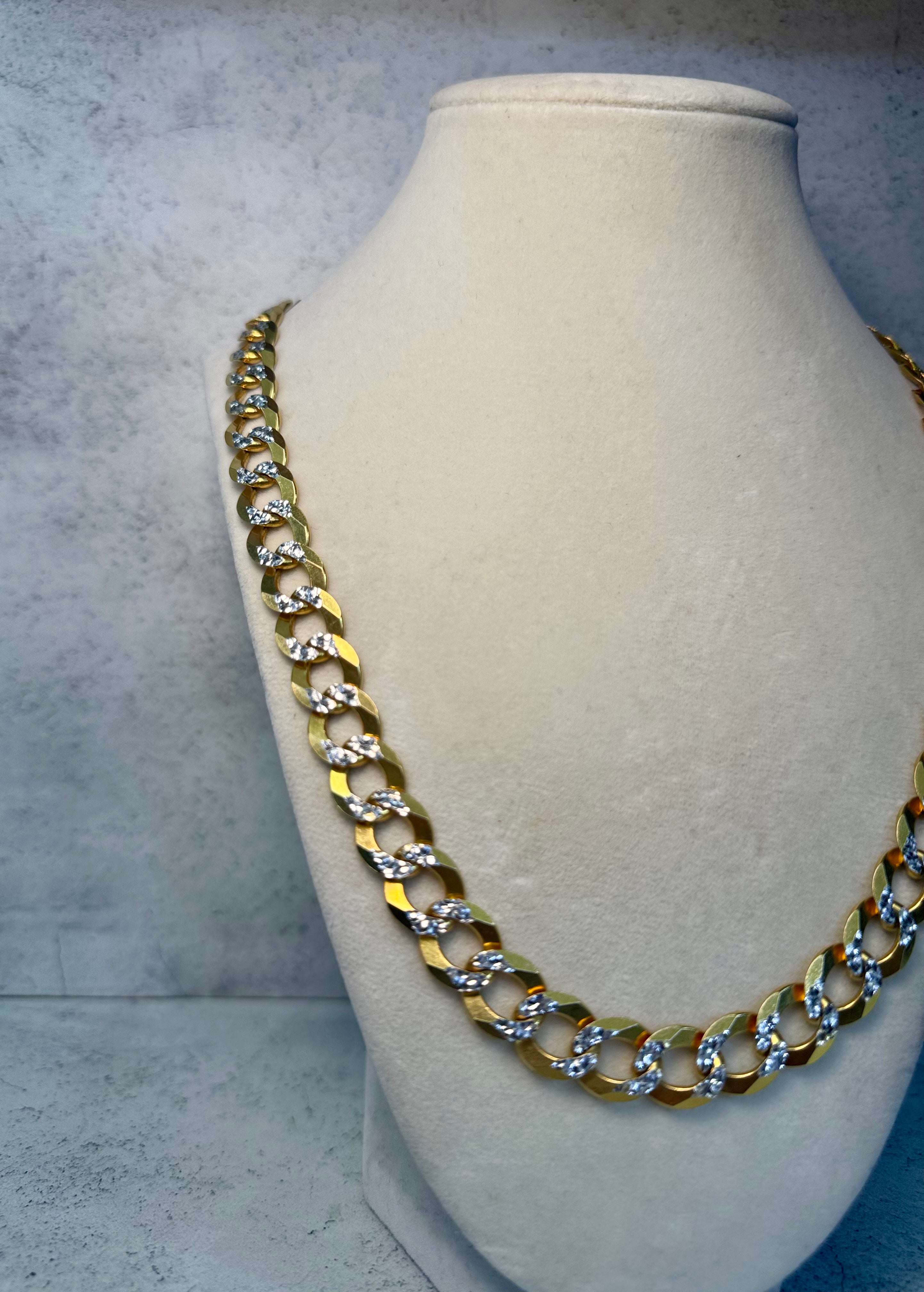 Two-toned Semi-Solid 14K Flat Cuban Chain -10mm