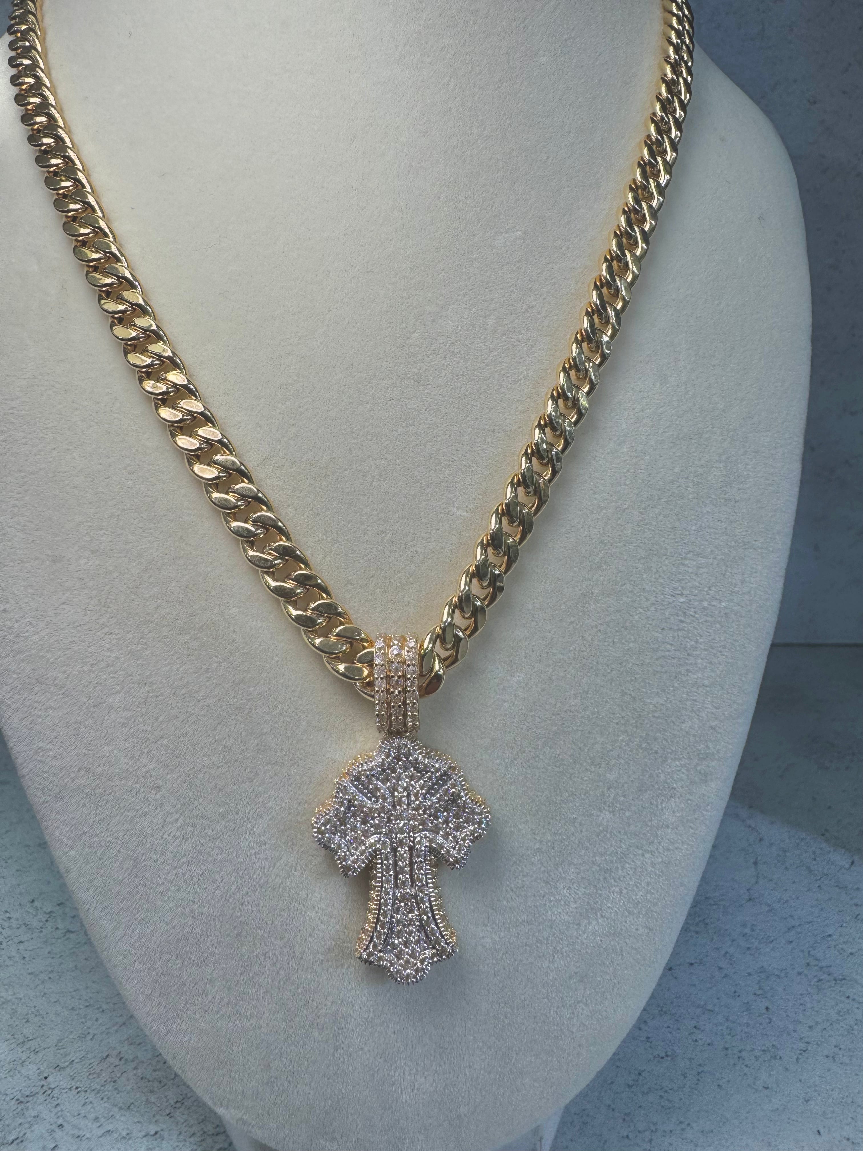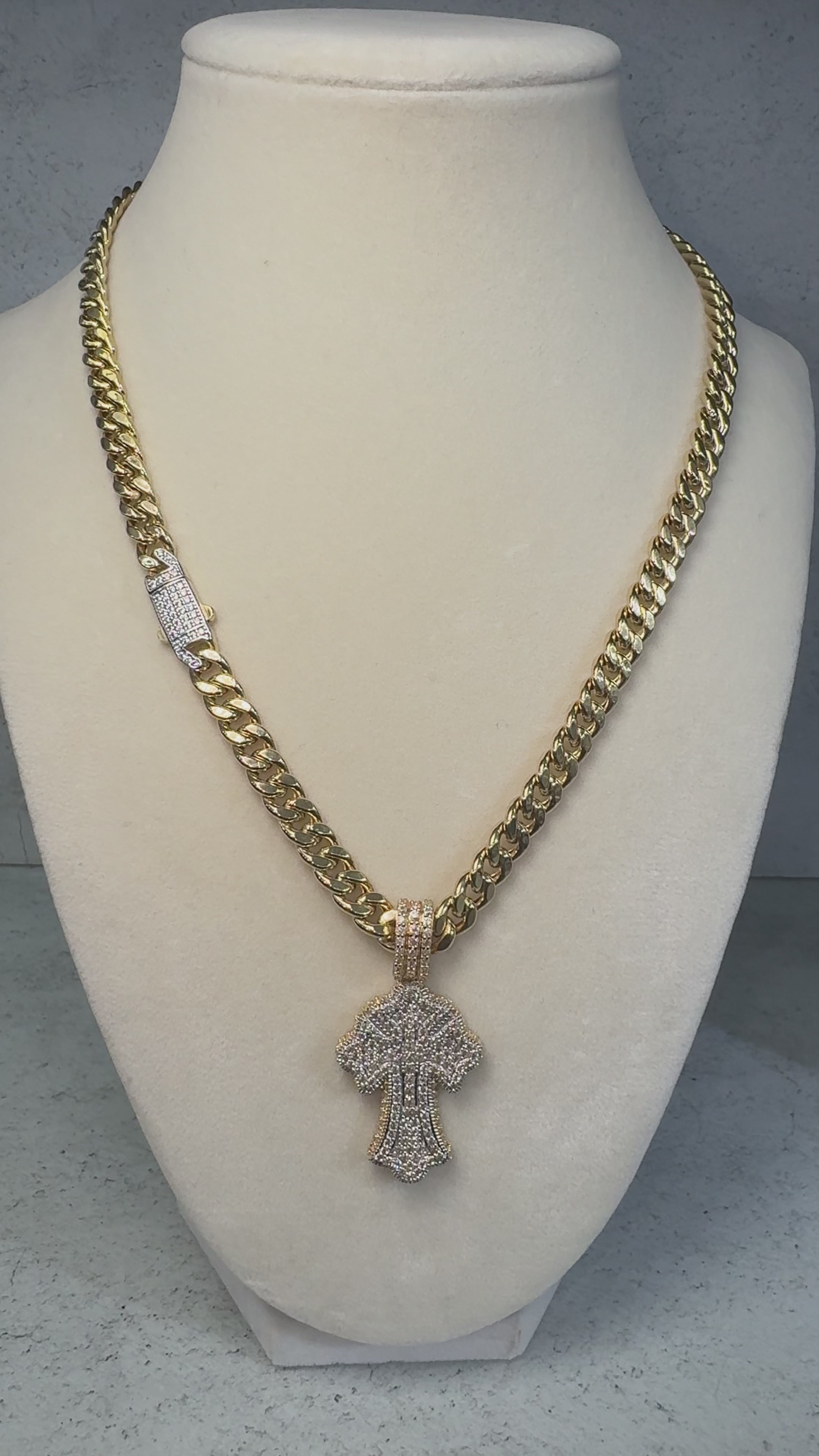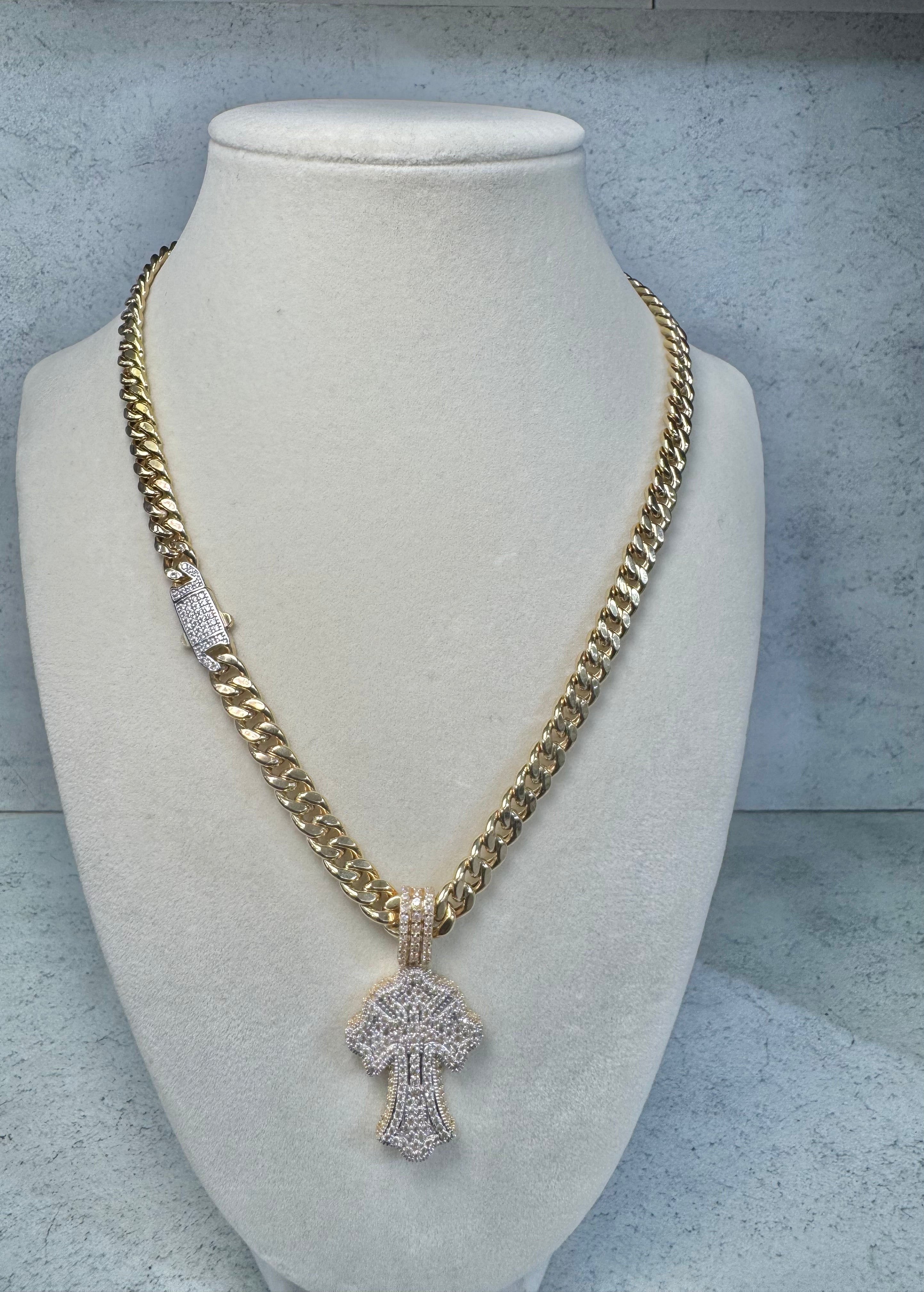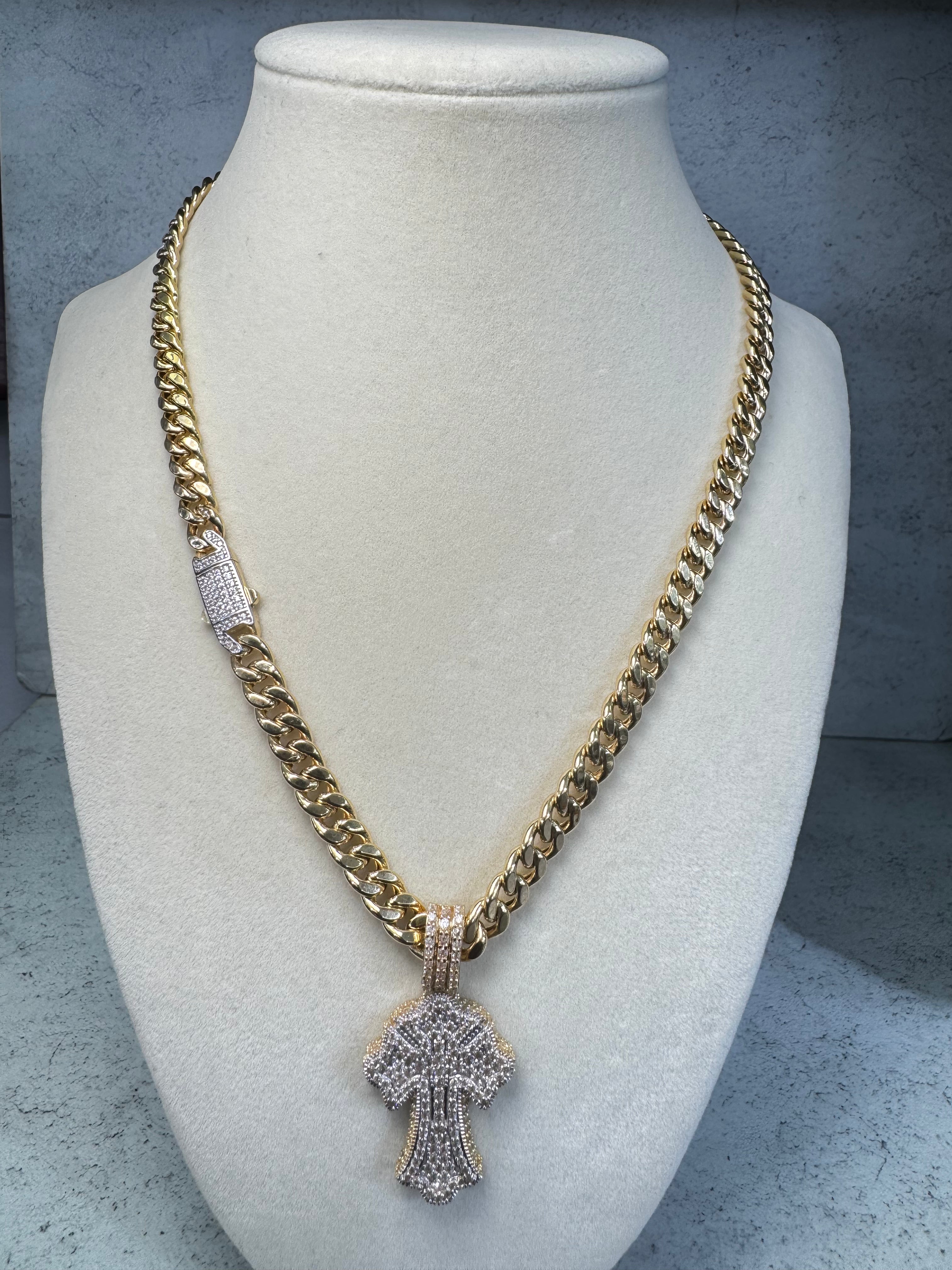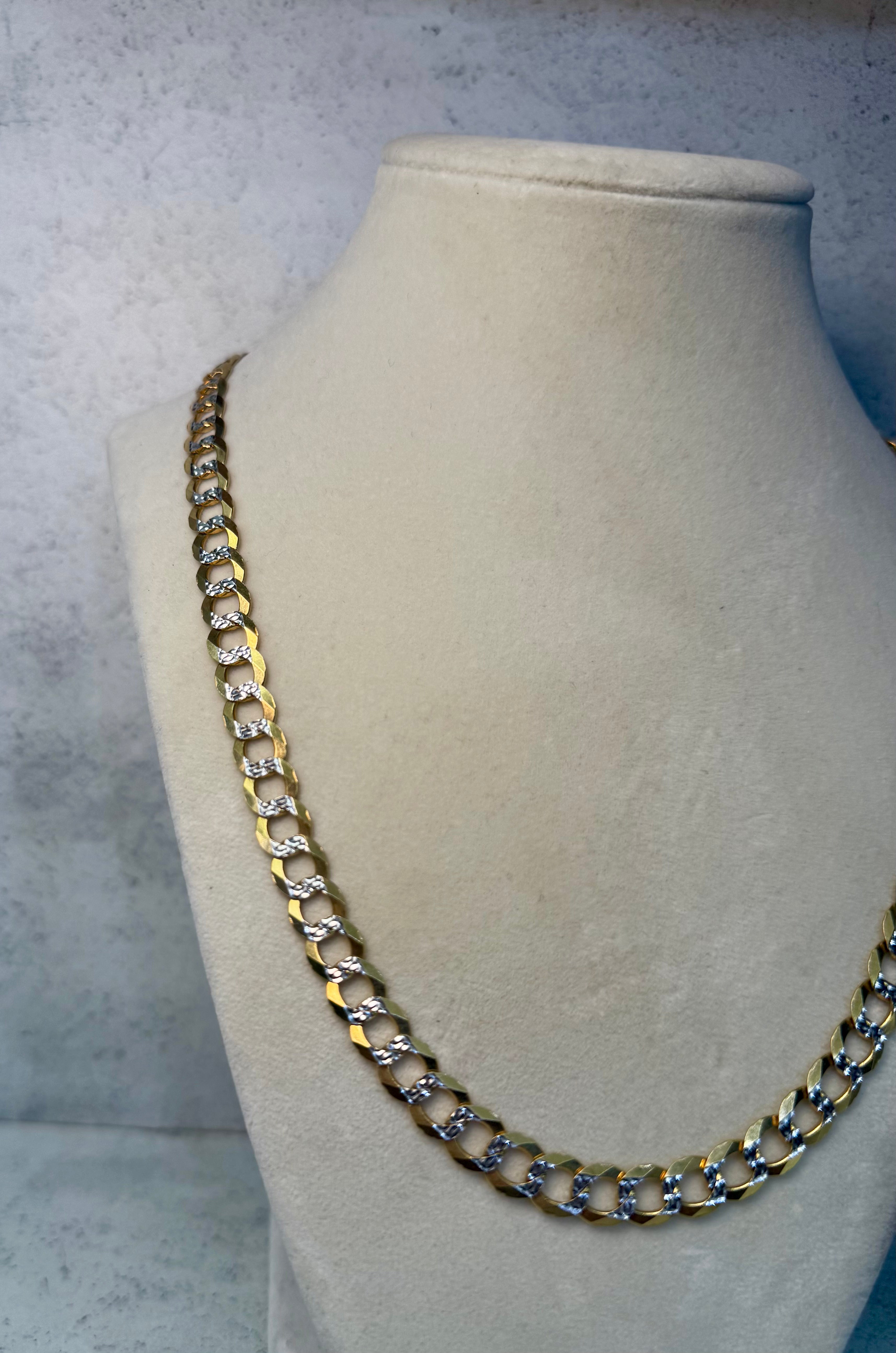Two-toned Semi-Solid 14K Flat Cuban Chain -10mm