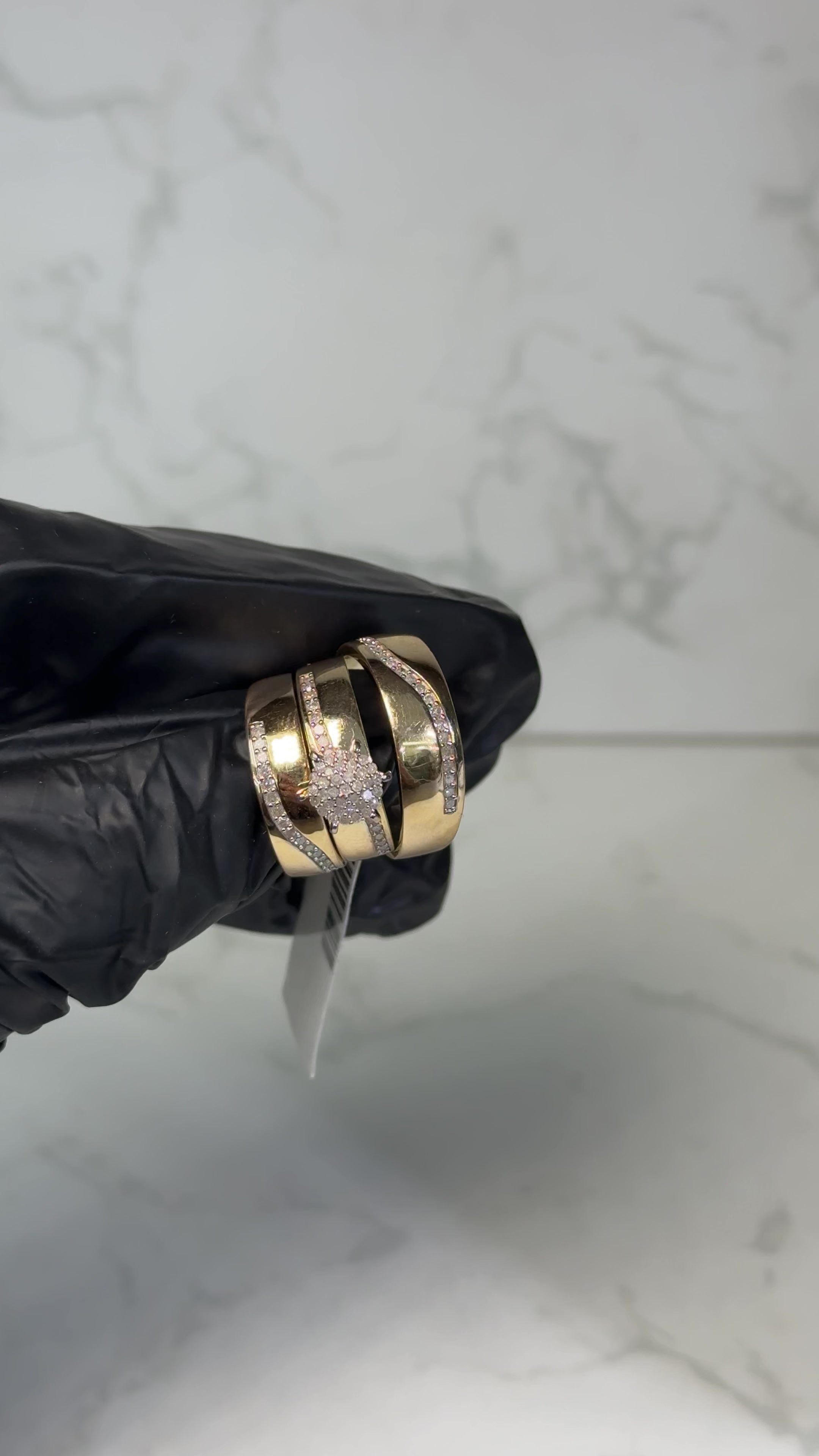 Solid 14k Yellow Gold Real Diamond Engagement Ring Trio