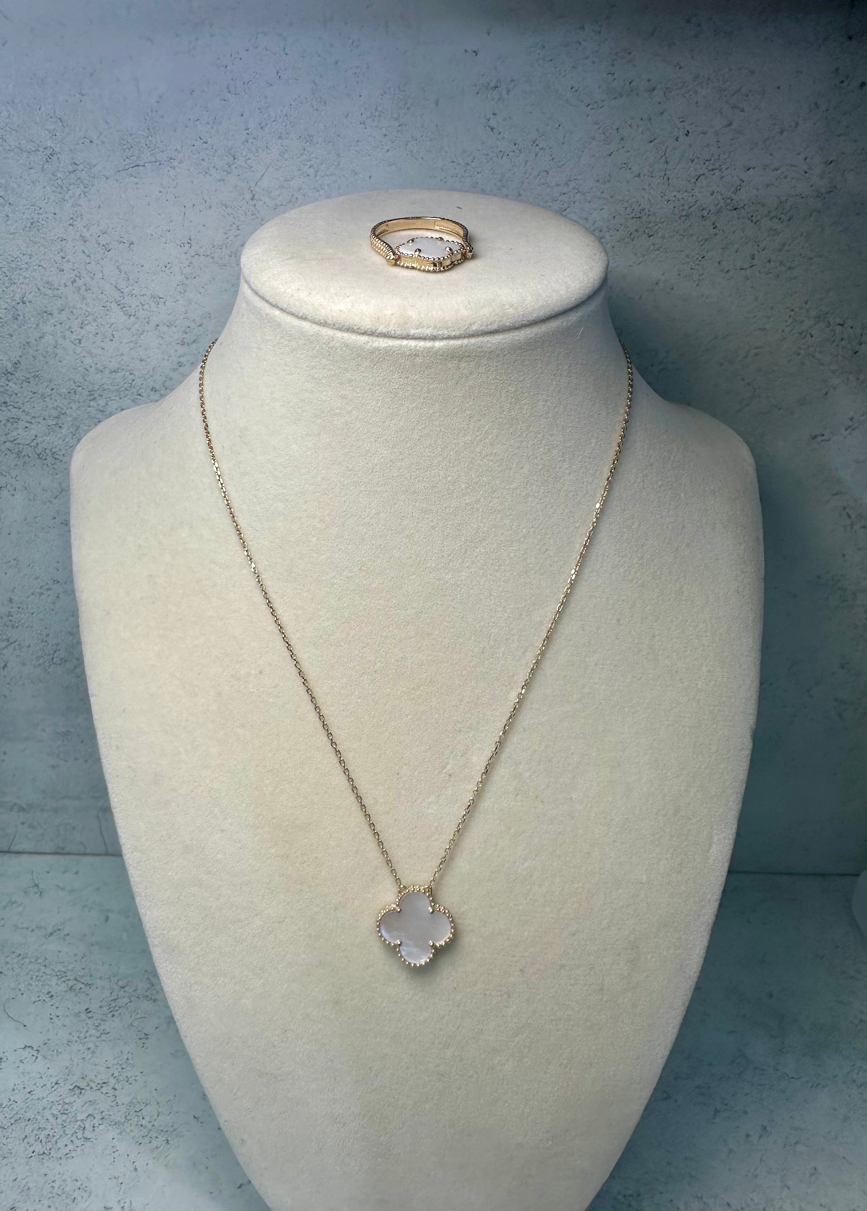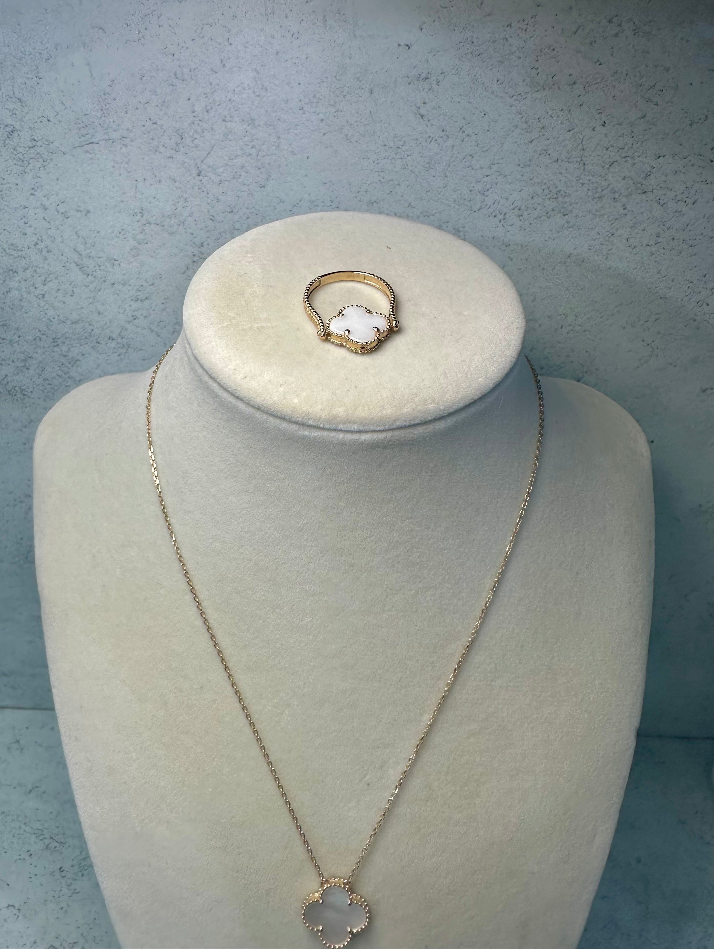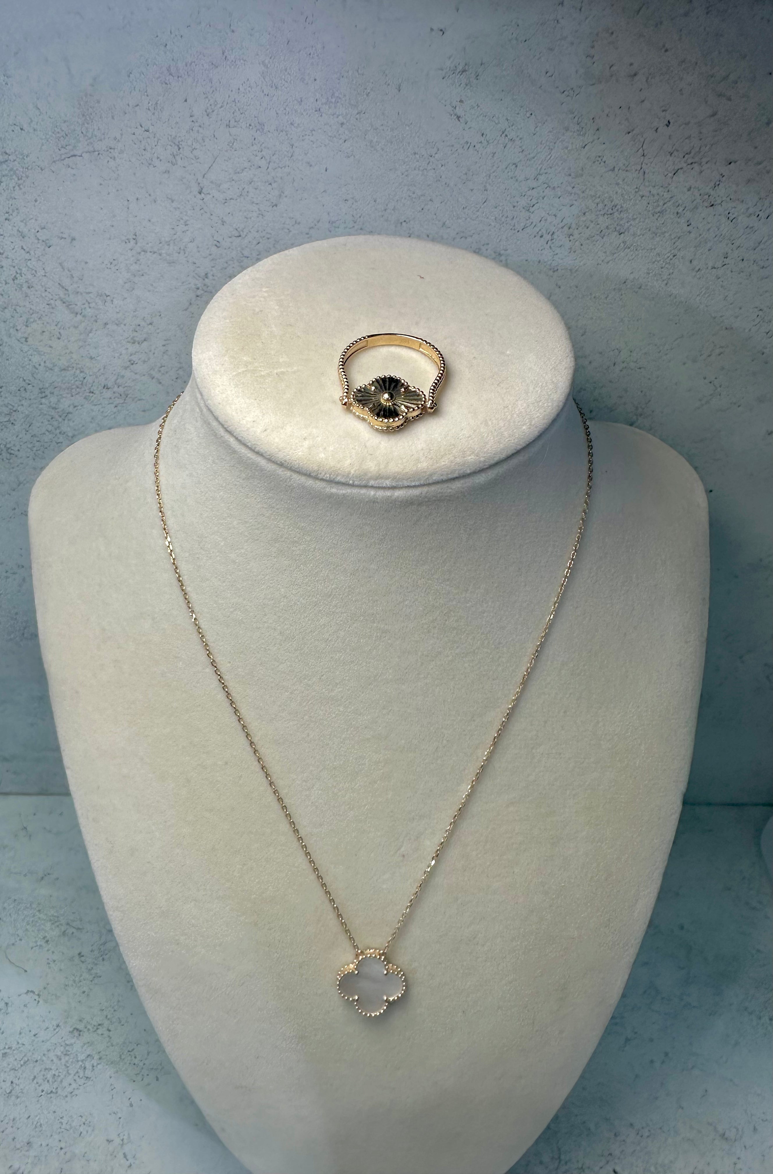 14kt Clover Necklace and Bracelet Set- Dark Green