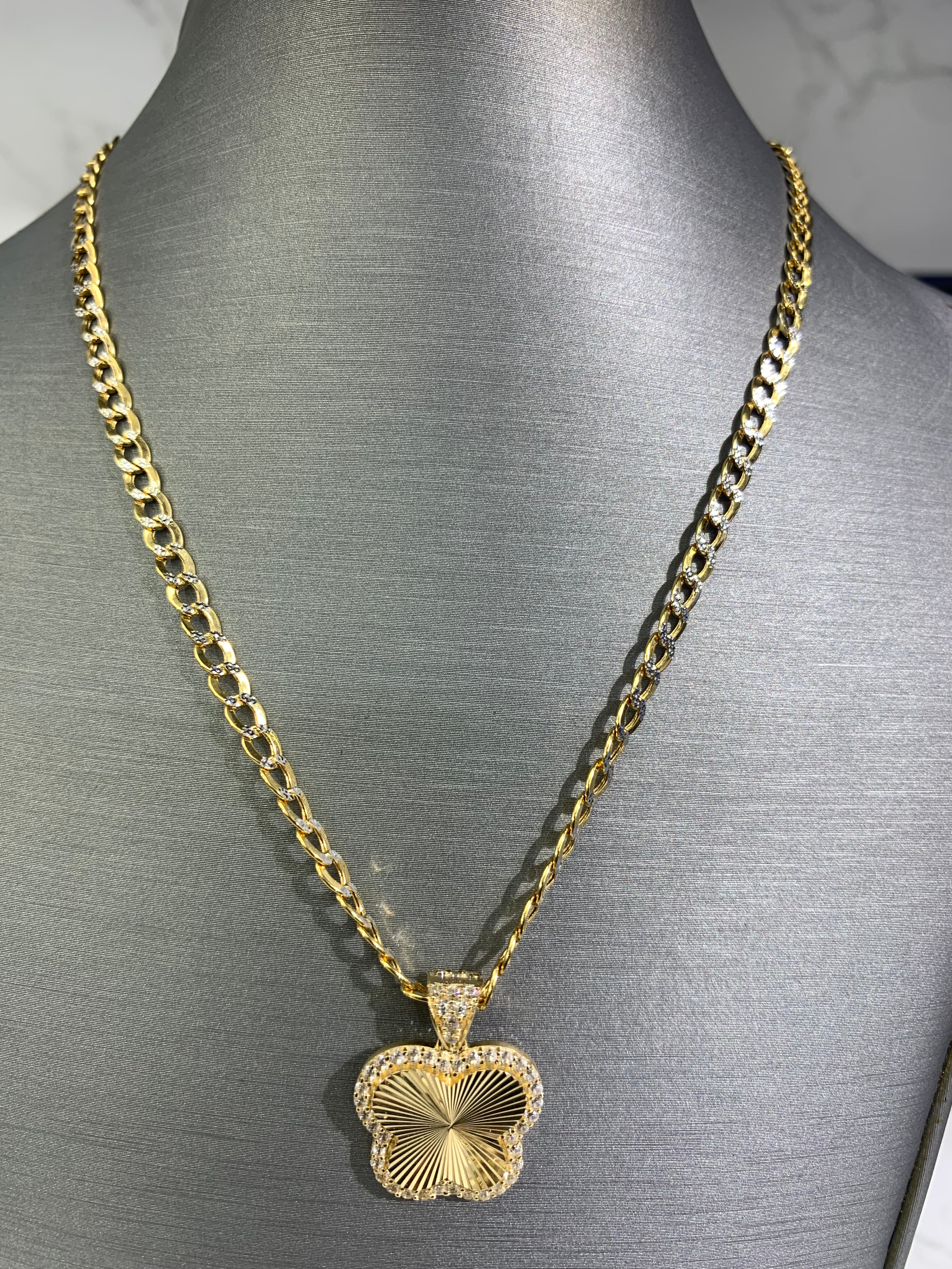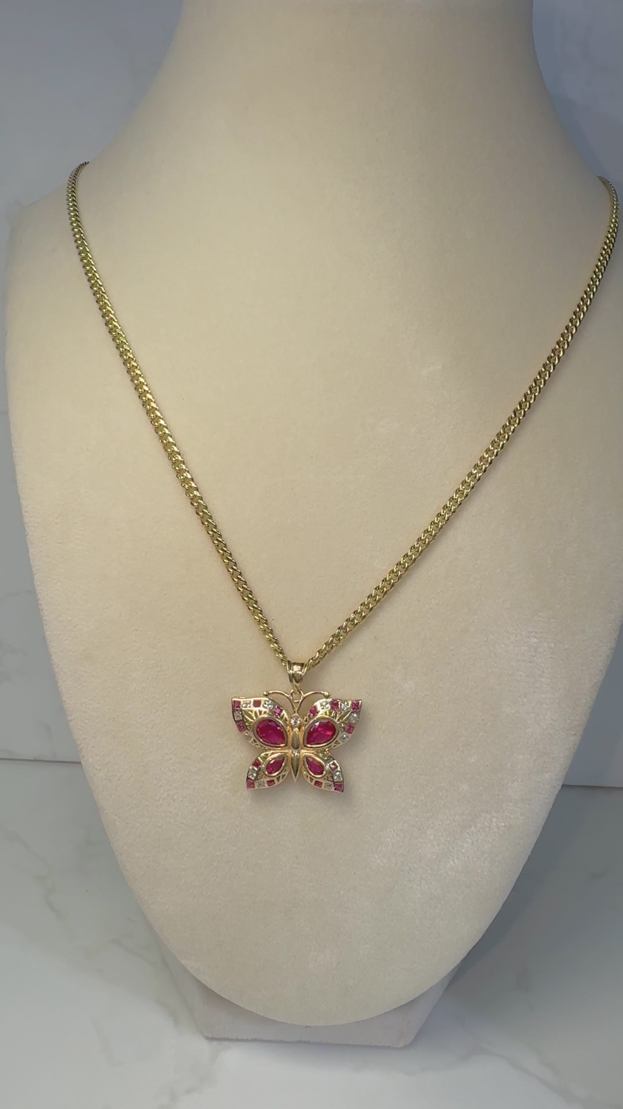 14kt Cuban Chain & Pink Lip Bite Pendant