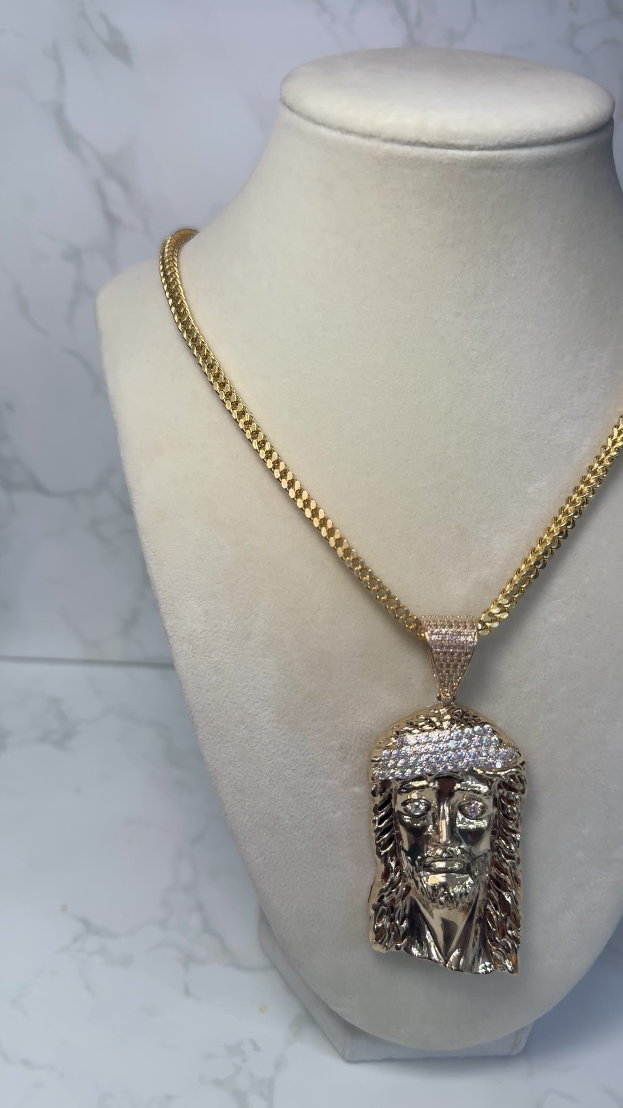 14KT Franco Chain & Jesus Head Pendant