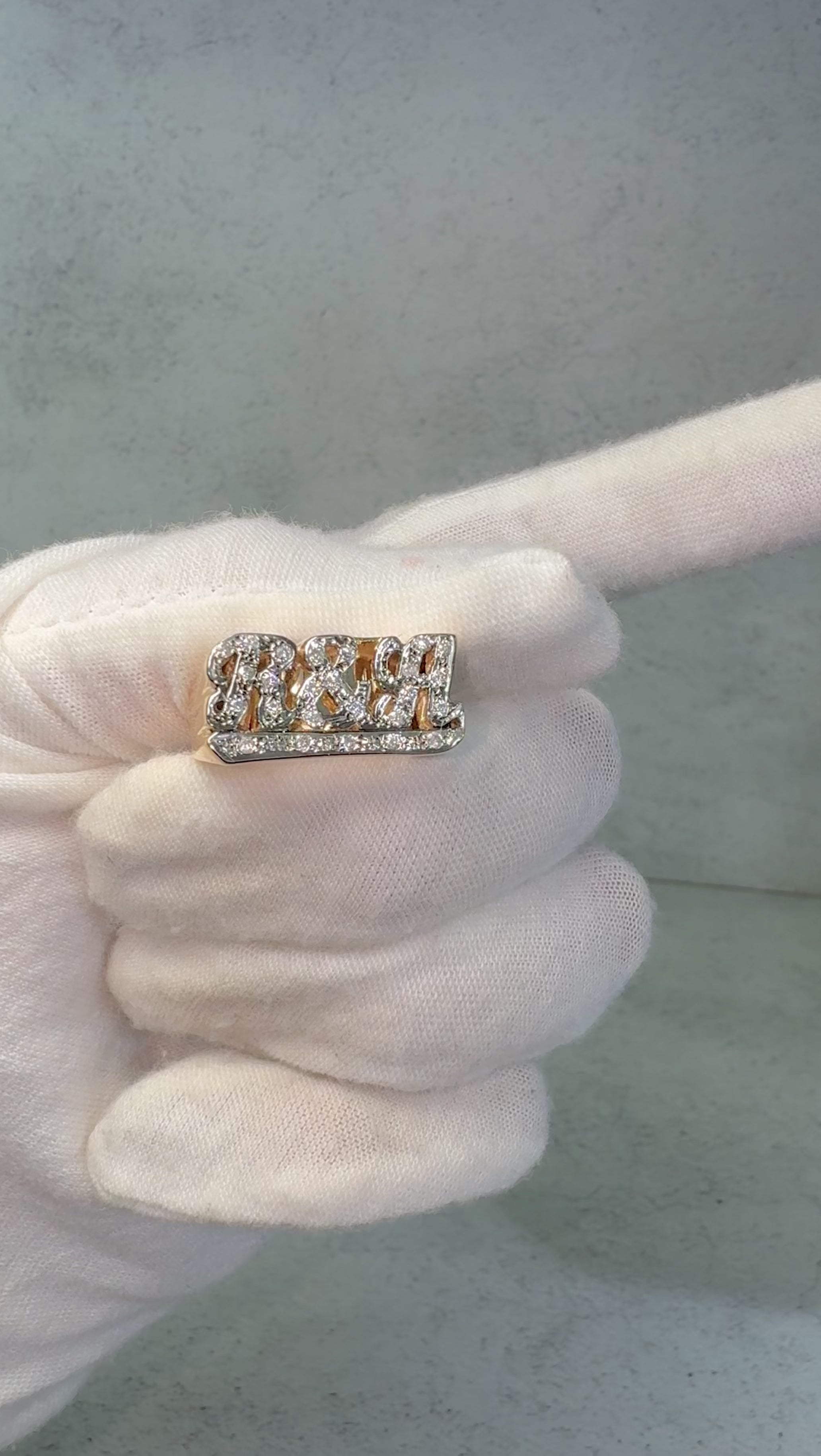 14KT Diamond Initials Gold Name Ring, which weights approximately 15g. The length of the ring is approximately 1 inch in length and 1 inch in width. The name ring can be customized with up to 3 characters. Due to the custom nature of this product, weight and size may slightly vary. Please allow 1-5 business days for completion.