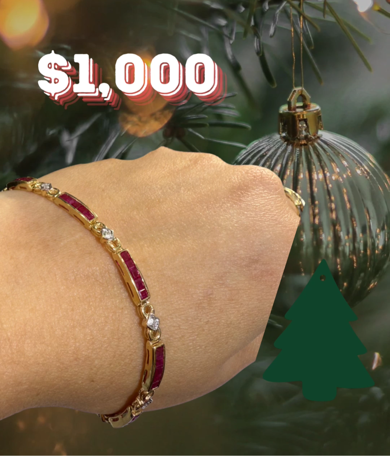 Elevate your wrist with this exquisite gold bracelet, where lustrous precious metal meets the deep crimson allure of genuine rubies. Each ruby is carefully selected for its rich color and brilliance, creating a striking contrast against the warm glow of gold.